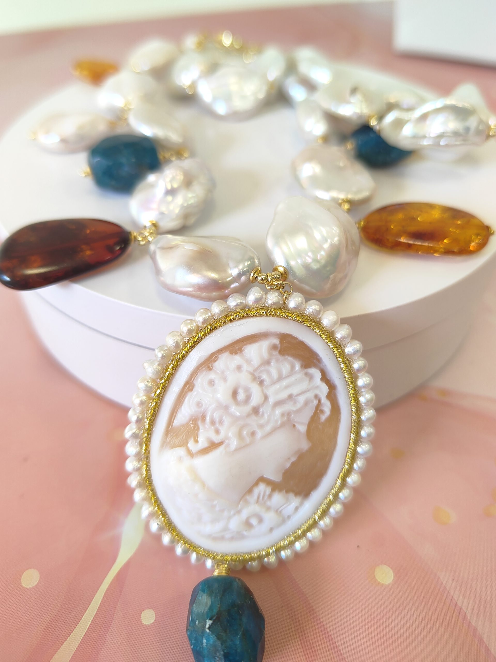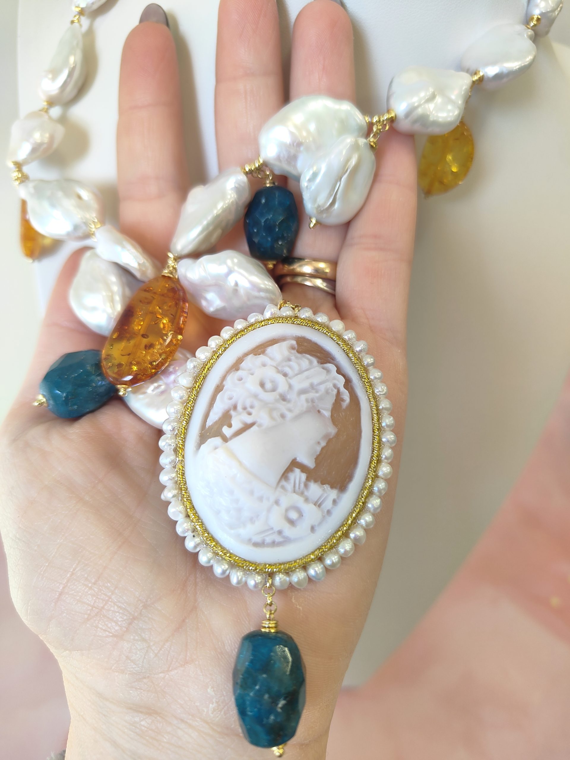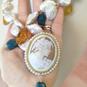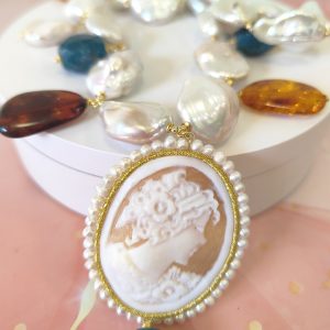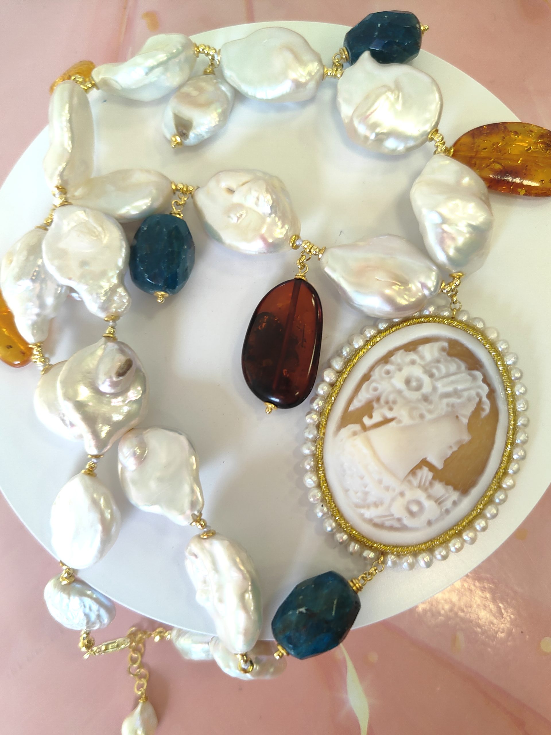 Stile Mediterraneo Con Collana Cammeo Perle Ambra
