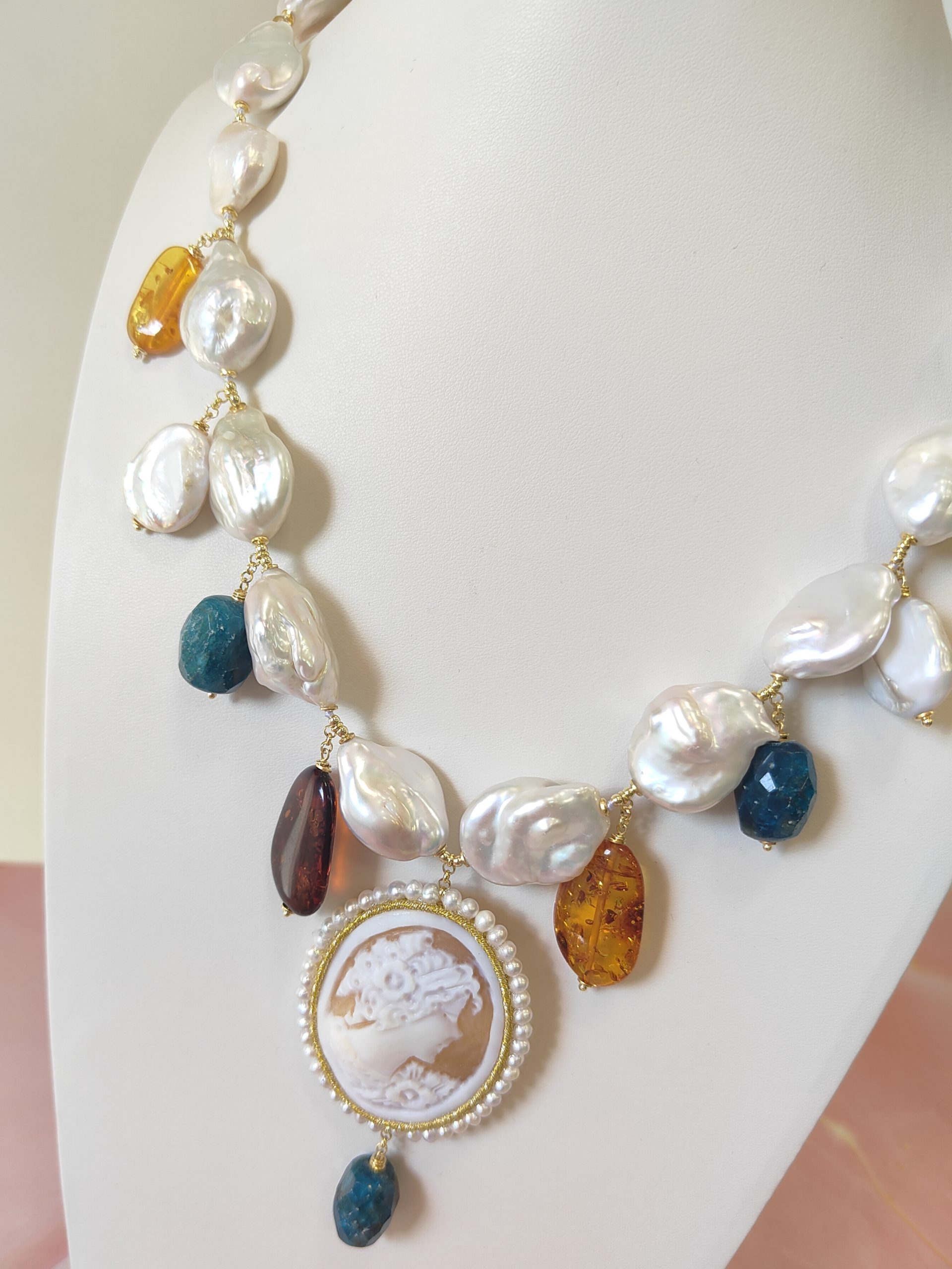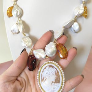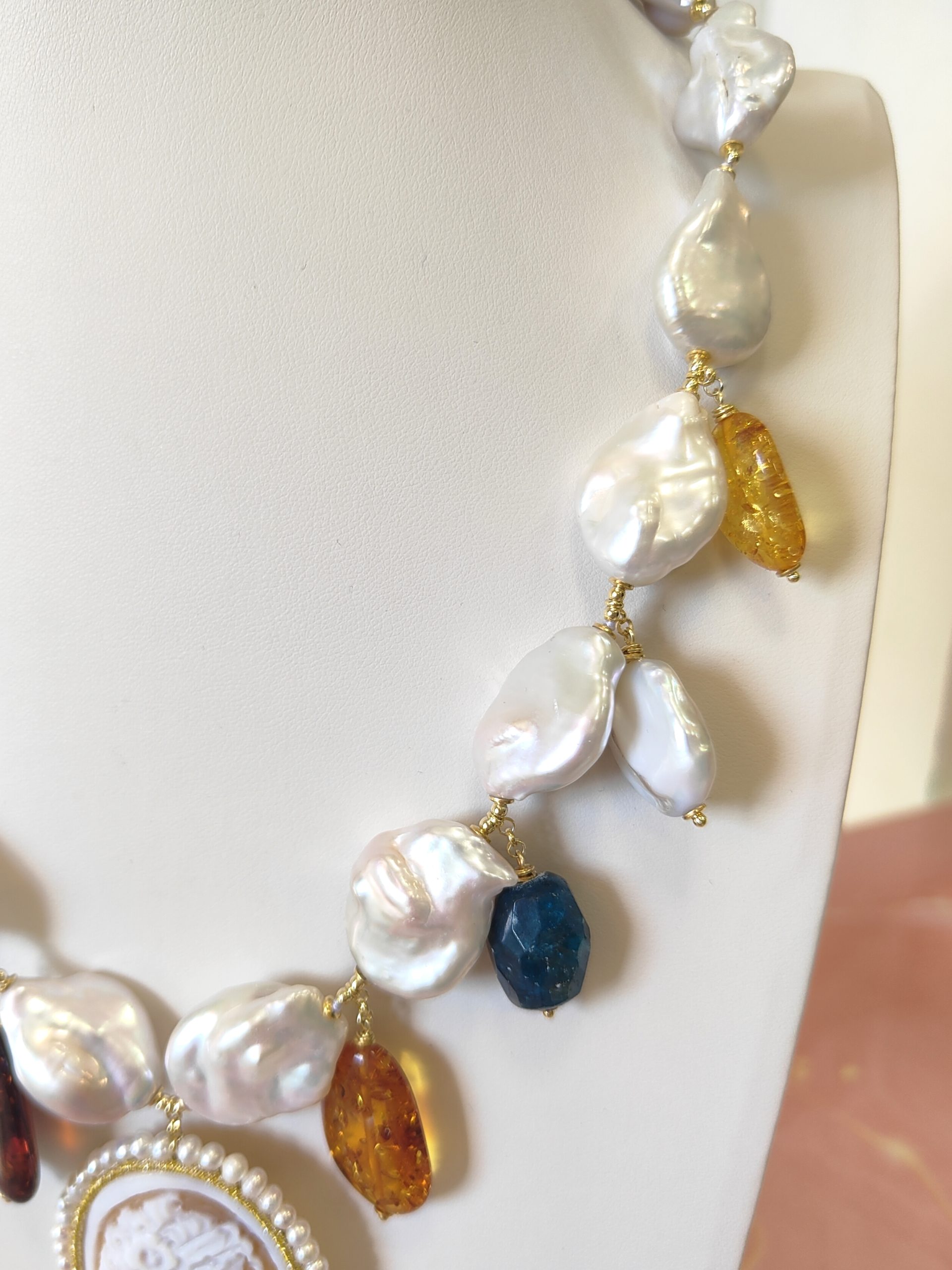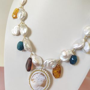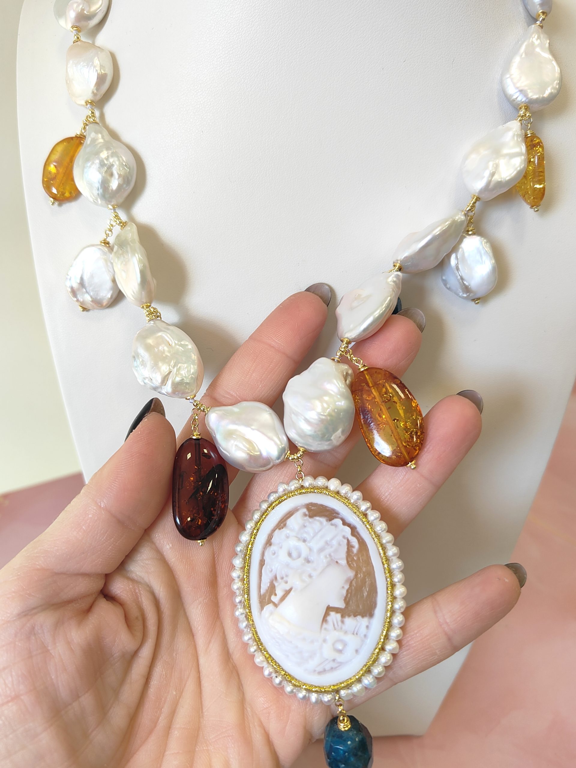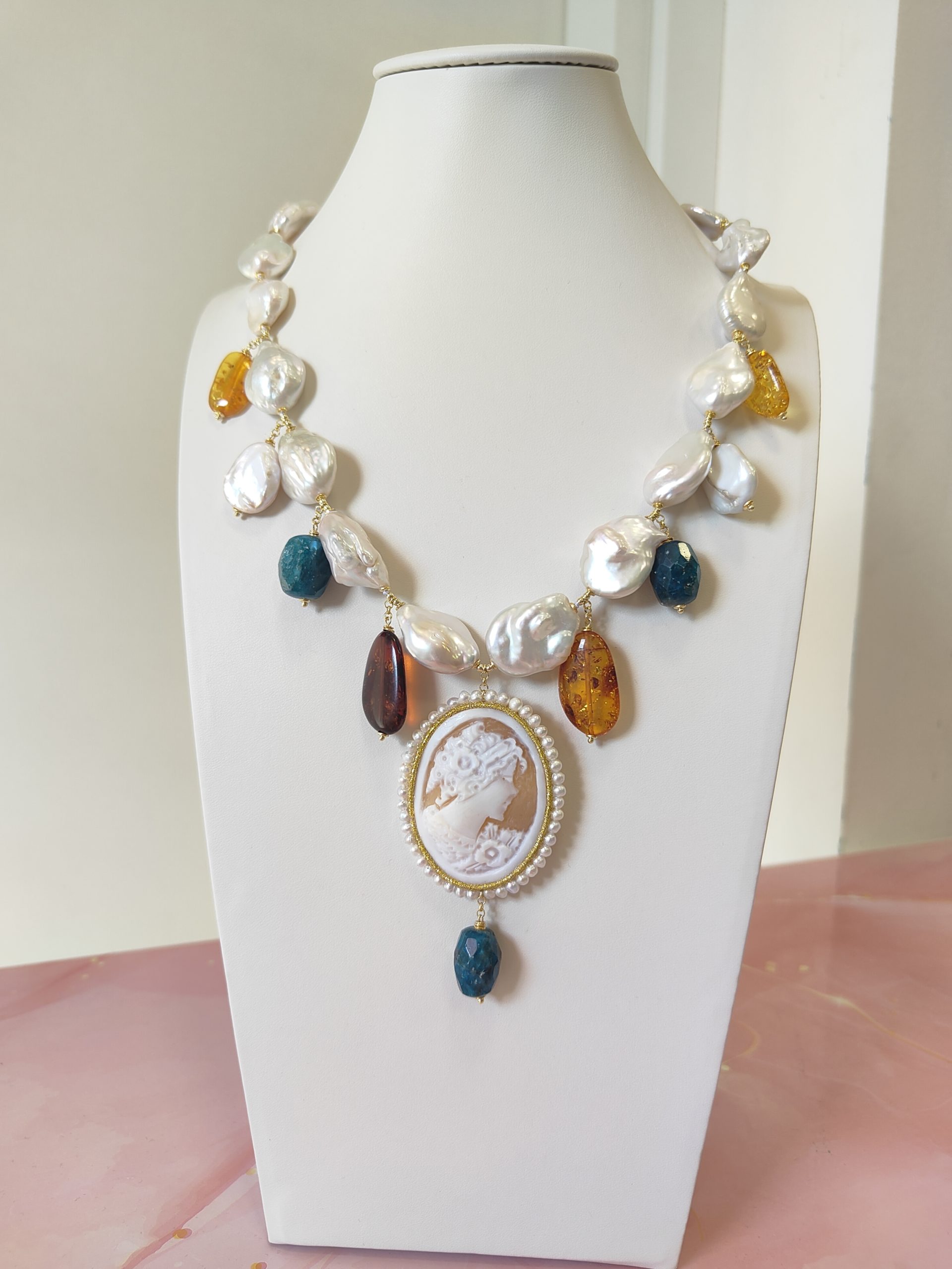 Stile Mediterraneo Con Collana Cammeo Perle Ambra