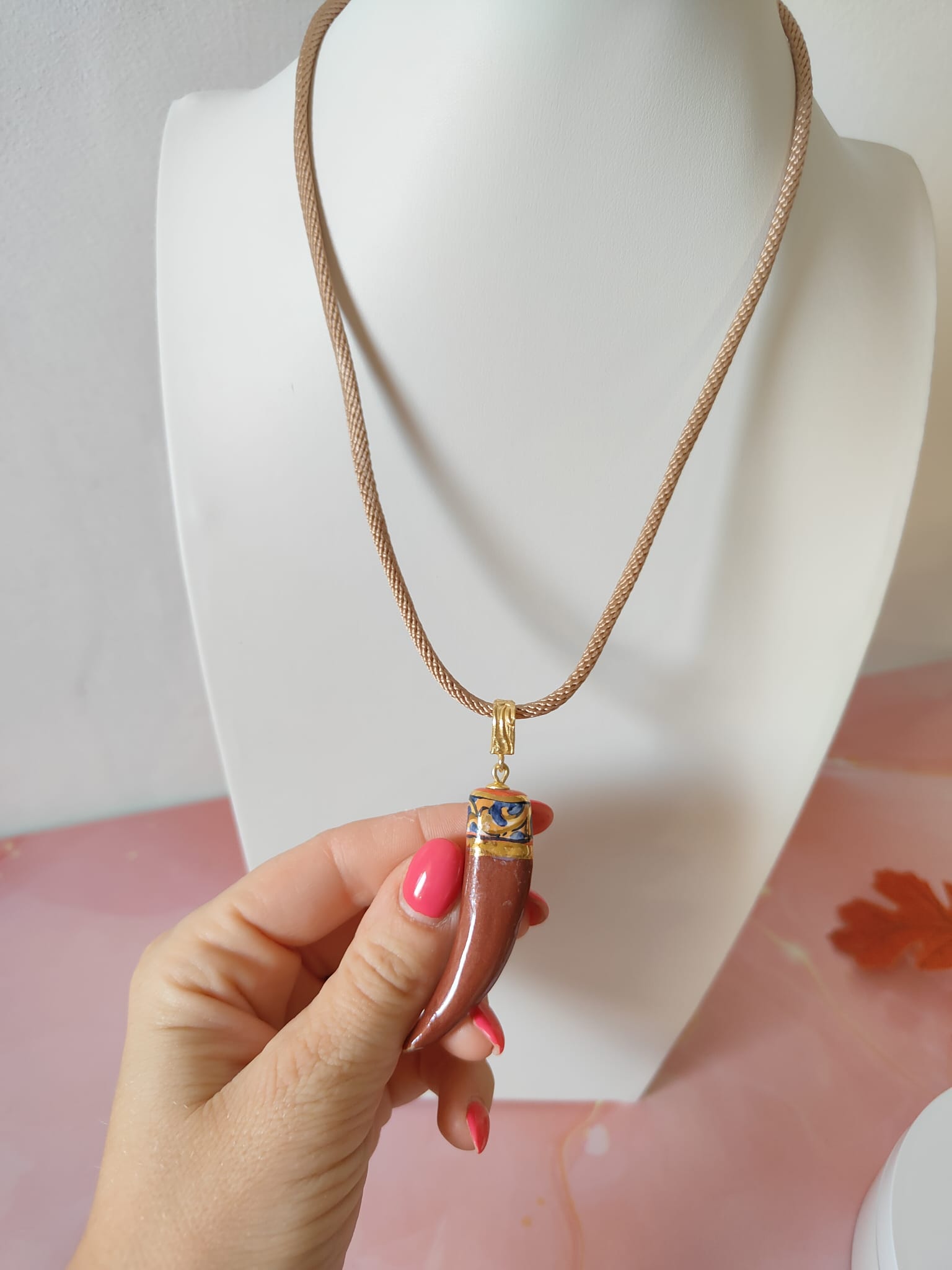 La collana corno ceramica è più di un semplice accessorio: è un amuleto di stile e significato, che celebra la bellezza dell’artigianato e la forza della tradizione mediterranea.