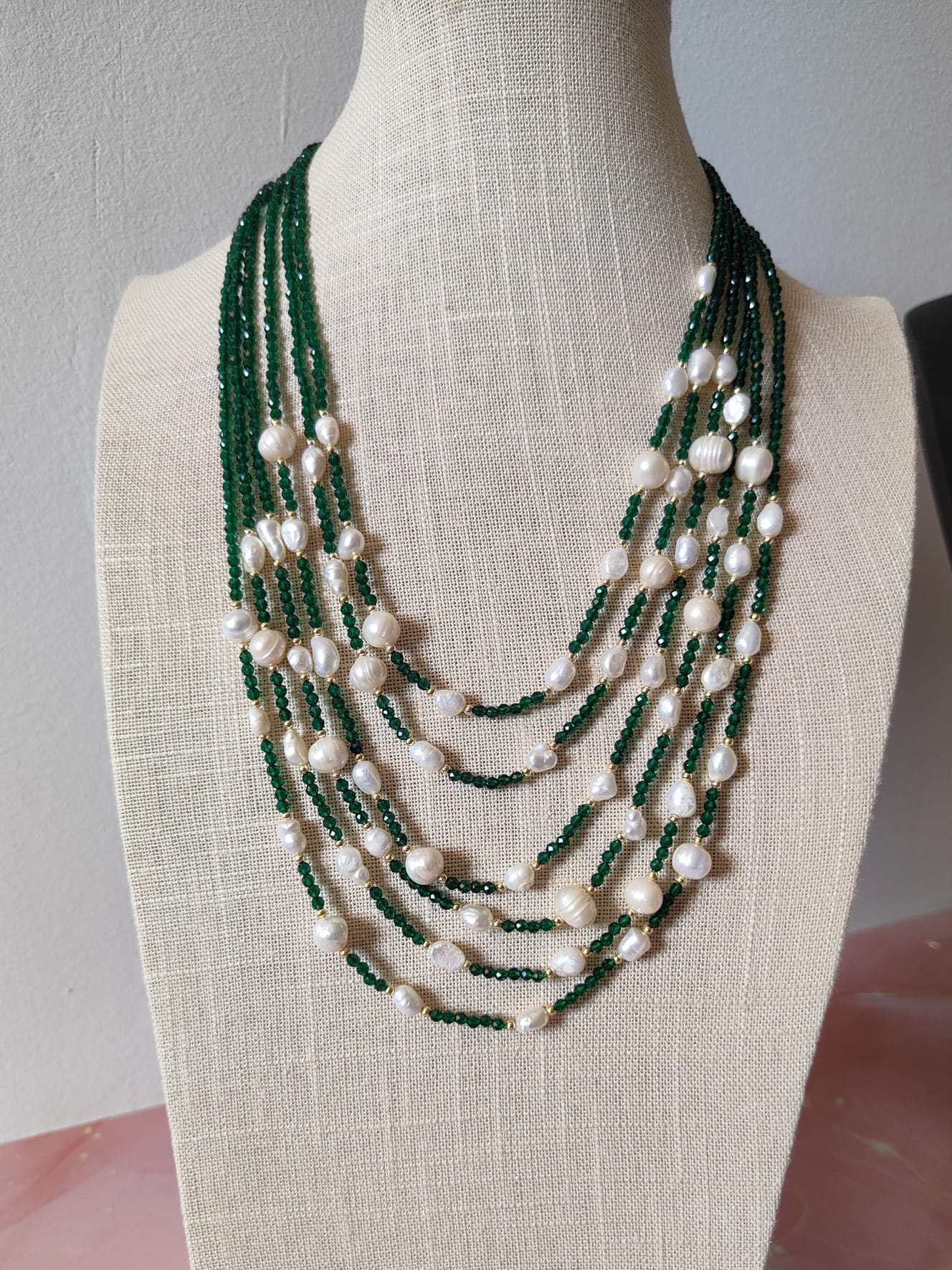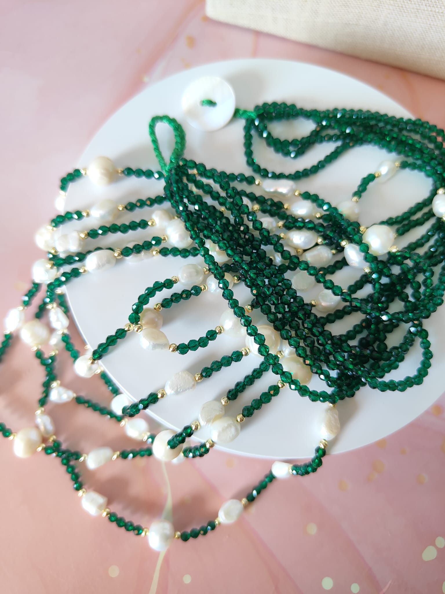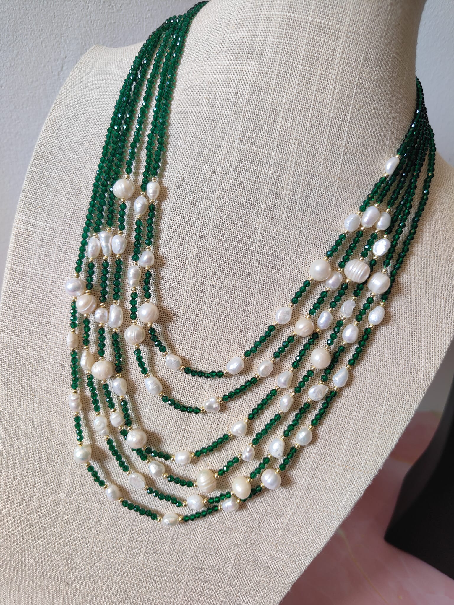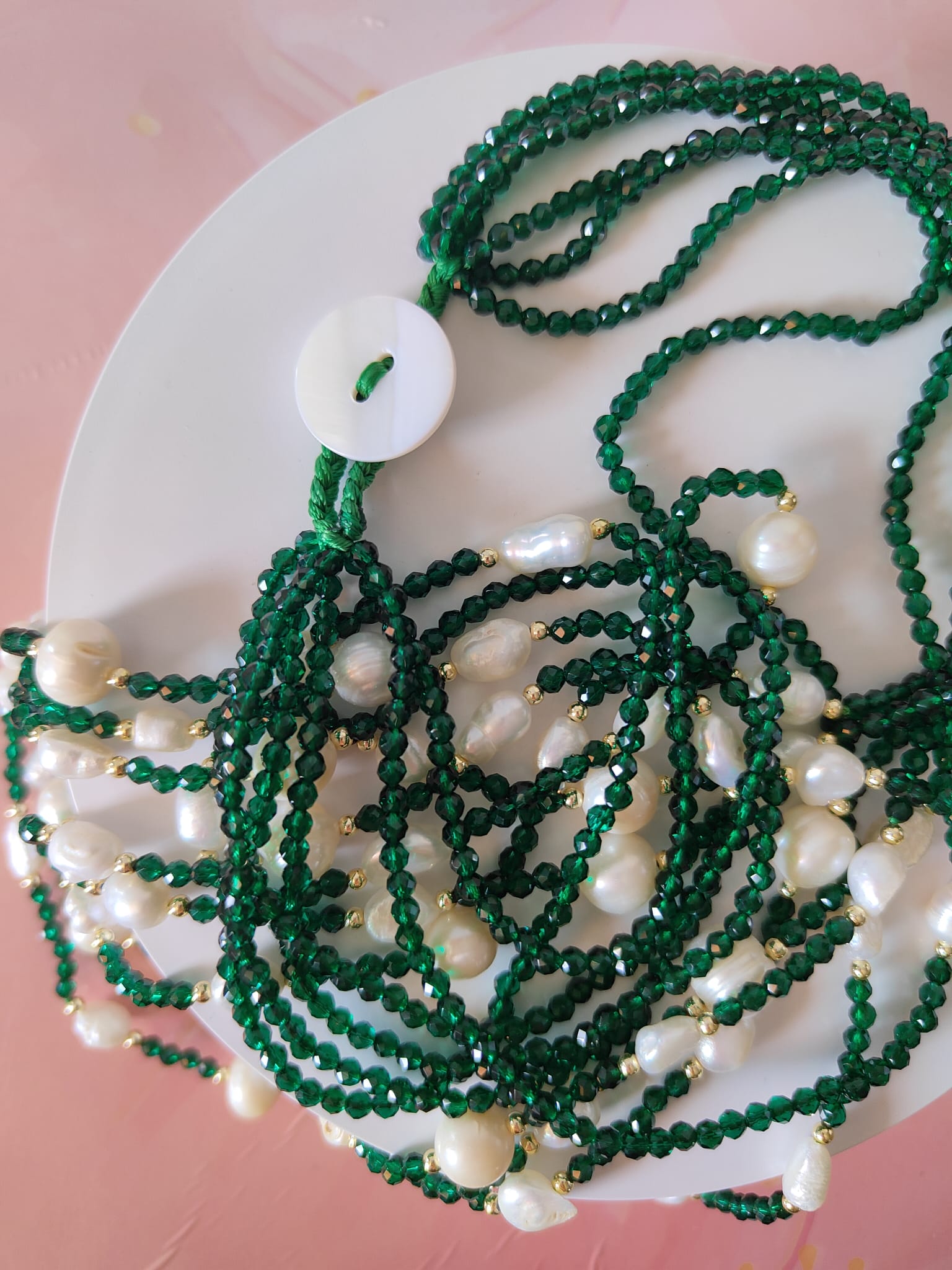 Collana Cristalli Verdi E Perle: L’Incontro Tra Natura E Luce