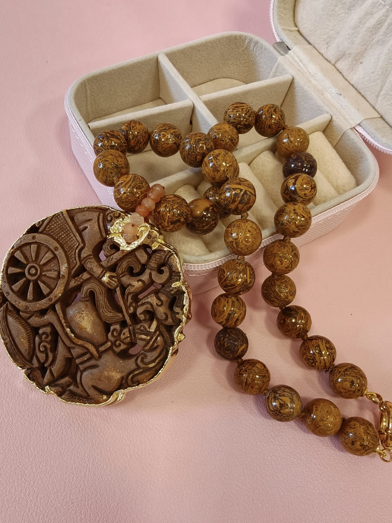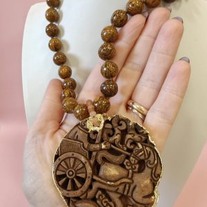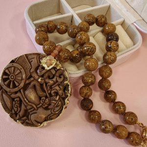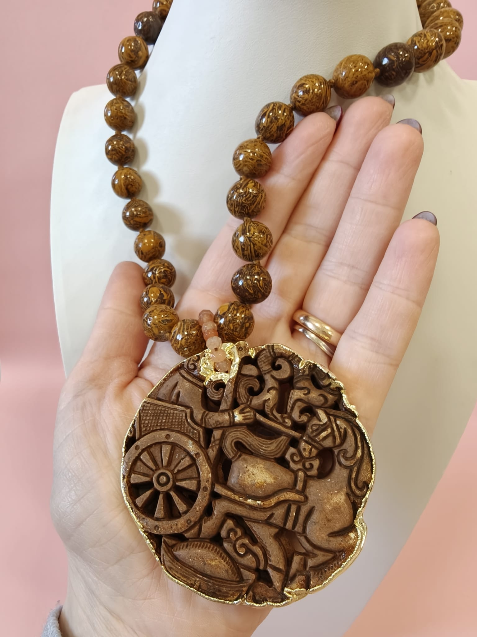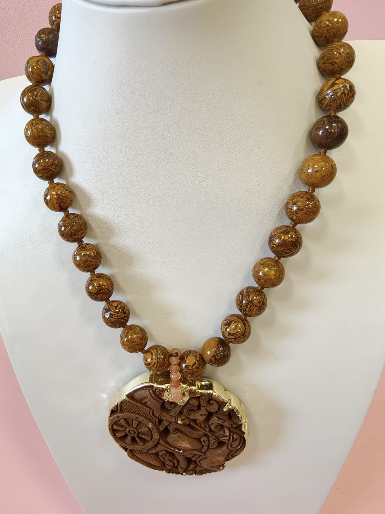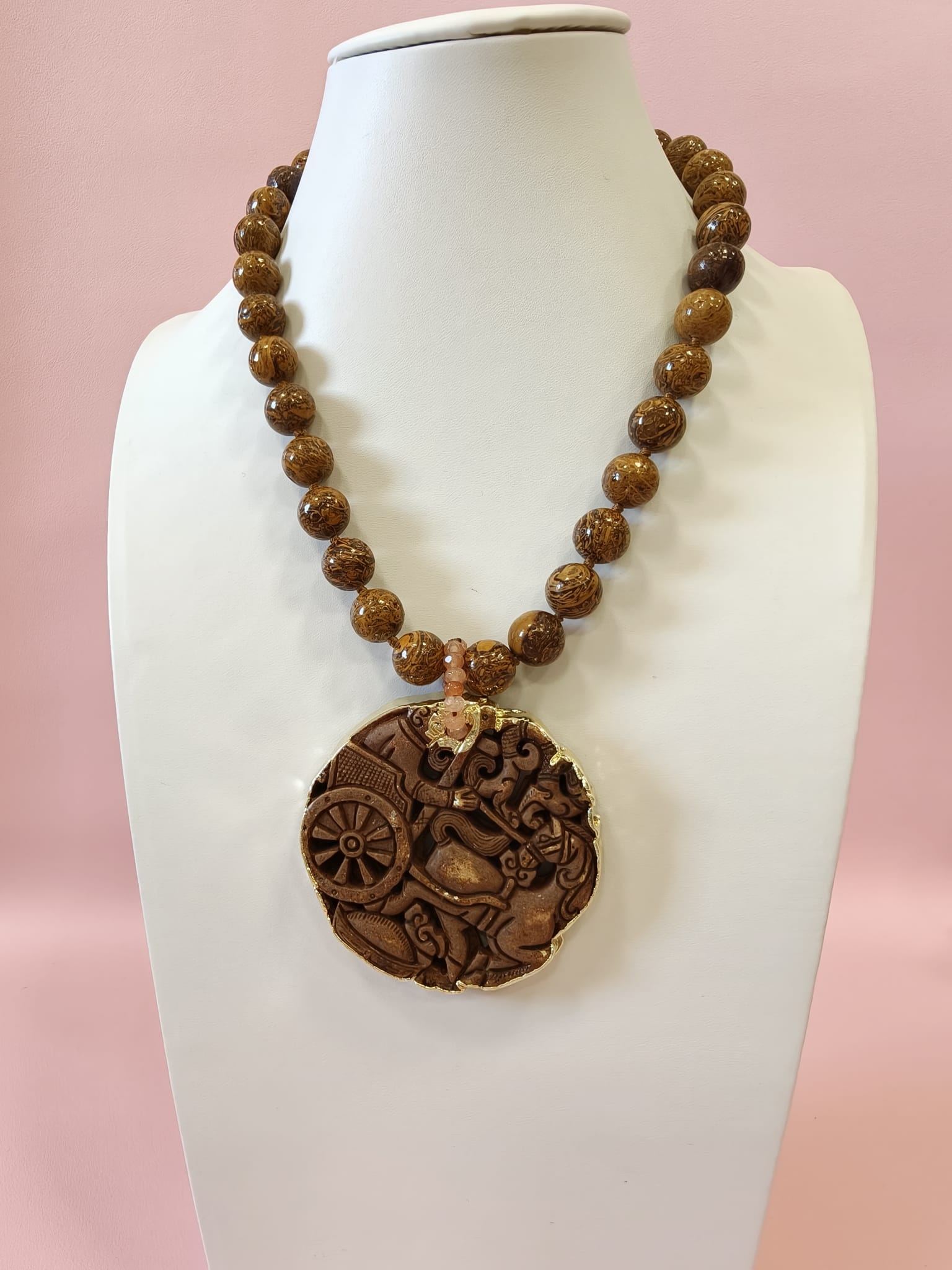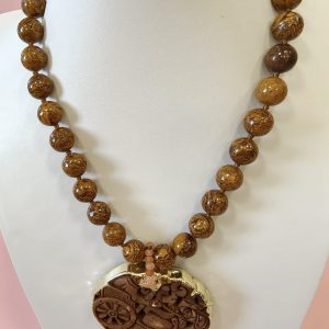 Collana Diaspro Marrone Con Mandala In Giada Intagliata