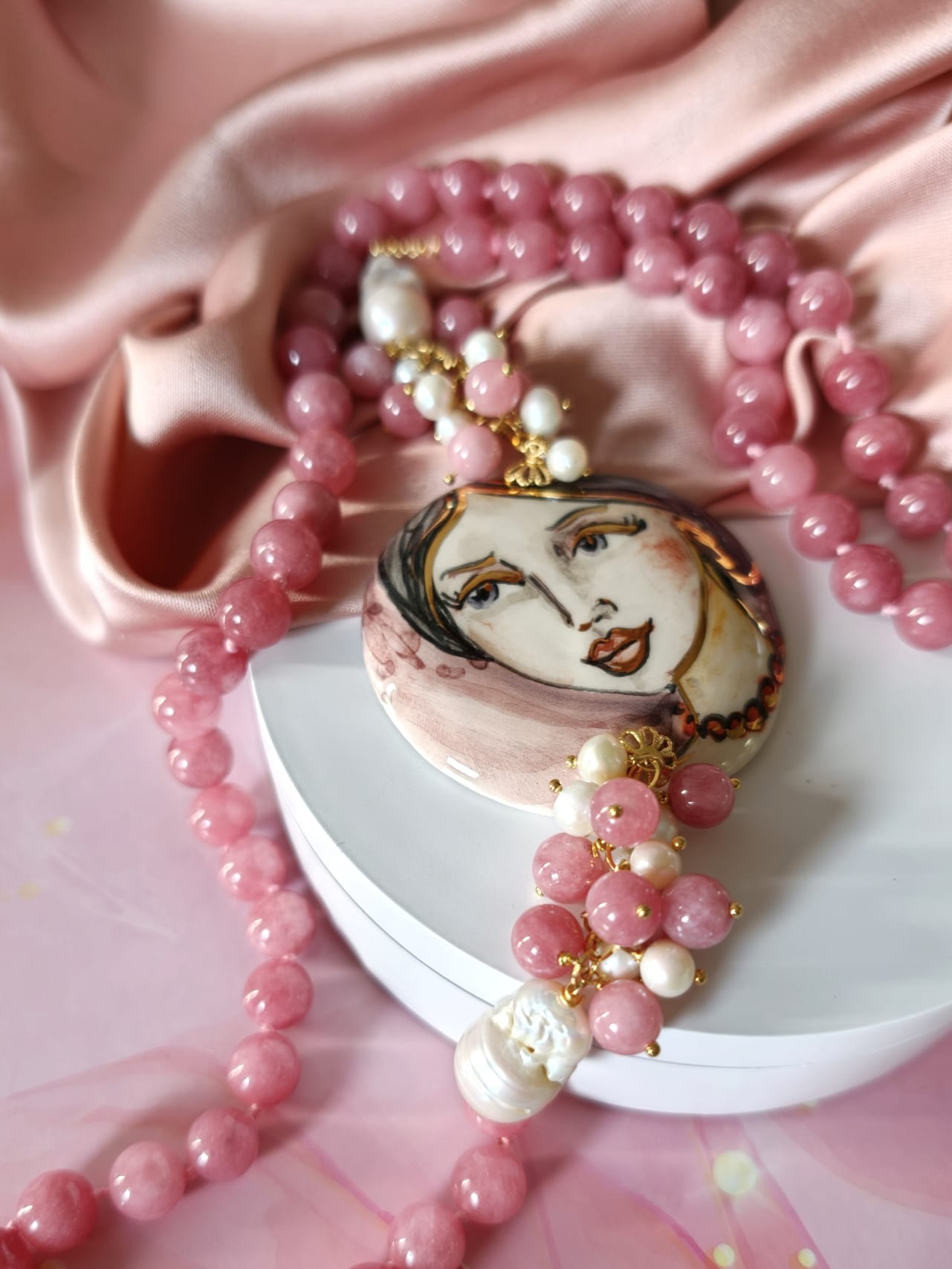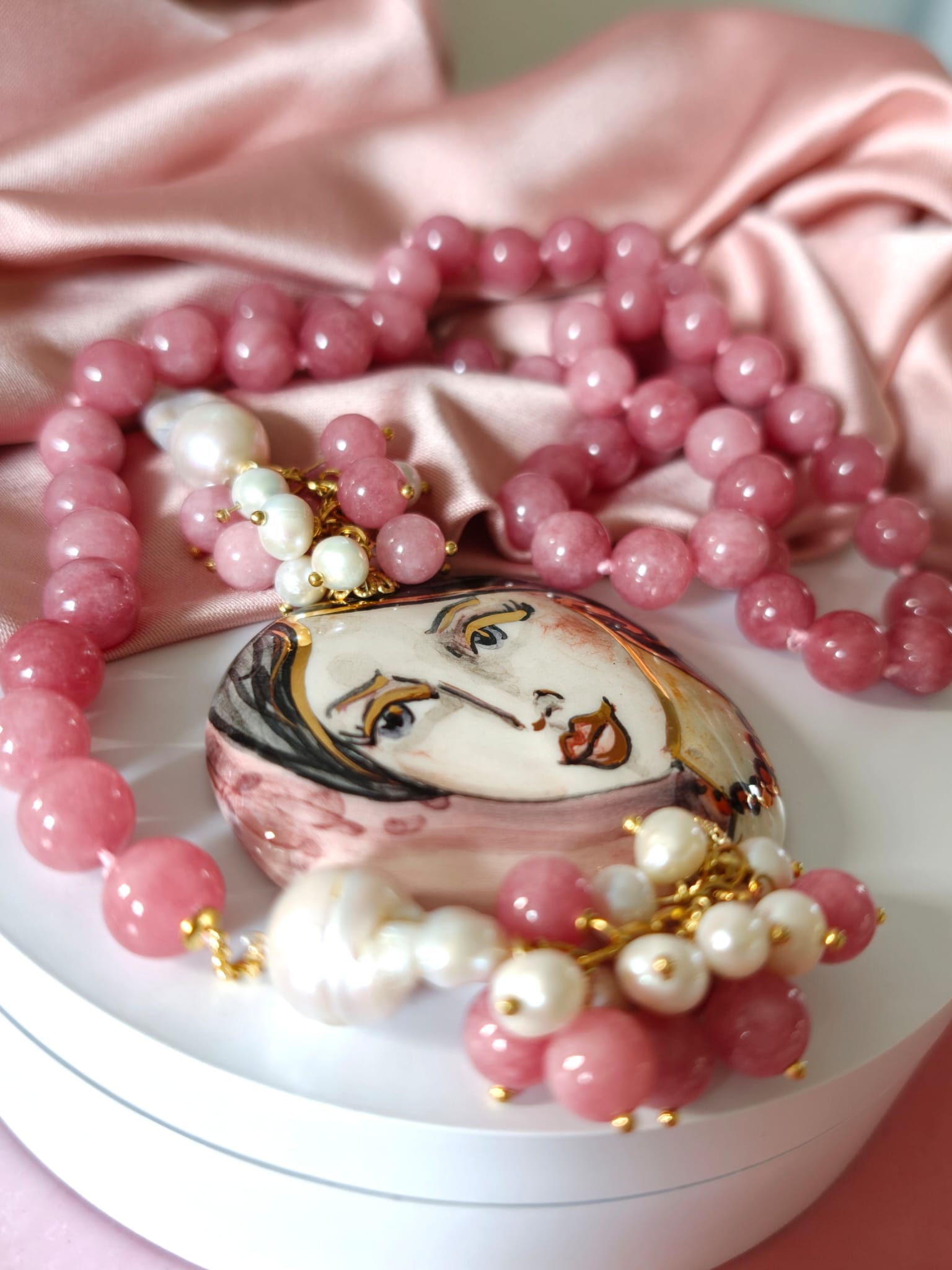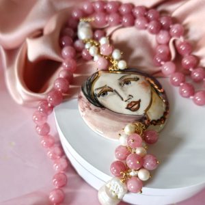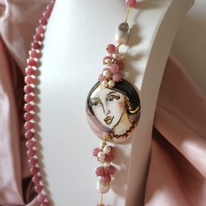 Collana Giada E Volto Donna Dipinto A Mano Su Ceramica