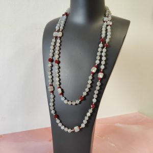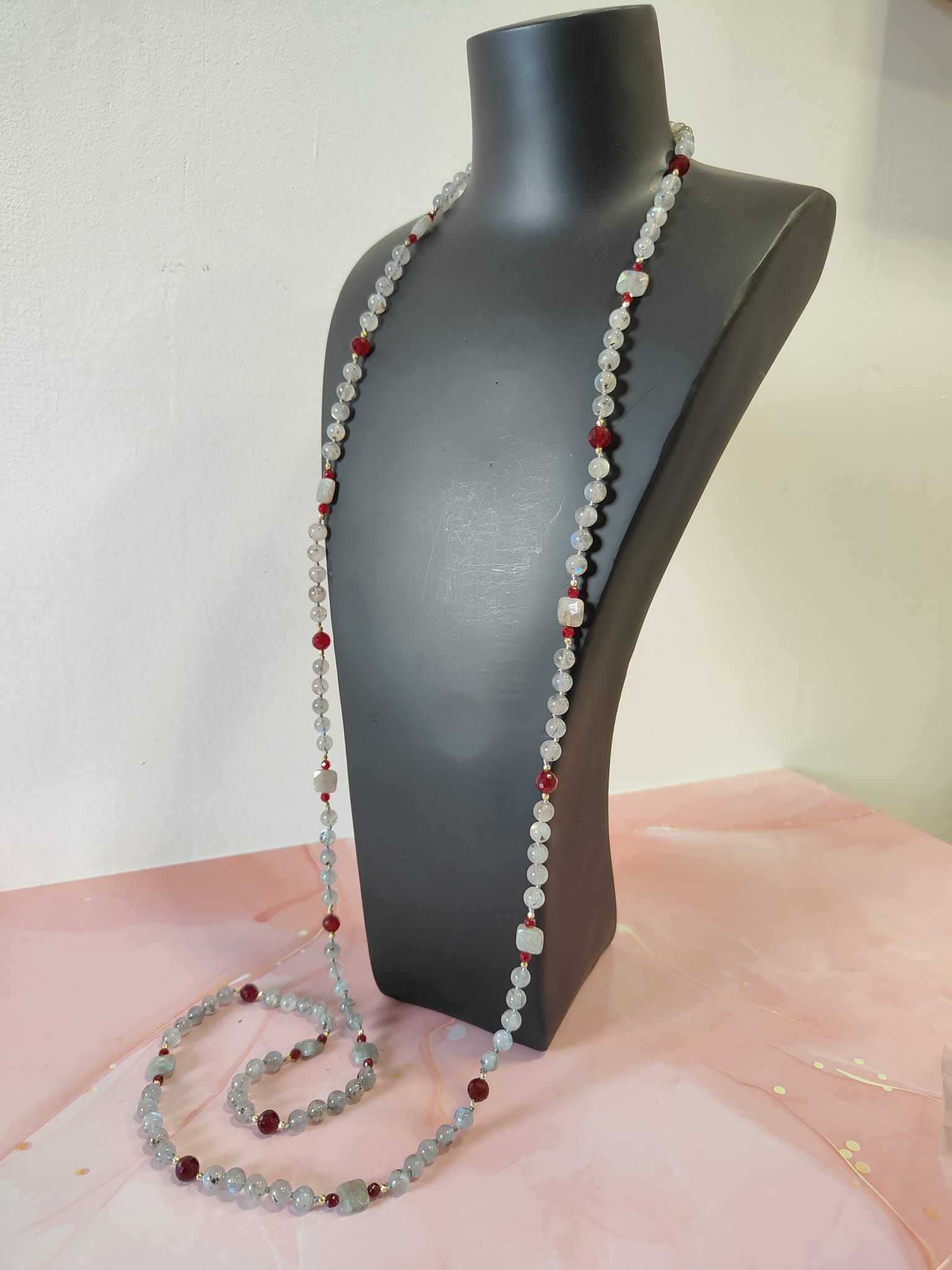 Questa collana lunga è pensata per chi ama i gioielli scenografici ma facili da indossare. La Collana Labradorite E Agata scorre morbida lungo il corpo e può essere portata in un solo giro oppure avvolta più volte. In ogni caso crea subito un punto luce importante e originale.