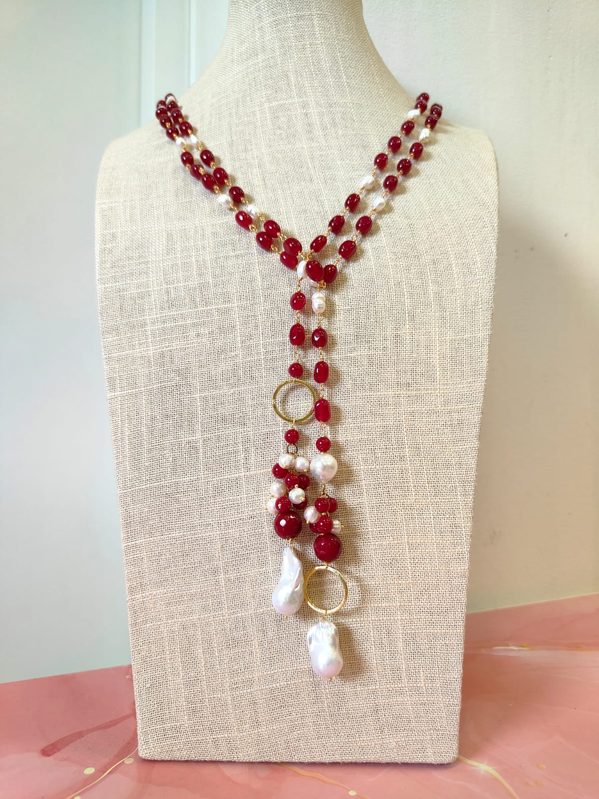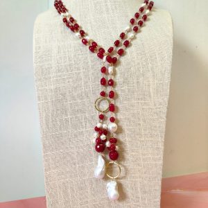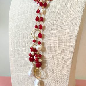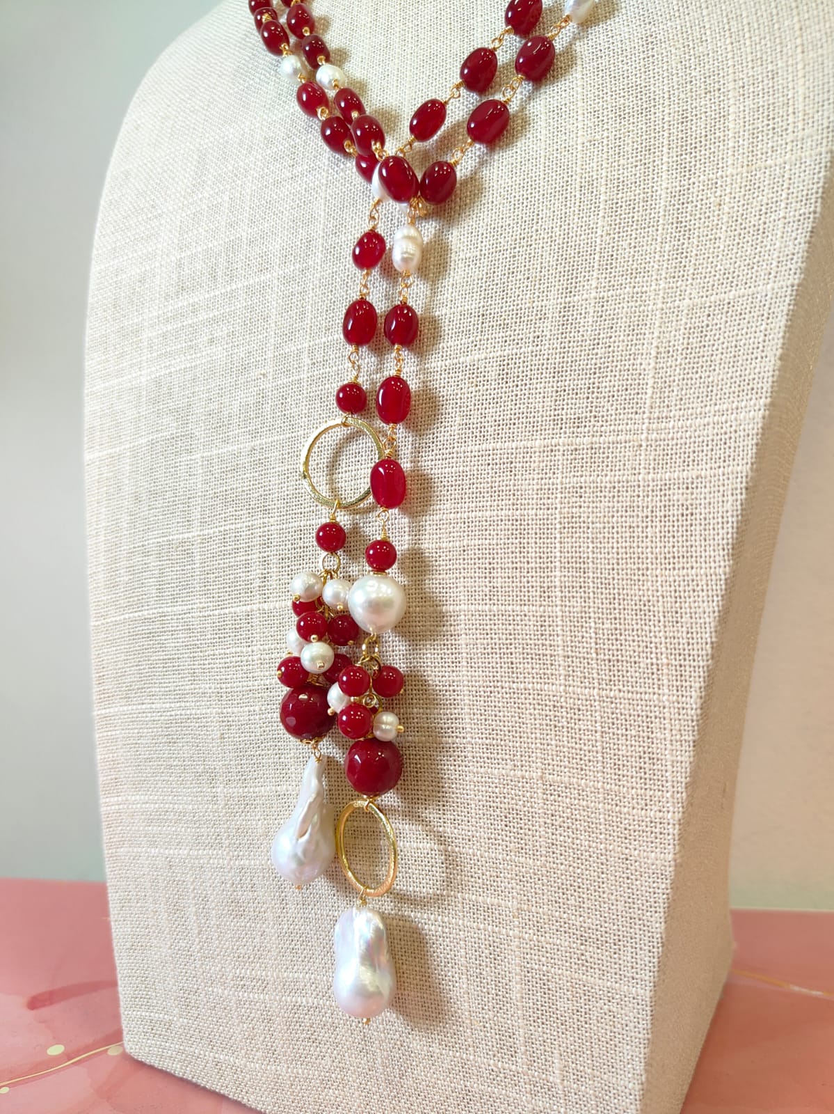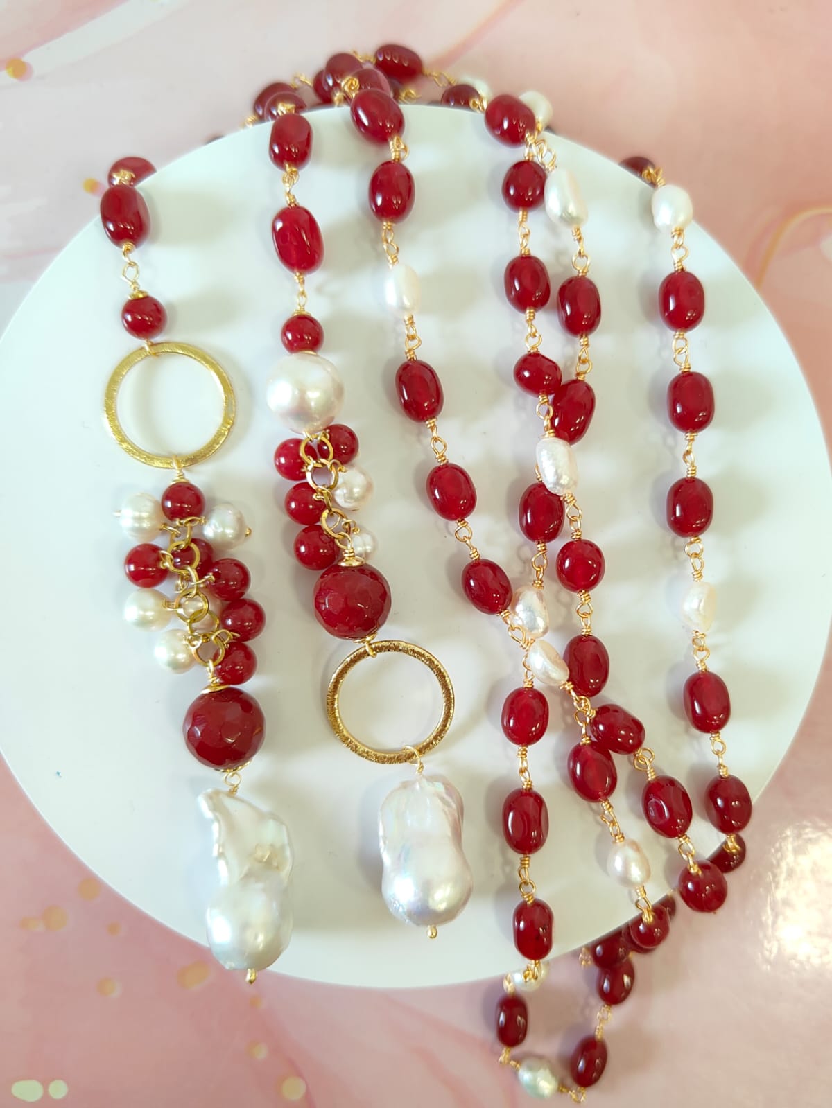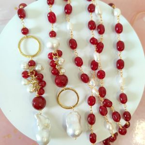 Materiali: agata rossa naturale, perle naturali, perle barocche