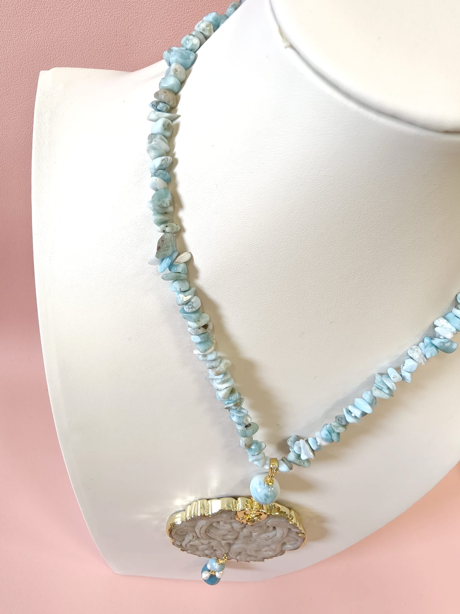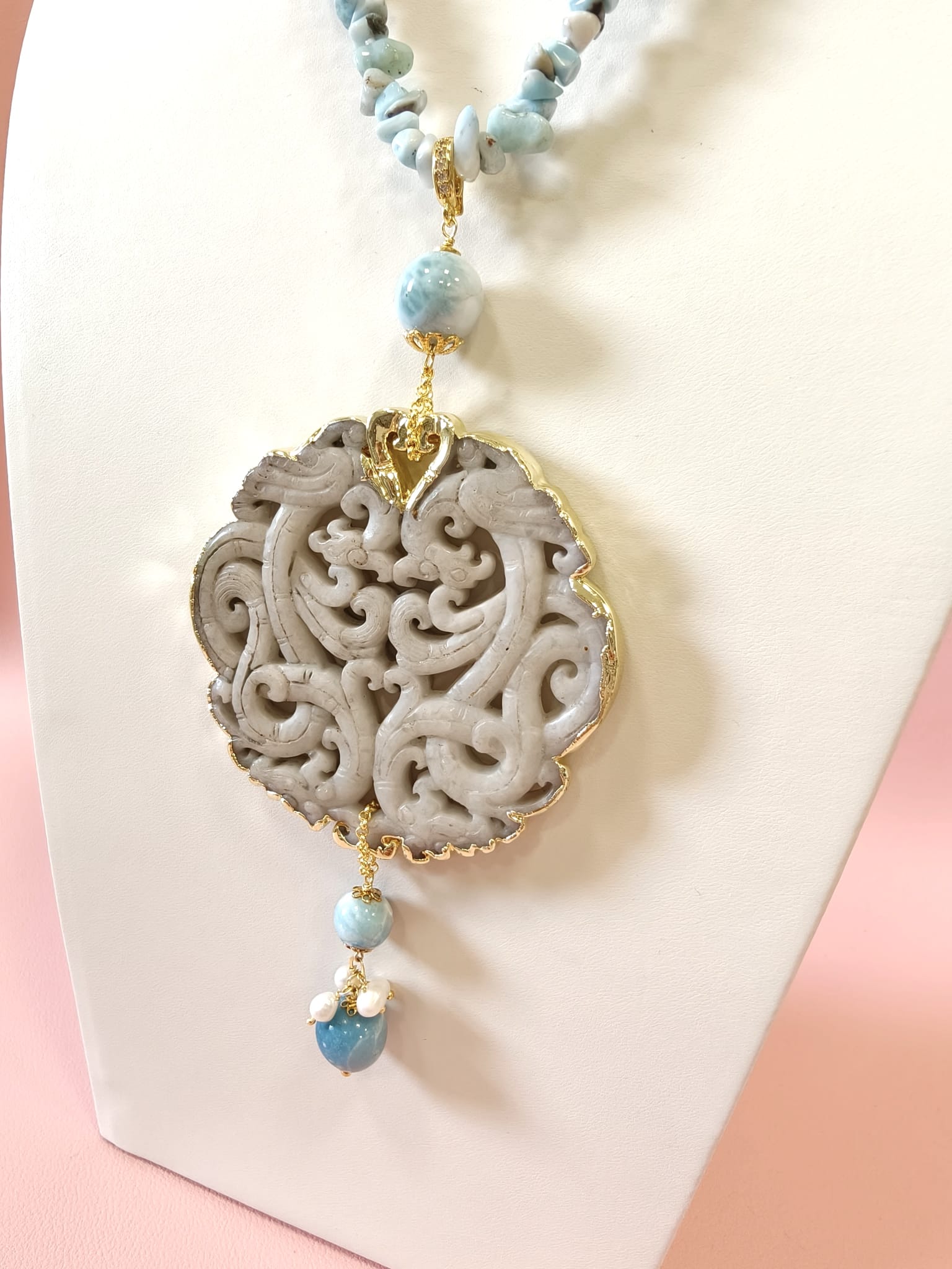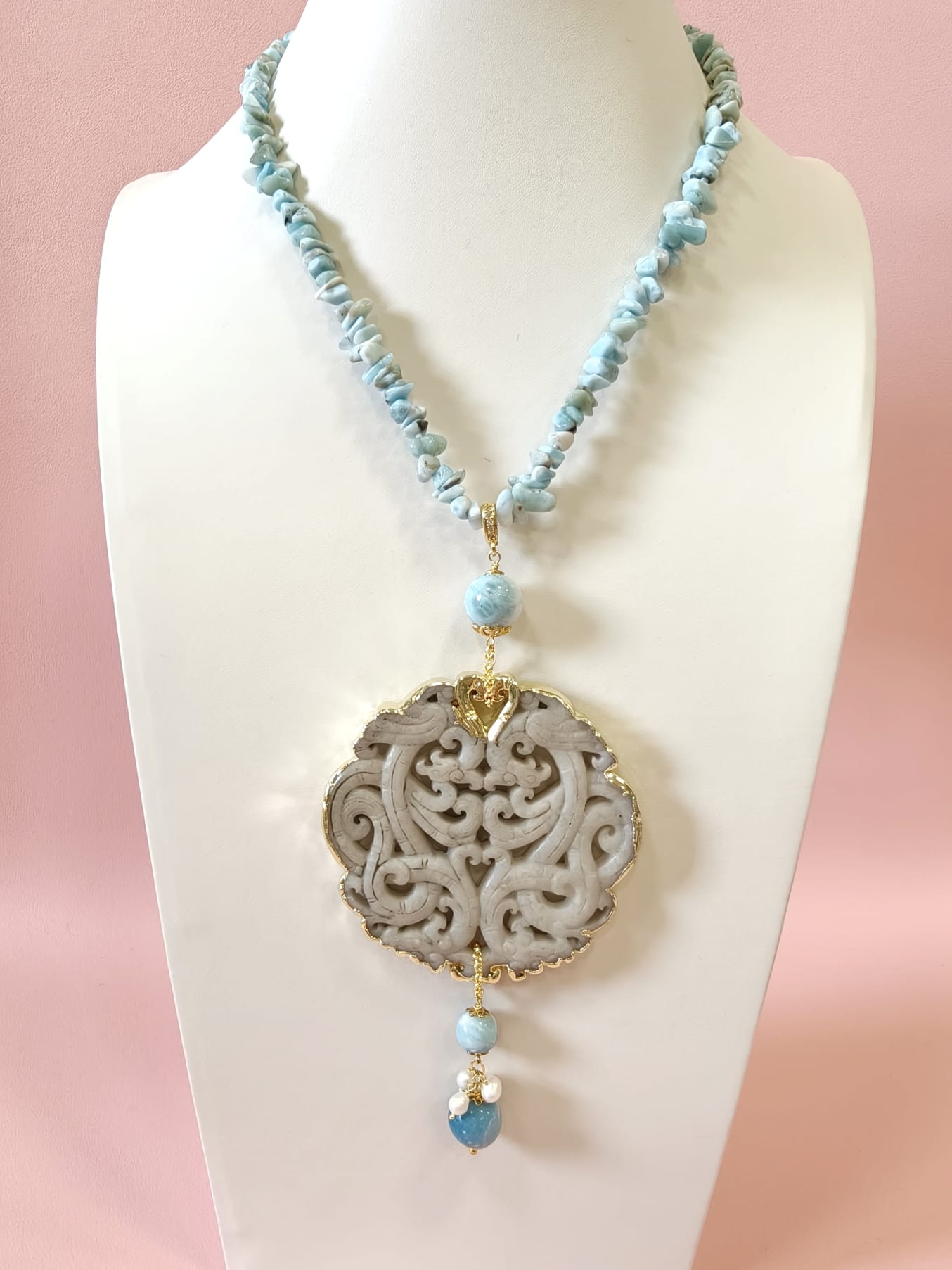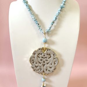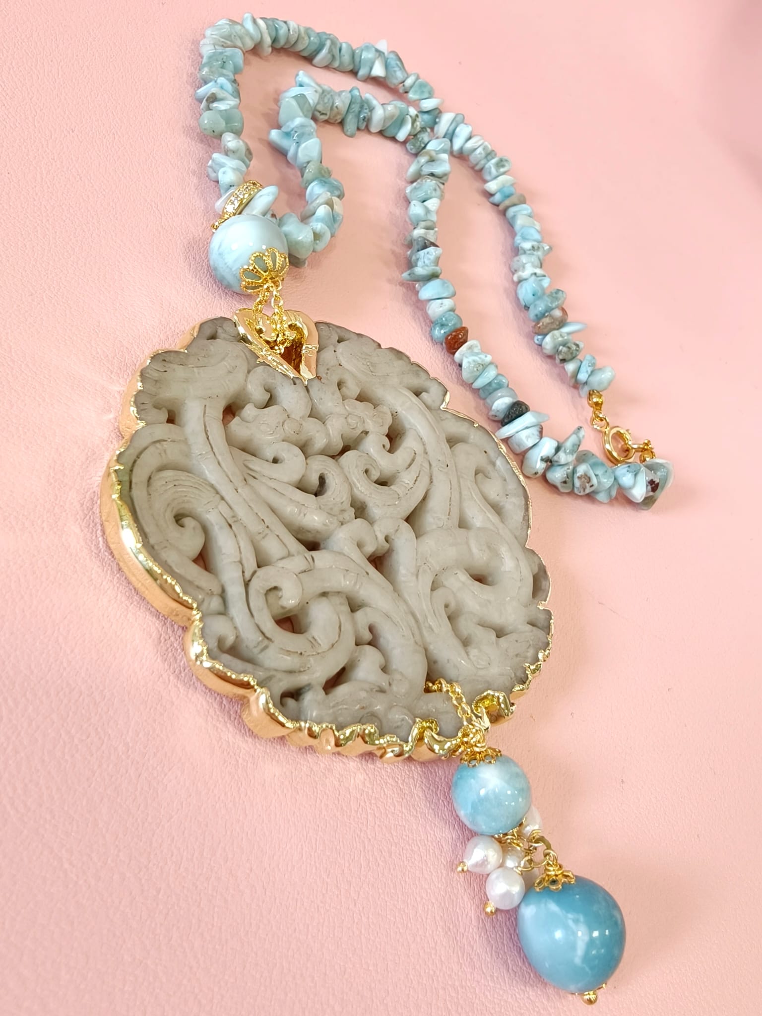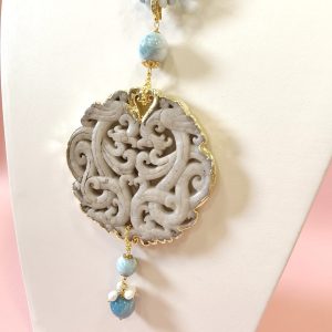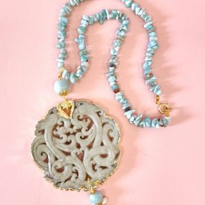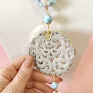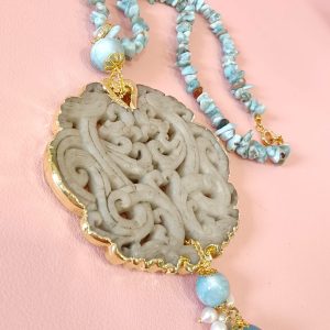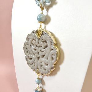 Collana Larimar E Giada Intagliata Ispirata Al Mare E Alla Luce