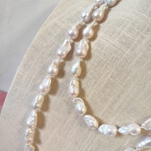 Realizzata con splendide perle barocche d’acqua dolce, annodate a mano una ad una, questa collana racchiude tutta la cura e la tradizione della gioielleria artigianale italiana. L’annodatura garantisce durata, equilibrio e un tocco di classe discreta, valorizzando la naturale bellezza delle perle.