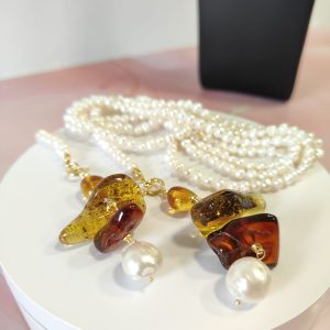Materiali: perle naturali, ambra baltica naturale, componenti metallici dorati