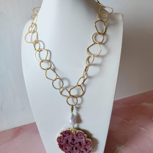 Un dettaglio unico è il moschettone posto sul ciondolo, che permette di rimuoverlo facilmente e utilizzarlo anche su altre collane. Un accessorio trasformabile, ideale per chi ama rinnovare il proprio look con eleganza e creatività.