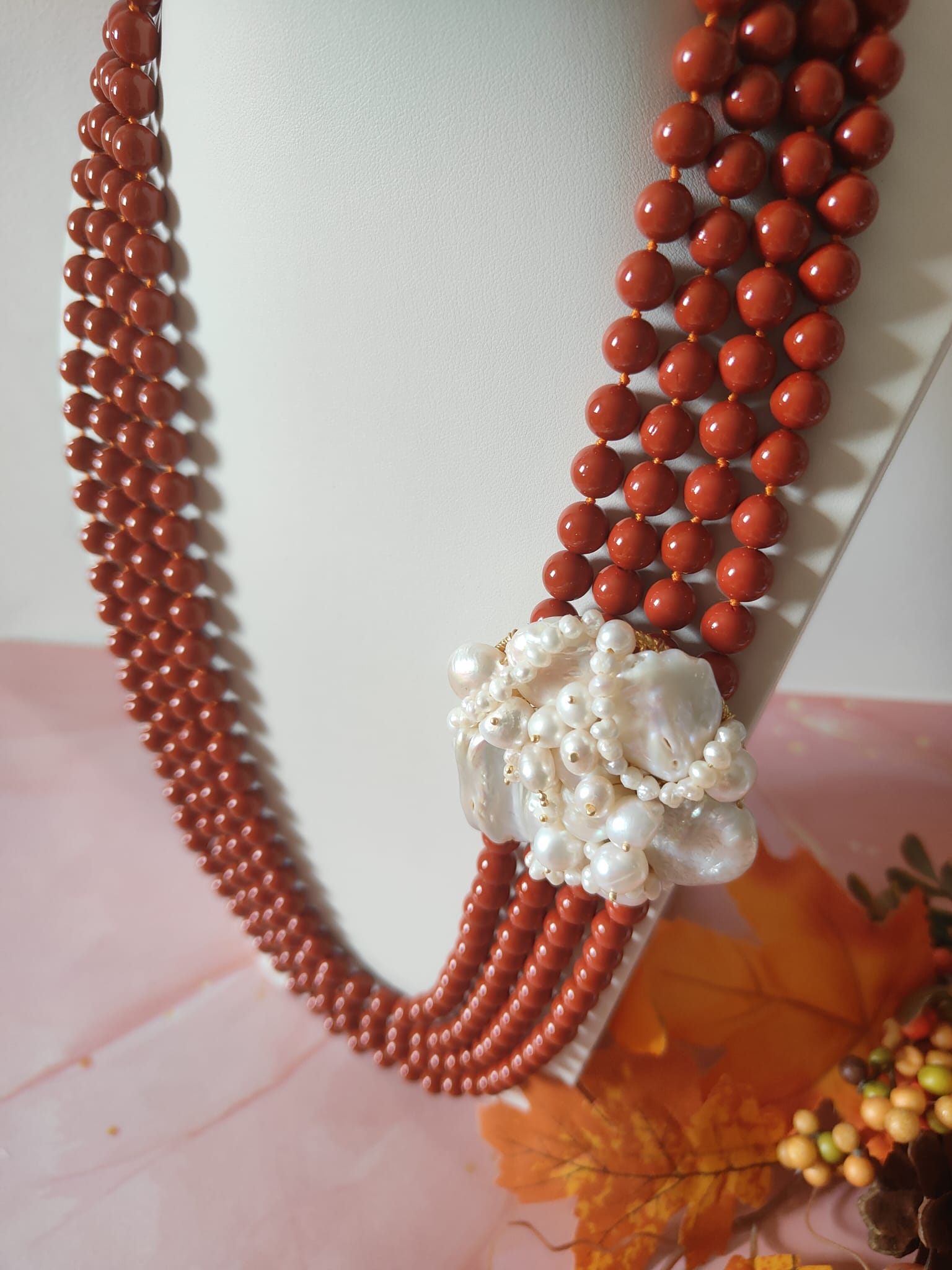 Caratteristiche tecniche collana multifilo corallo e perle: