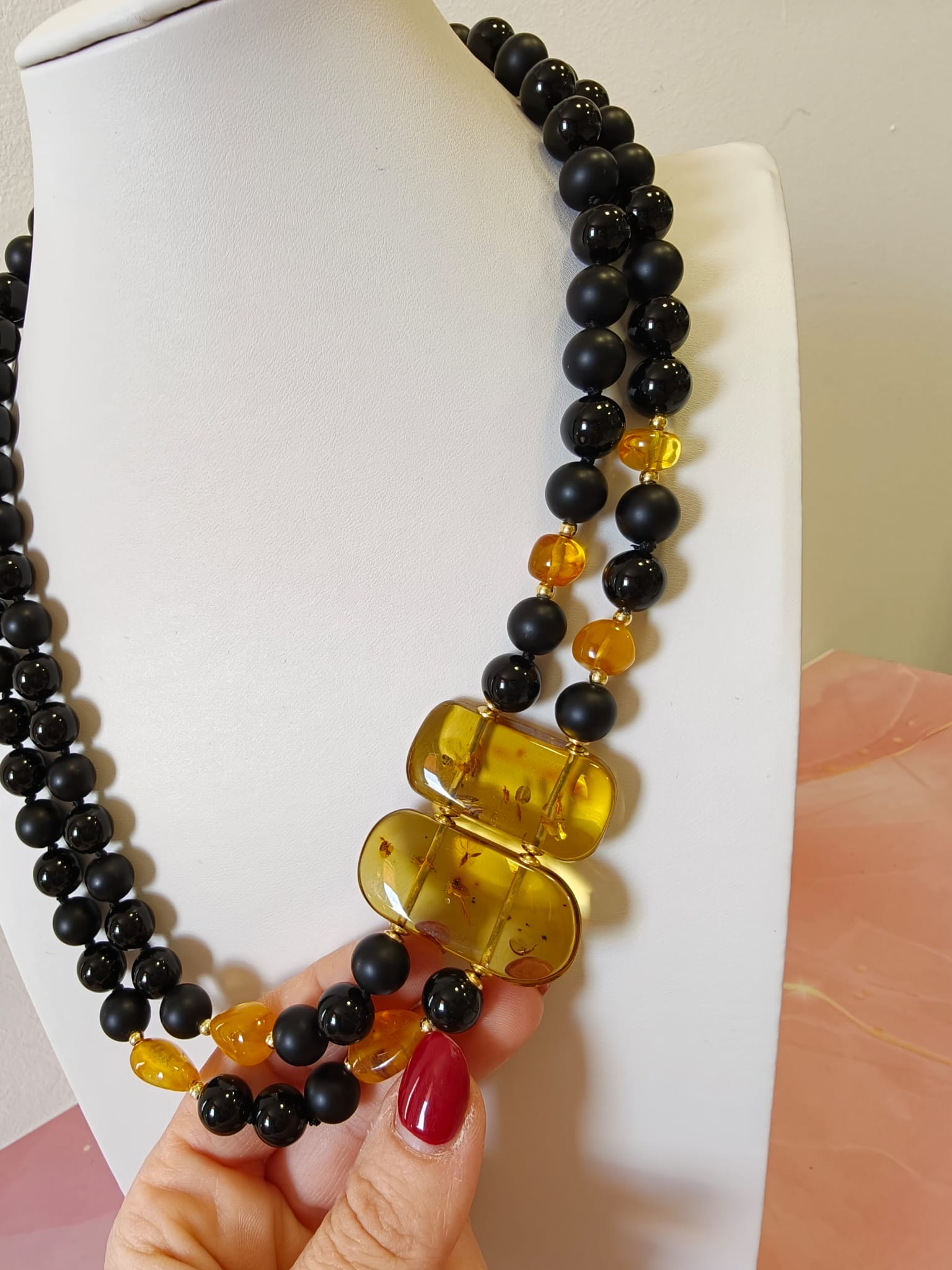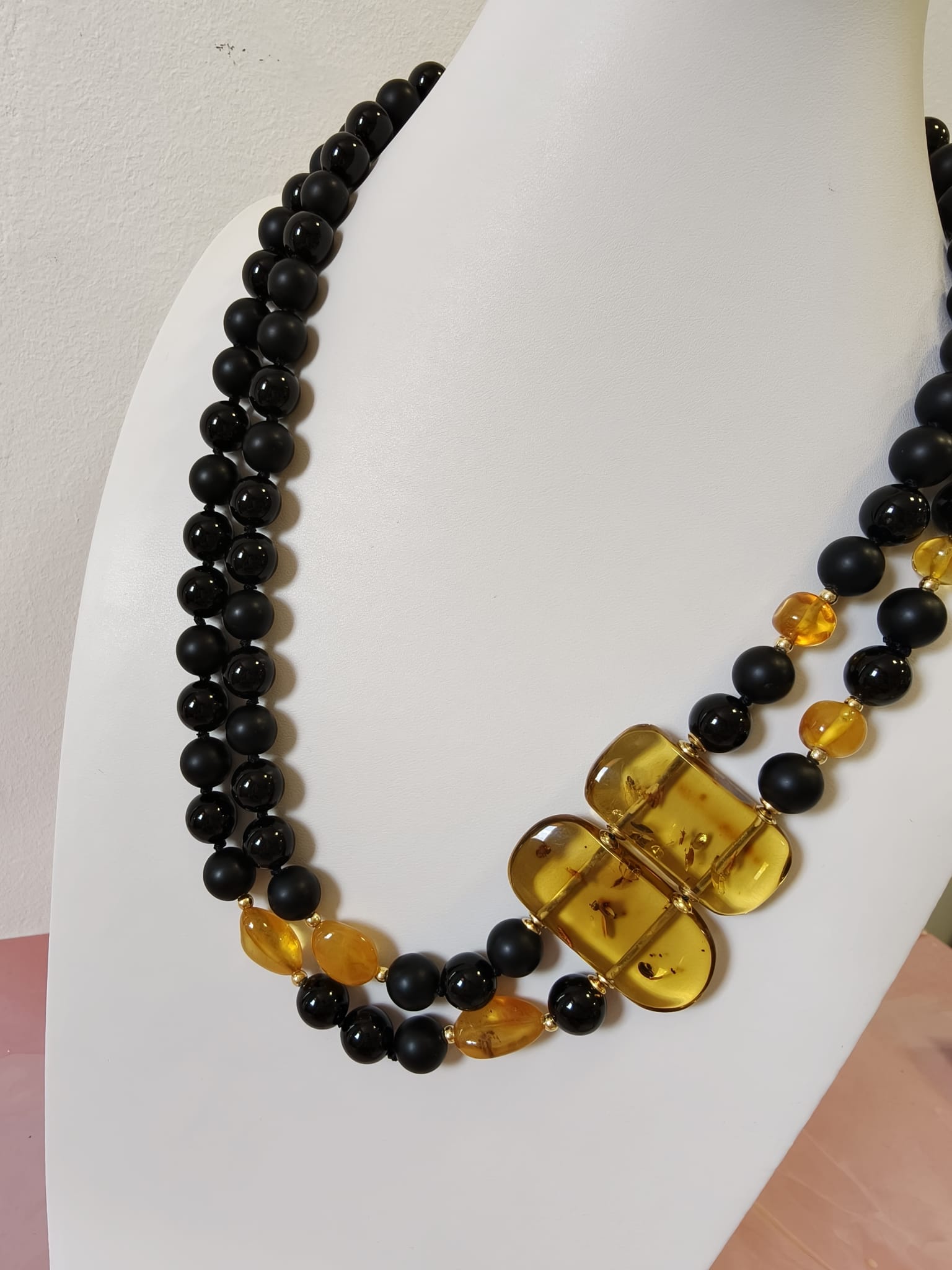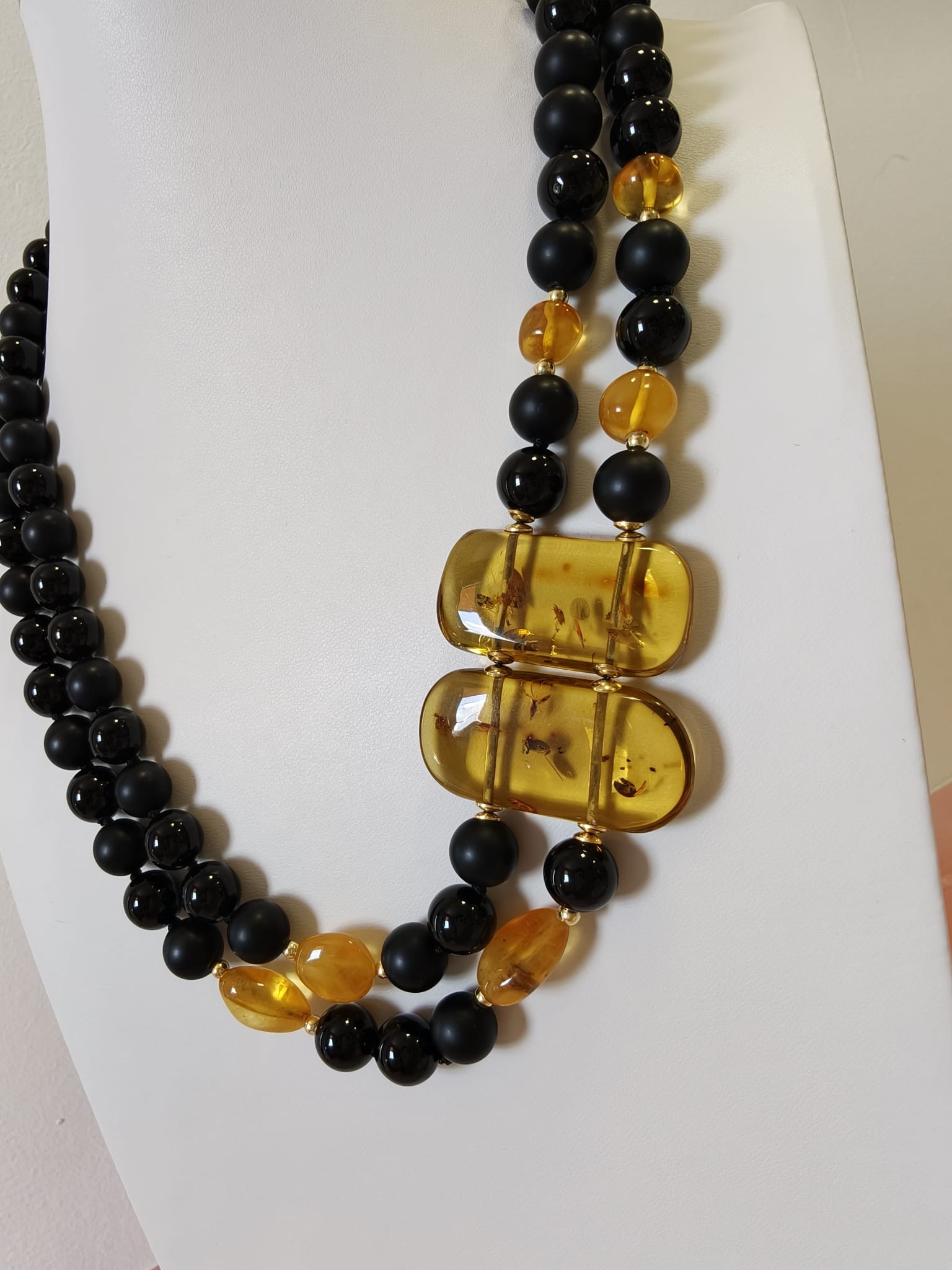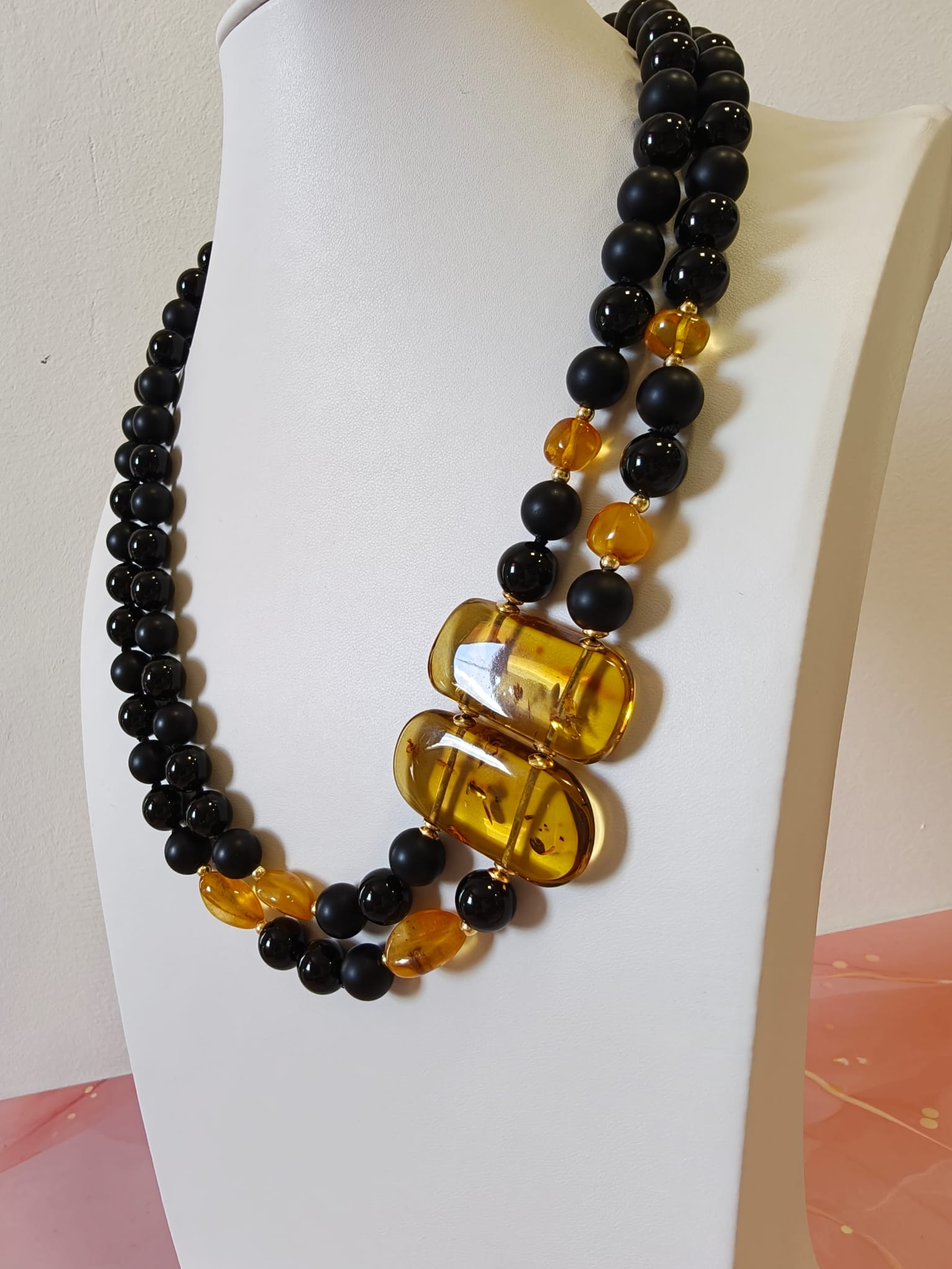 Caratteristiche tecniche collana onice e ambra miele