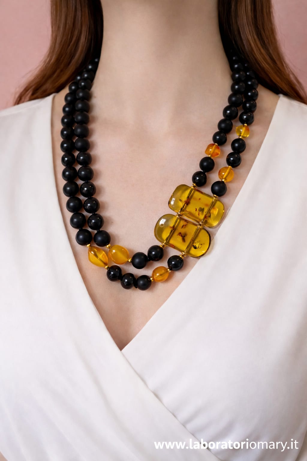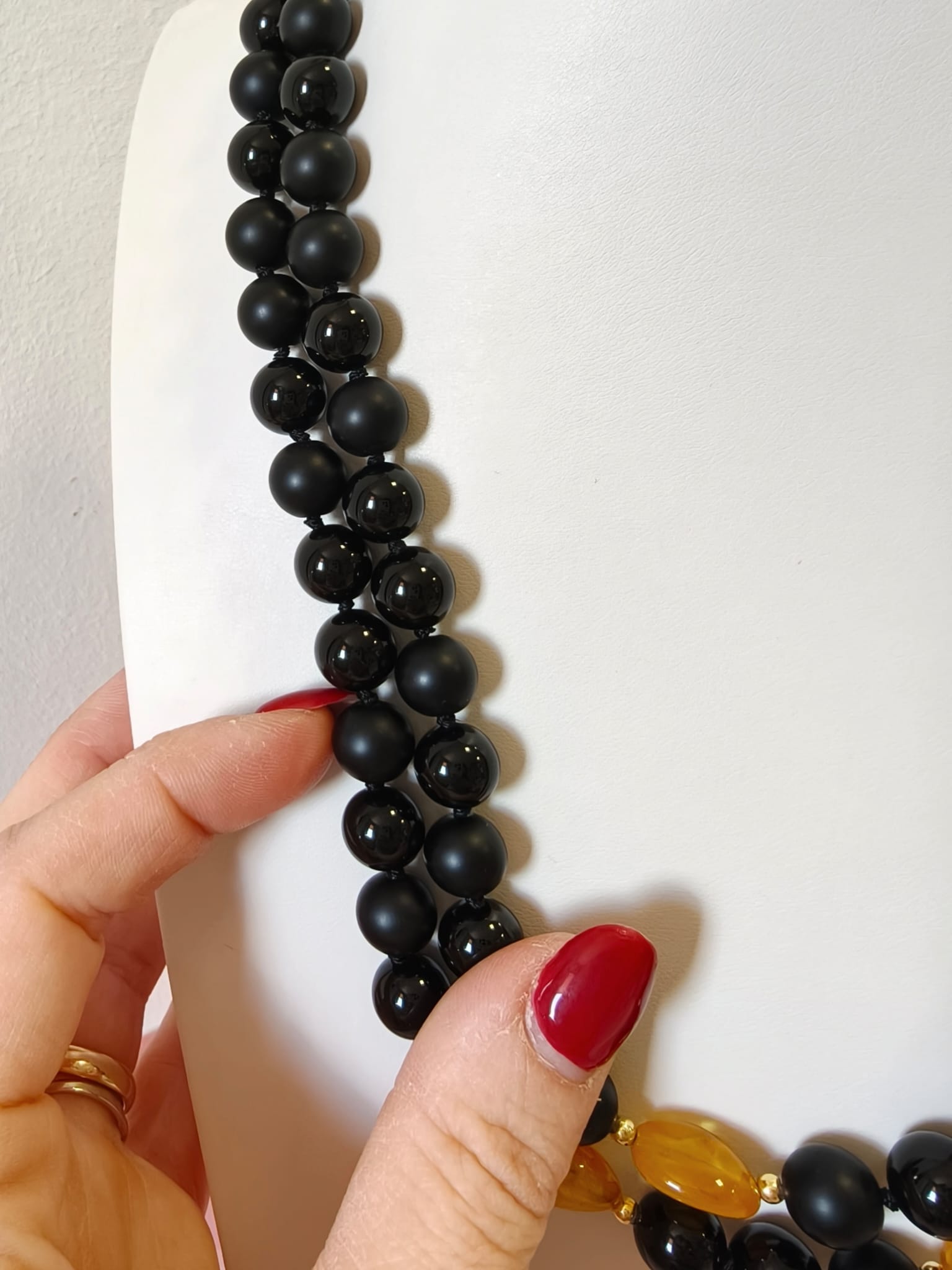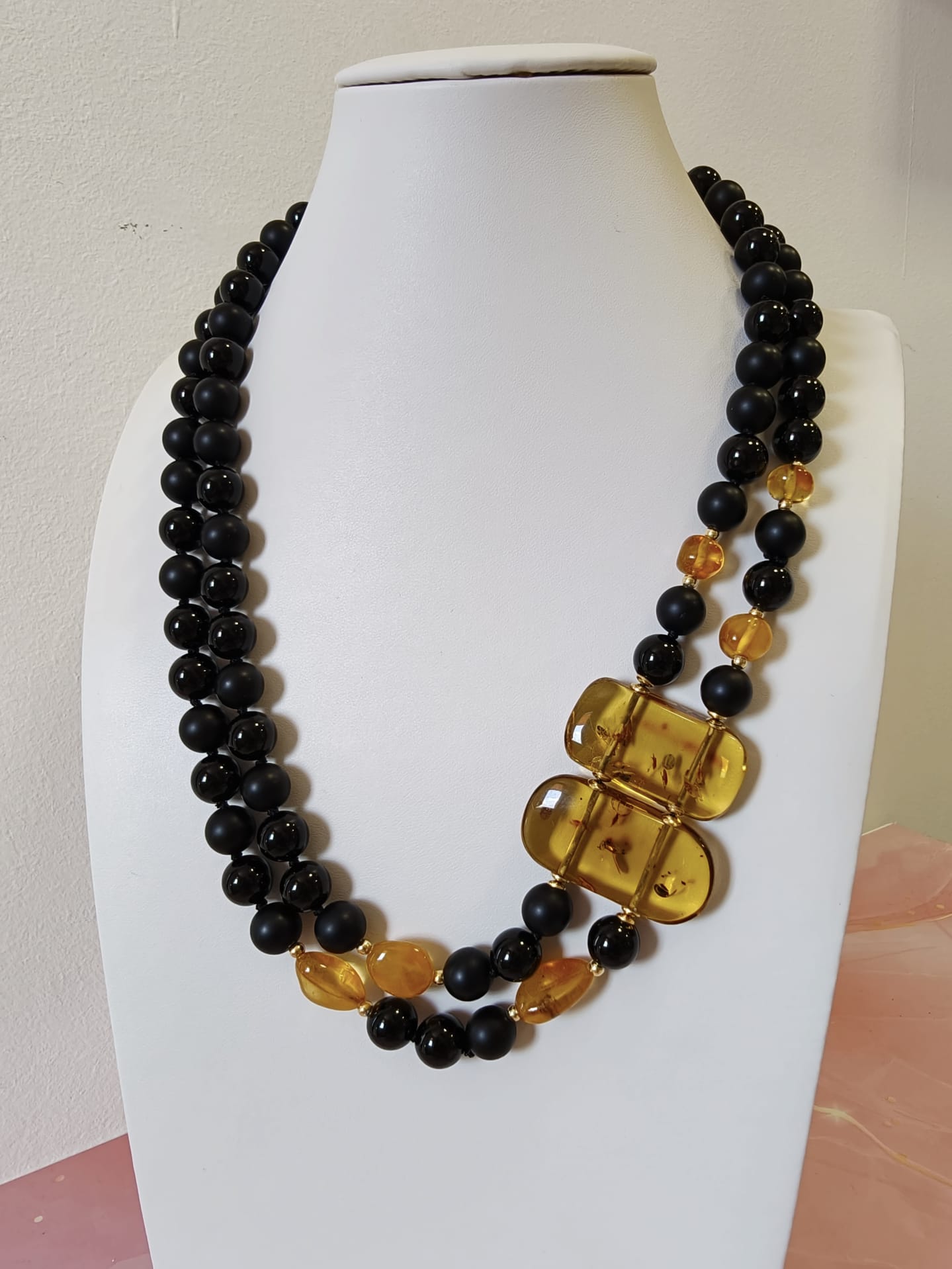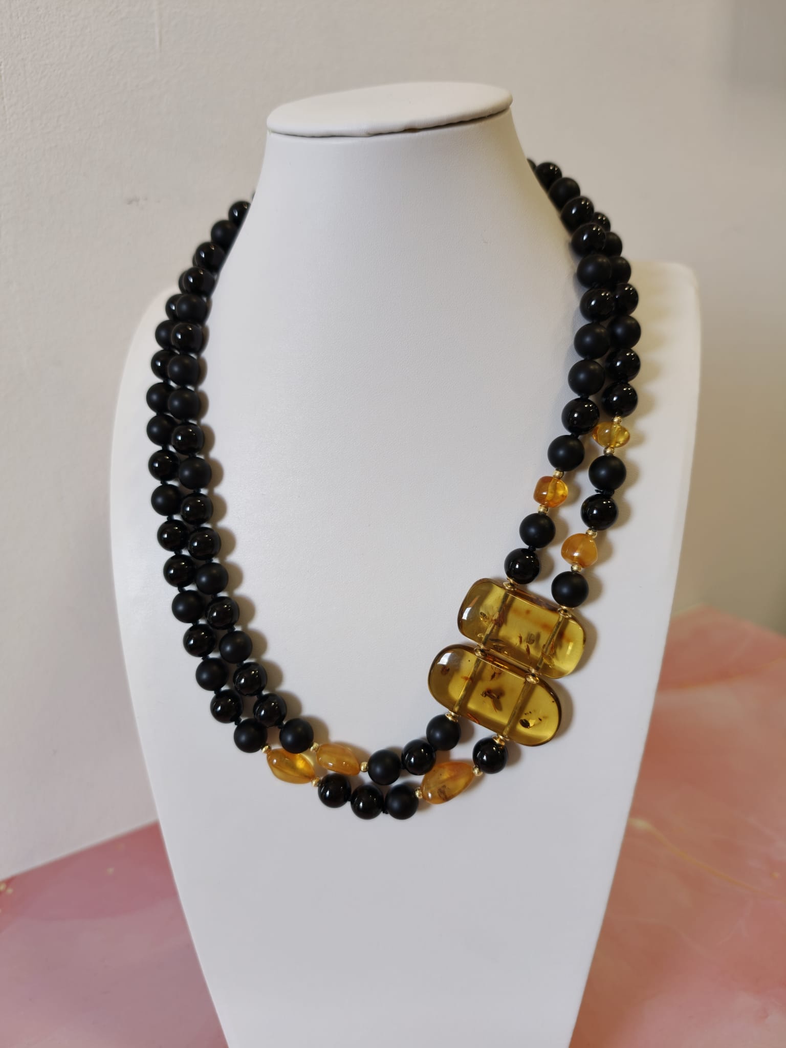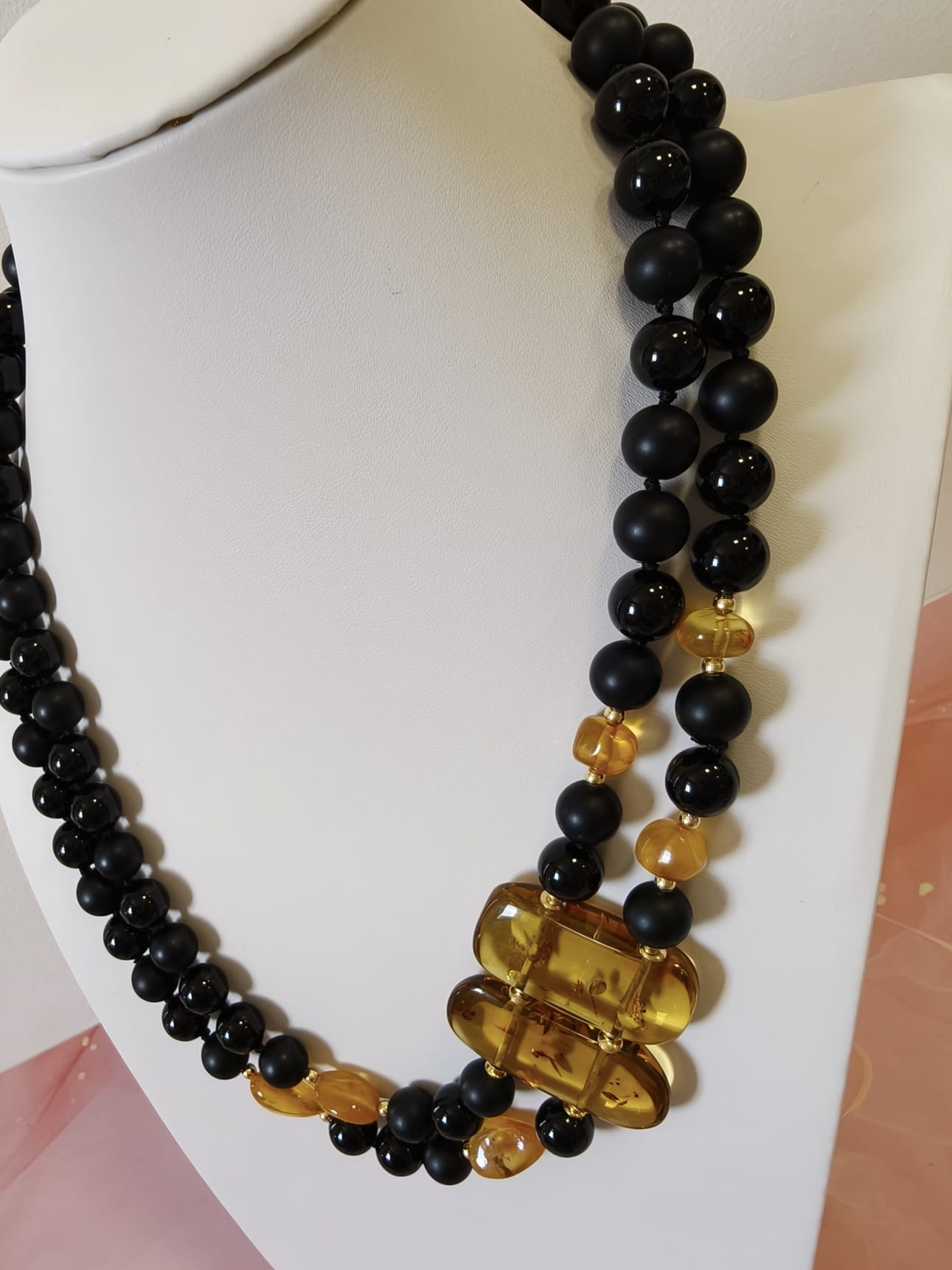 Caratteristiche tecniche collana onice e ambra miele