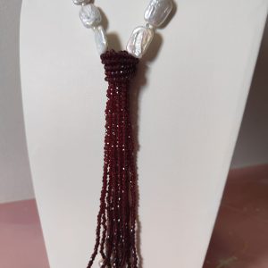 Materiali: perle naturali irregolari, cristalli bordeaux, acciaio