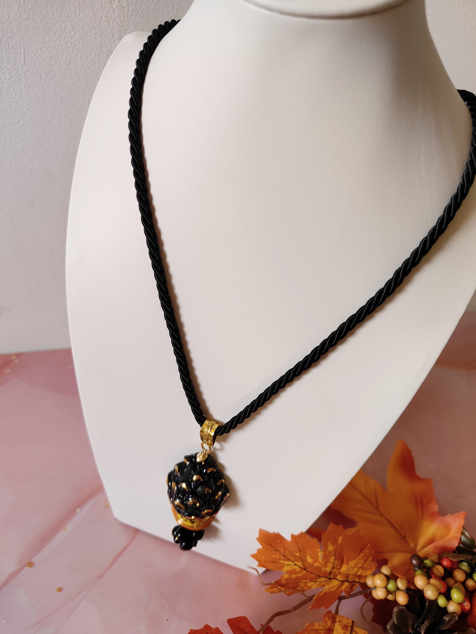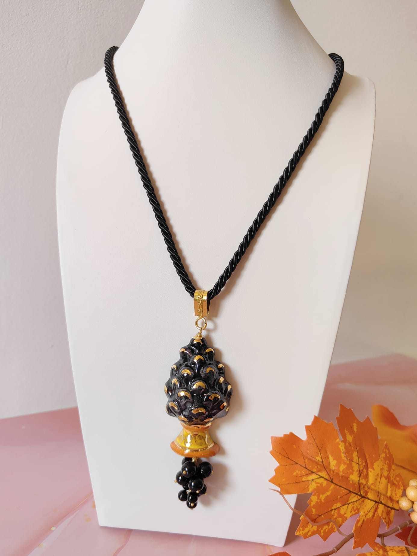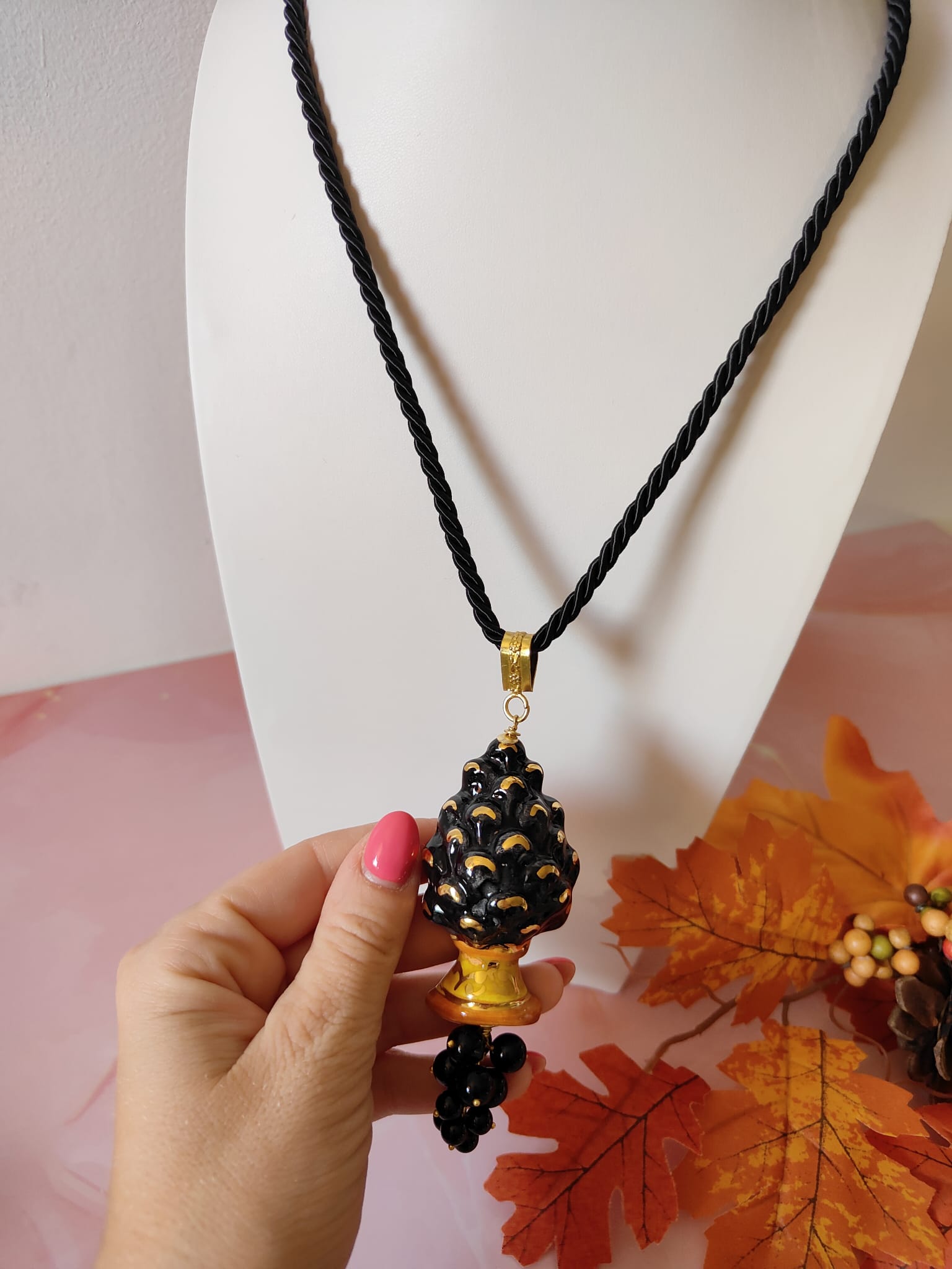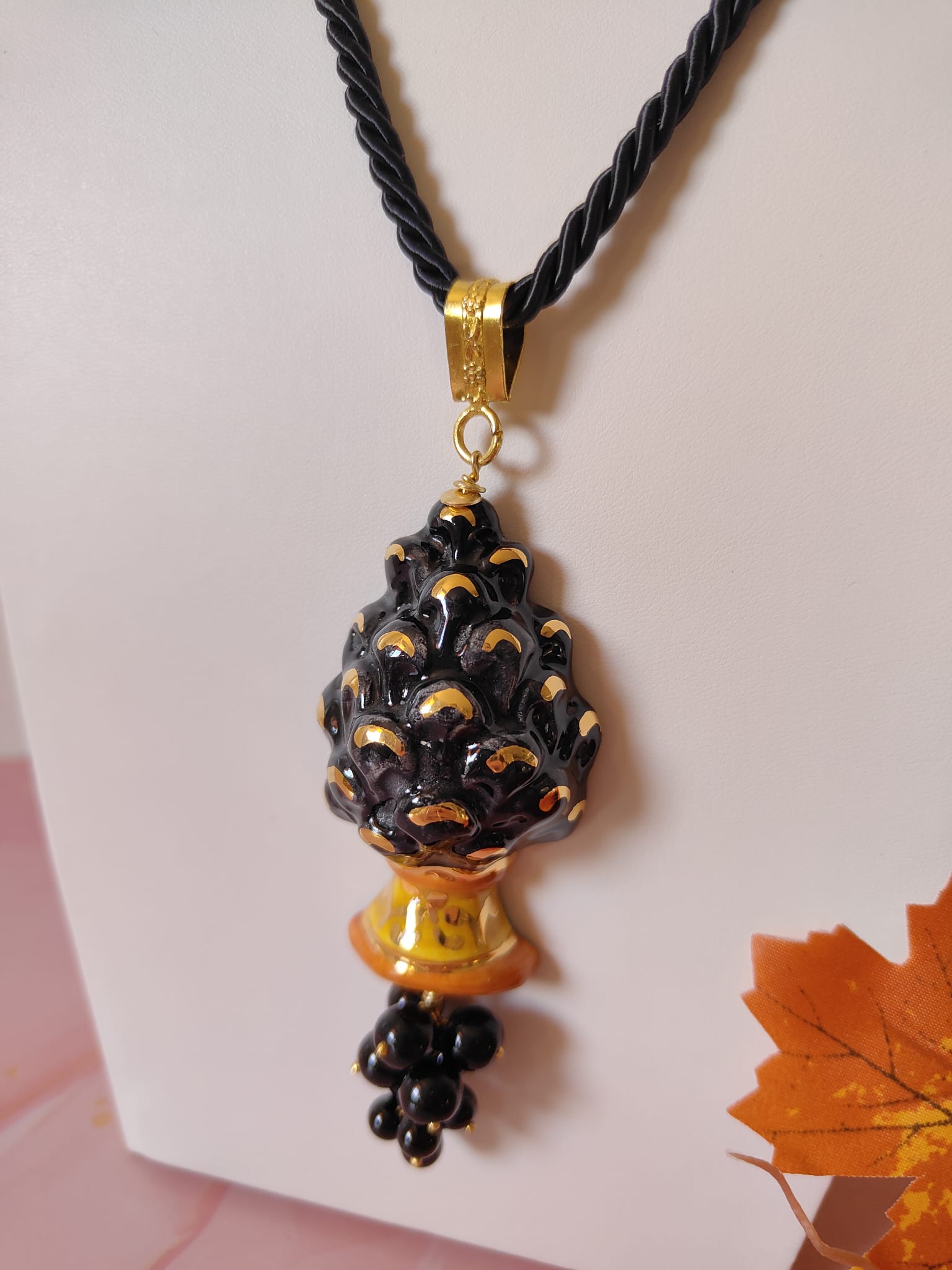 Ciondolo: Pigna nera in ceramica con grappolo di onice