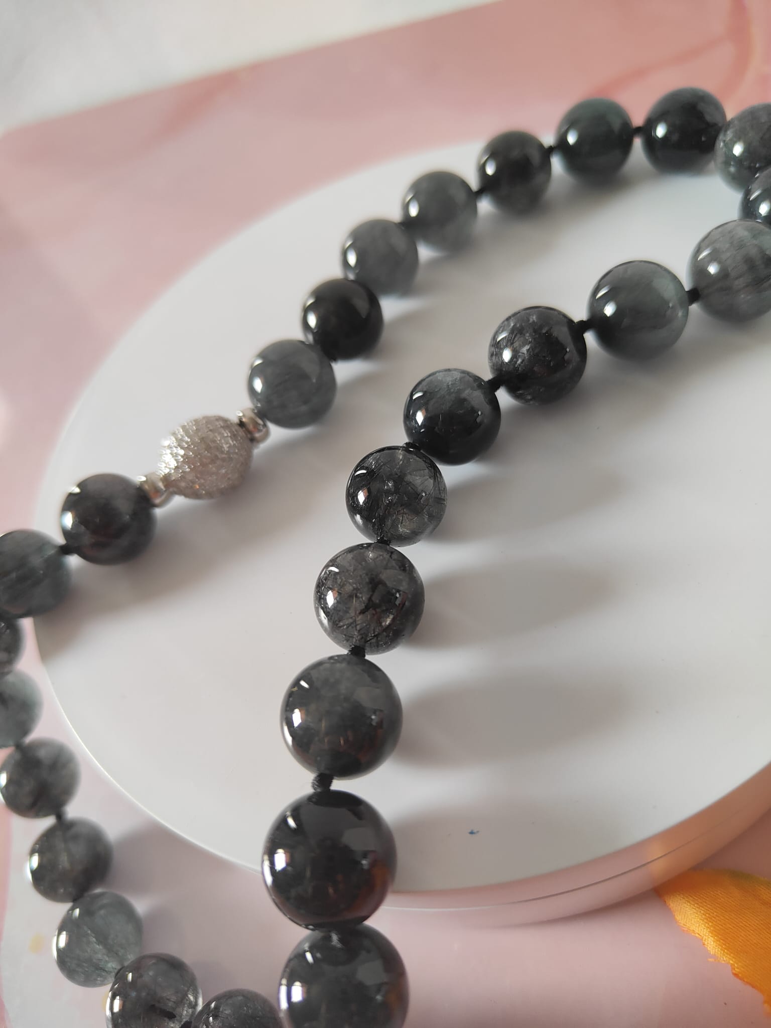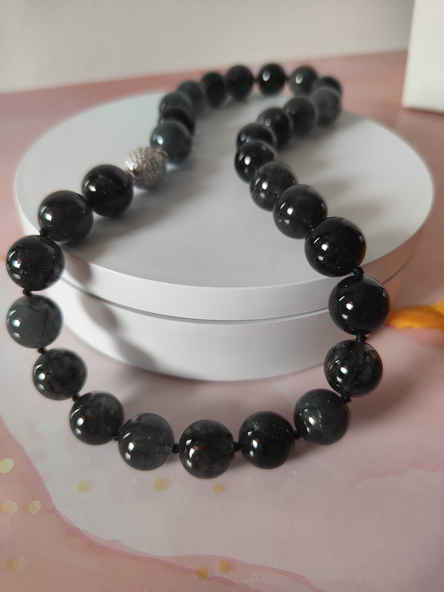 La collana quarzo rutilato è un gioiello che racchiude in sé eleganza, energia e un design senza tempo. Realizzata con sfere di quarzo rutilato naturale, questa collana si distingue per la bellezza unica della pietra, caratterizzata da inclusioni che creano effetti luminosi straordinari. Ogni pietra riflette la luce in modo diverso, rendendo ogni collana una creazione irripetibile.