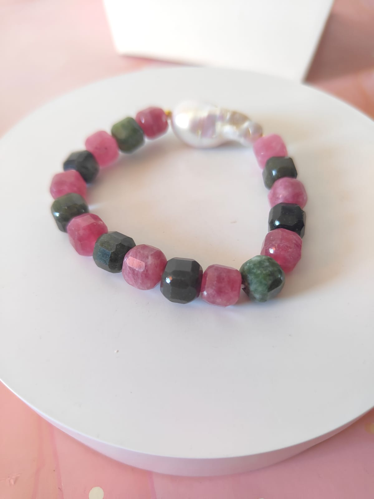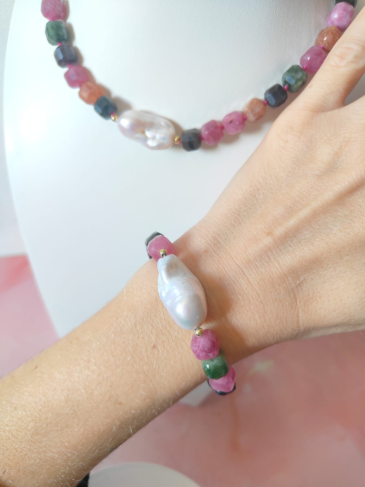 La Collana Tormalina E Perla Con Bracciale Coordinato è un omaggio alla bellezza naturale delle gemme e alla raffinatezza artigianale. Un gioiello luminoso e armonioso, pensato per chi ama i colori vivi e le sfumature della pietra tormalina, simbolo di energia e creatività.