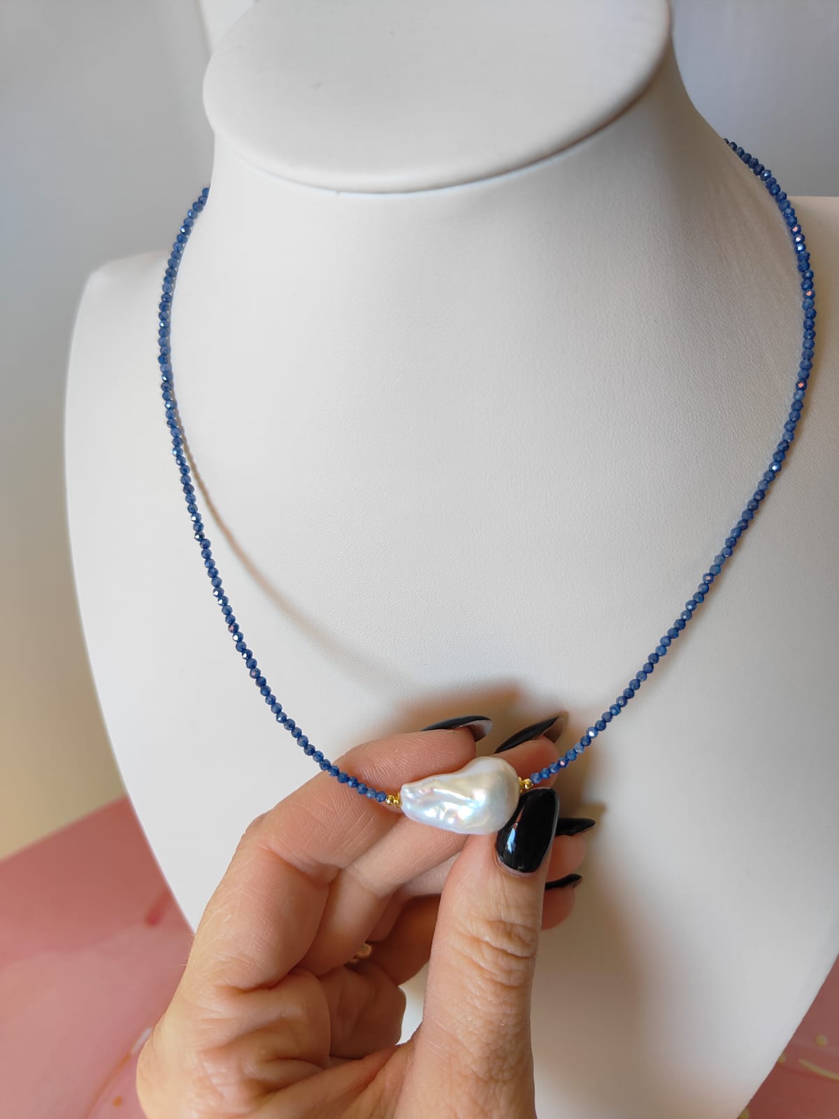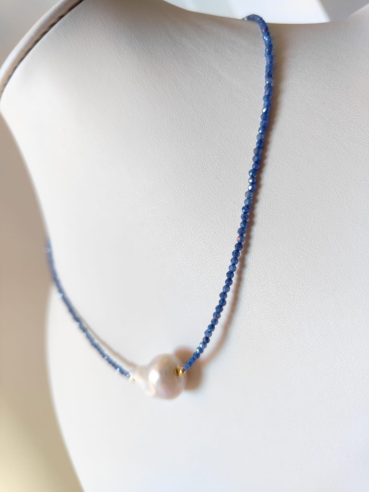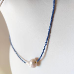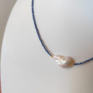Materiali: zirconi sfaccettati blu, perla barocca naturale