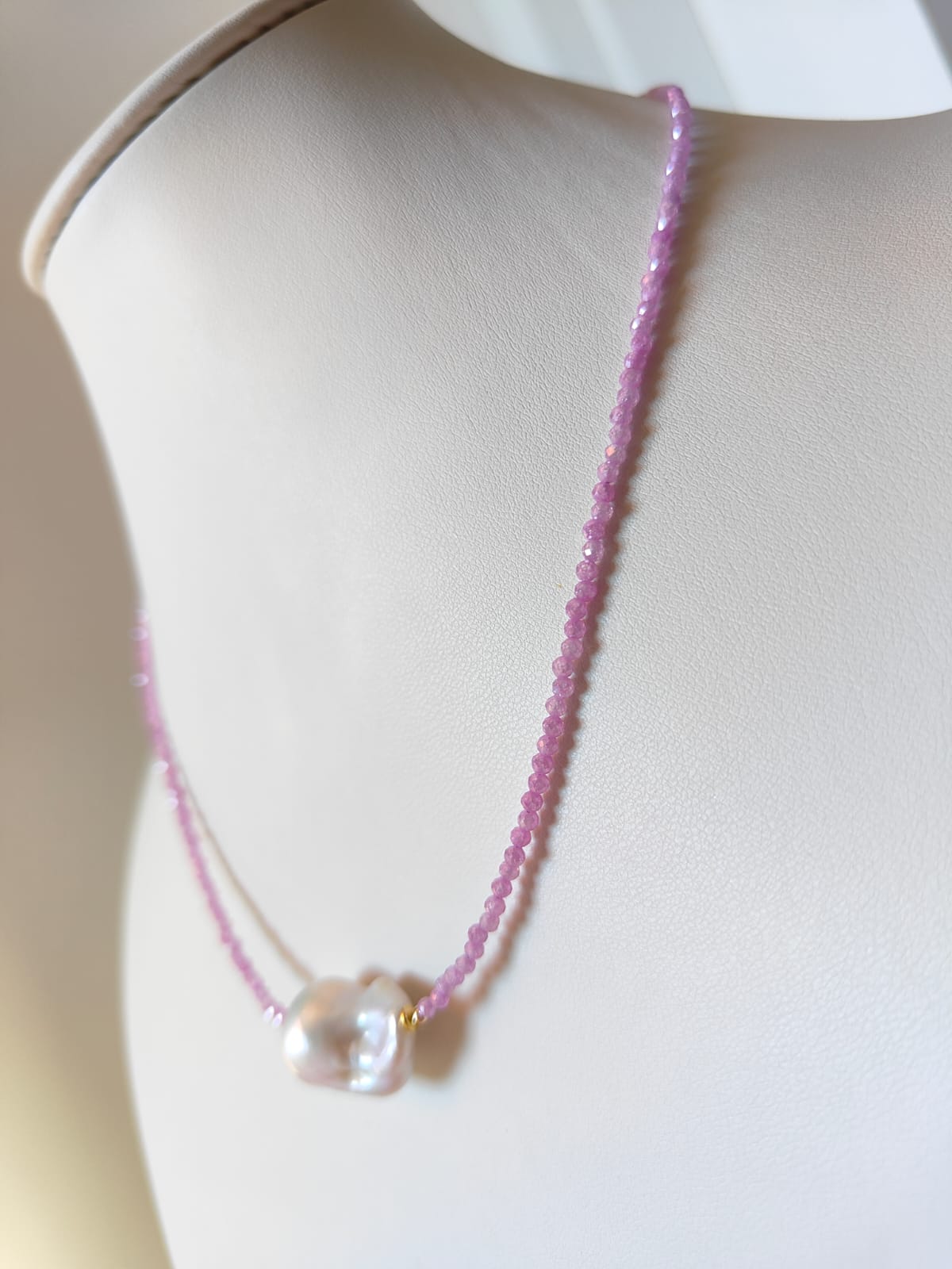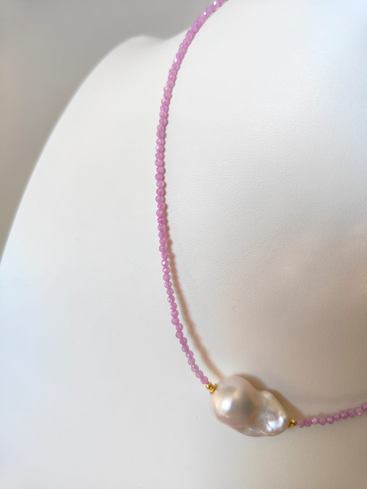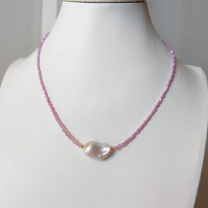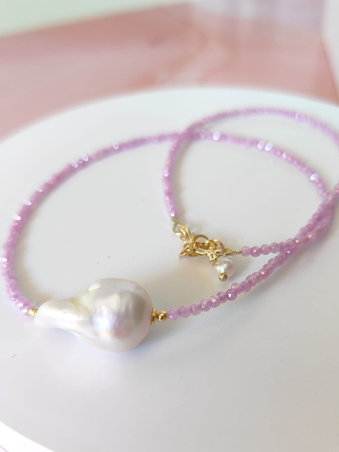 La collana zirconi rosa e barocca nasce con l’intento di unire leggerezza e lusso quotidiano, per abbracciare la bellezza di ogni donna in modo semplice ma ricercato. Si tratta di un girocollo sottile, composto da una serie di zirconi rosa sfaccettati che catturano la luce ad ogni movimento. La tonalità scelta, morbida e luminosa, richiama i fiori primaverili e una femminilità senza tempo.