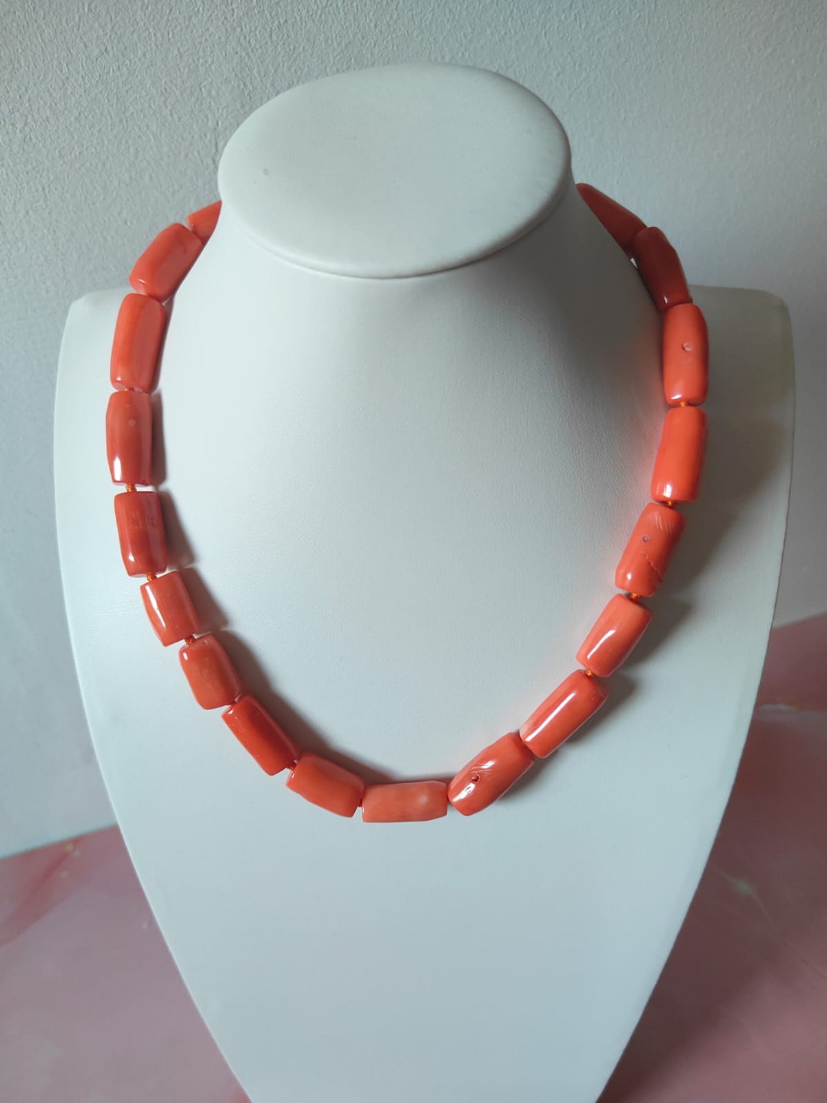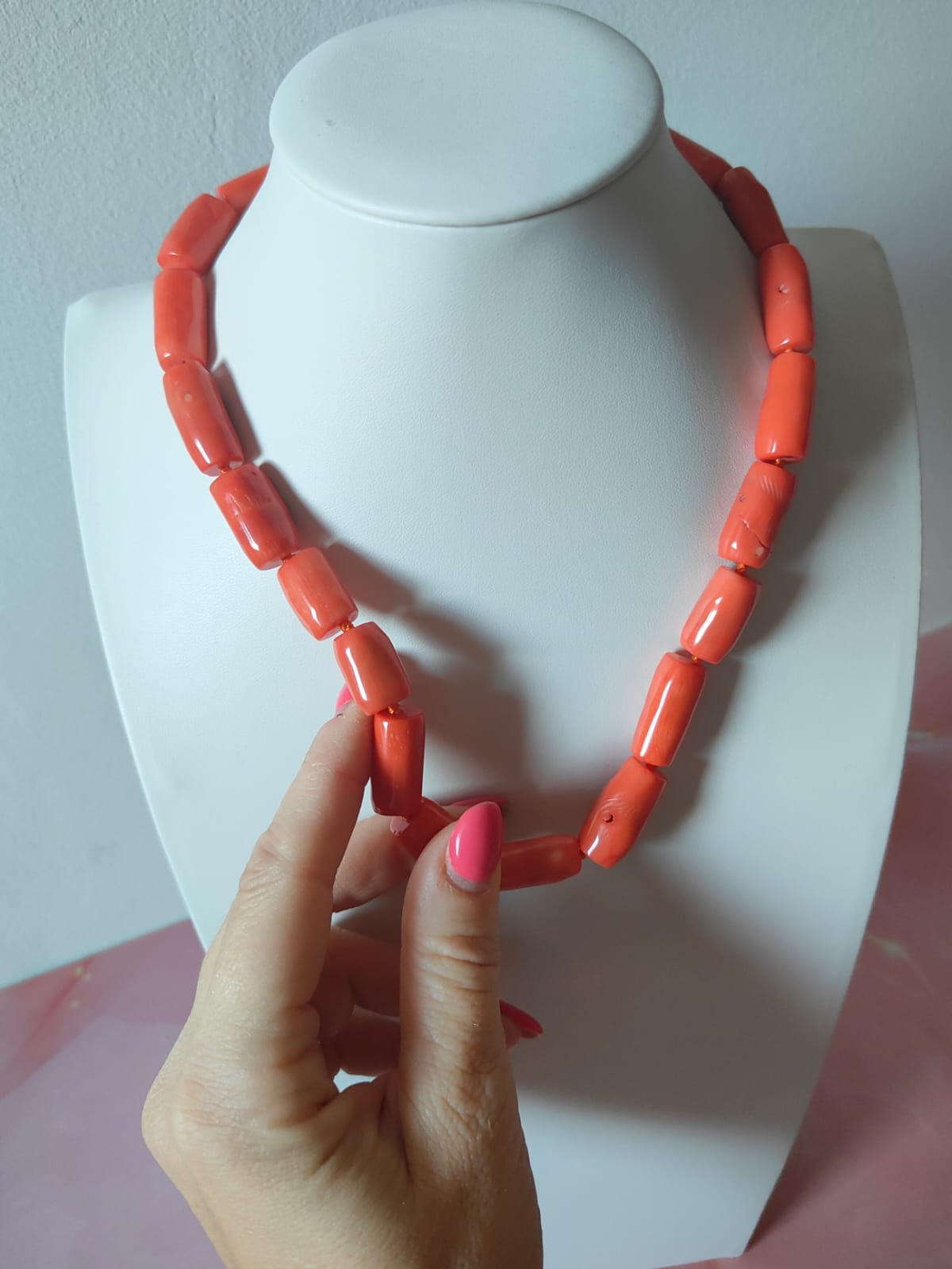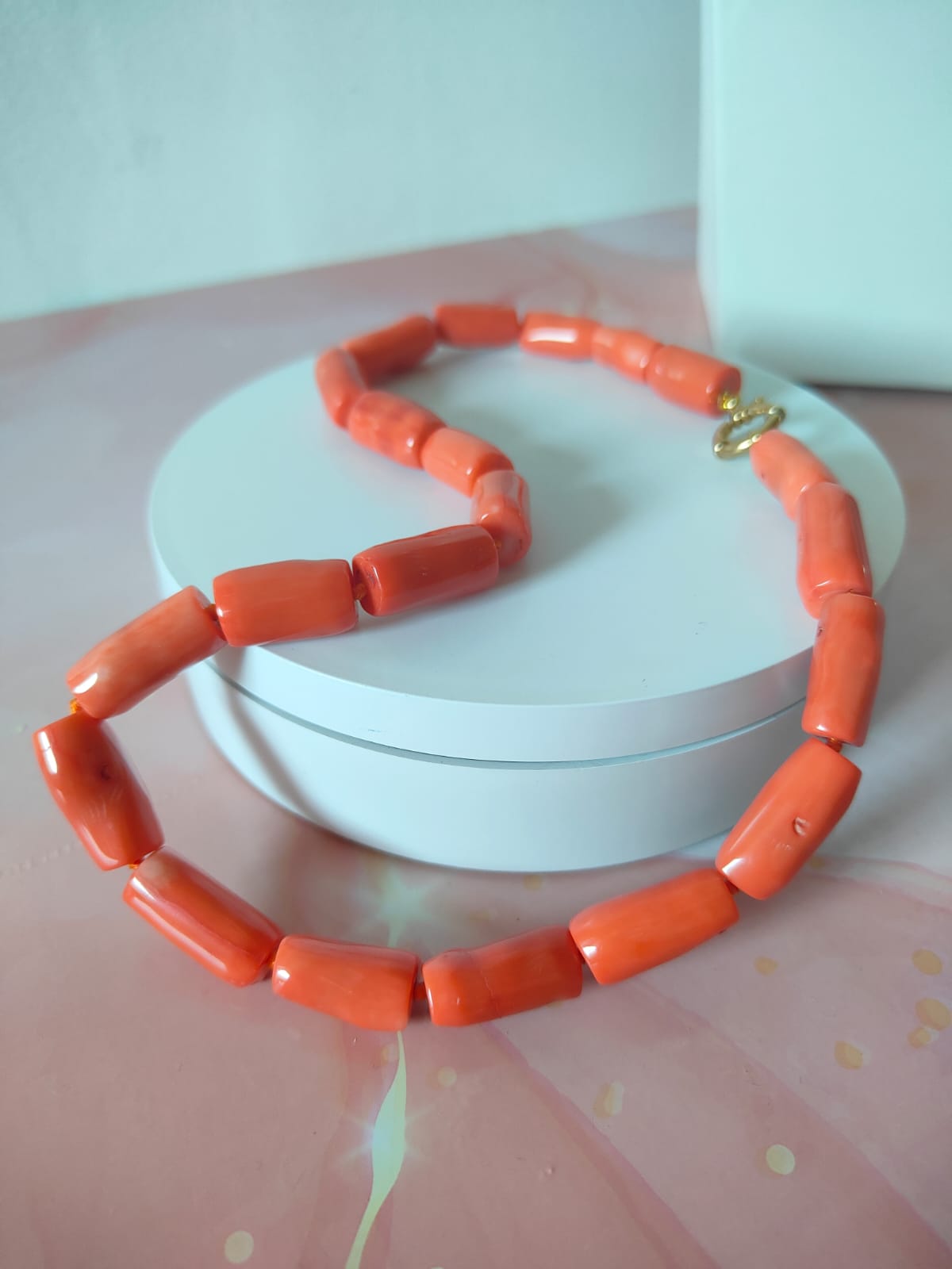 Il girocollo corallo bamboo è un gioiello dal fascino mediterraneo che esprime forza e raffinatezza. I suoi elementi in corallo bamboo, dalla tipica tonalità rosso-arancio brillante, donano al design un carattere deciso e vibrante, ideale per chi ama indossare accessori che non passano inosservati. La superficie lucida dei cilindri di corallo riflette la luce con naturale eleganza, rendendo questo girocollo un dettaglio prezioso in ogni occasione.