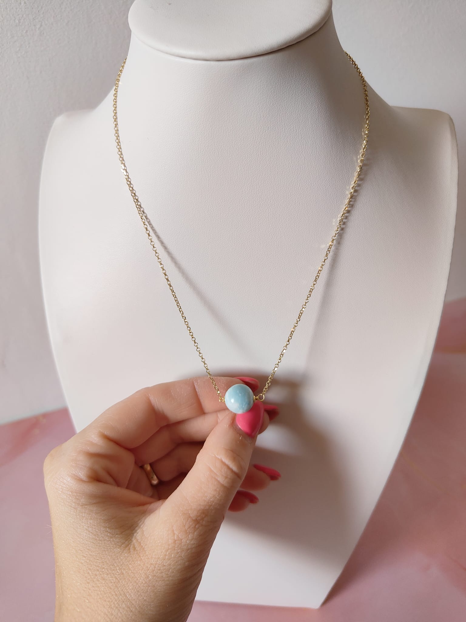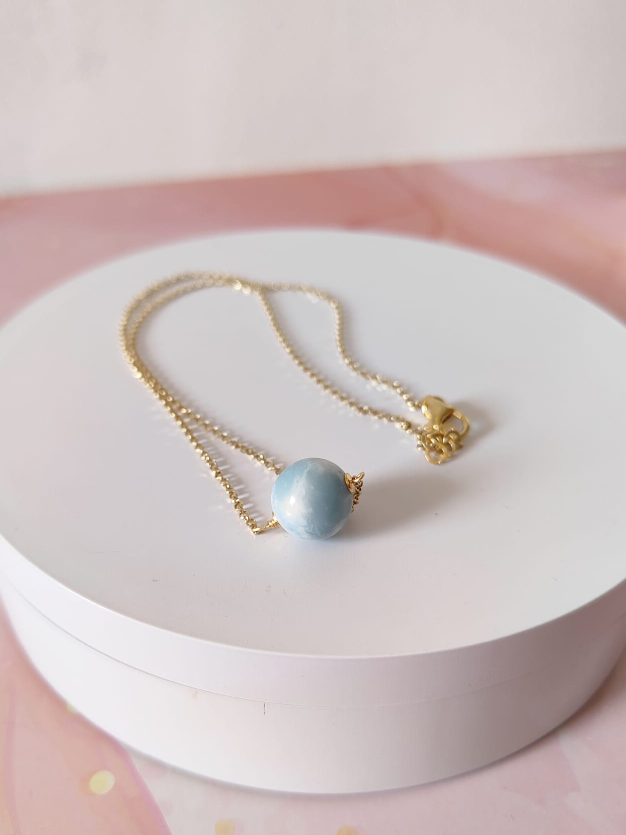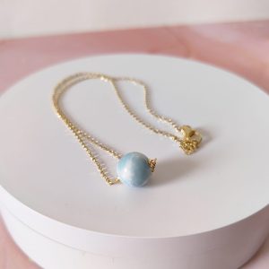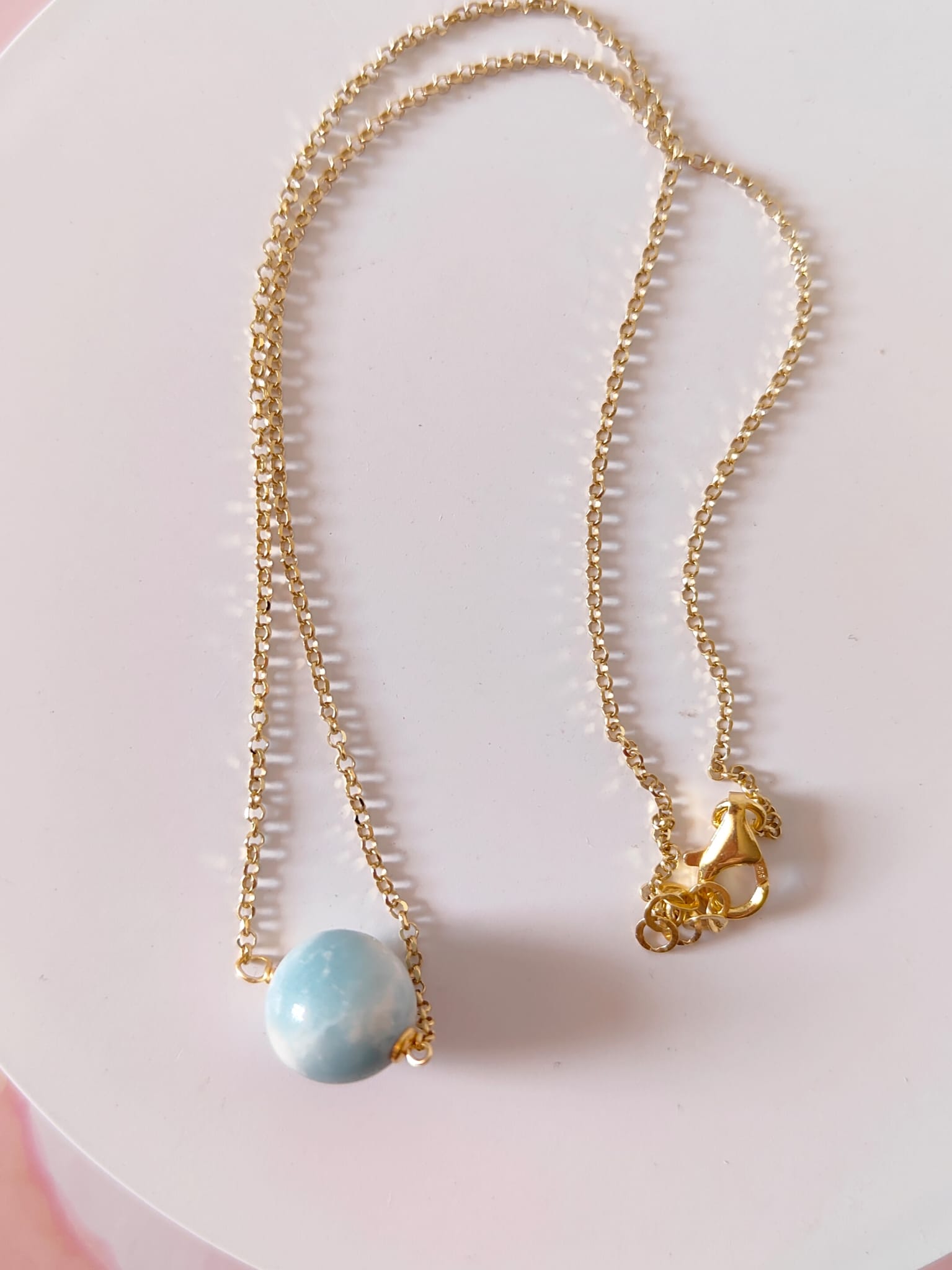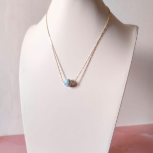 La catena rolò diamantata in argento 925 placcato oro è un dettaglio che dona luminosità e resistenza. Ogni piccolo anellino è lavorato per creare riflessi brillanti che valorizzano la pietra centrale. L’unione tra l’oro e l’azzurro del larimar crea un contrasto elegante e delicato, ideale per uno stile contemporaneo e senza tempo.