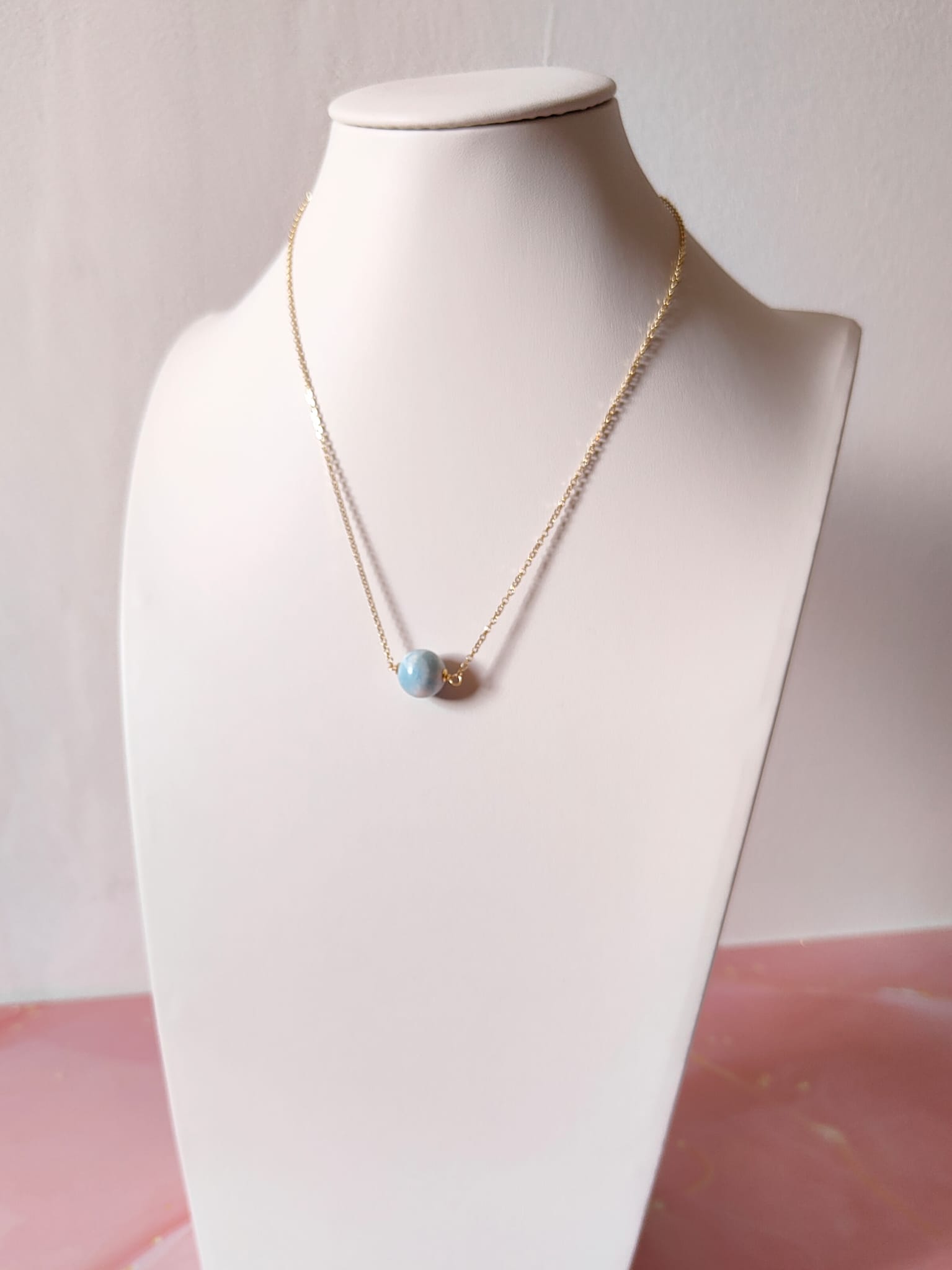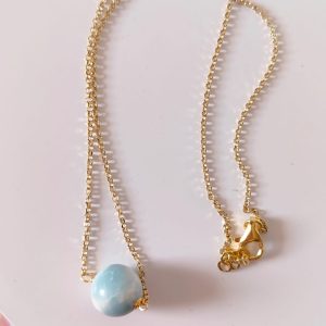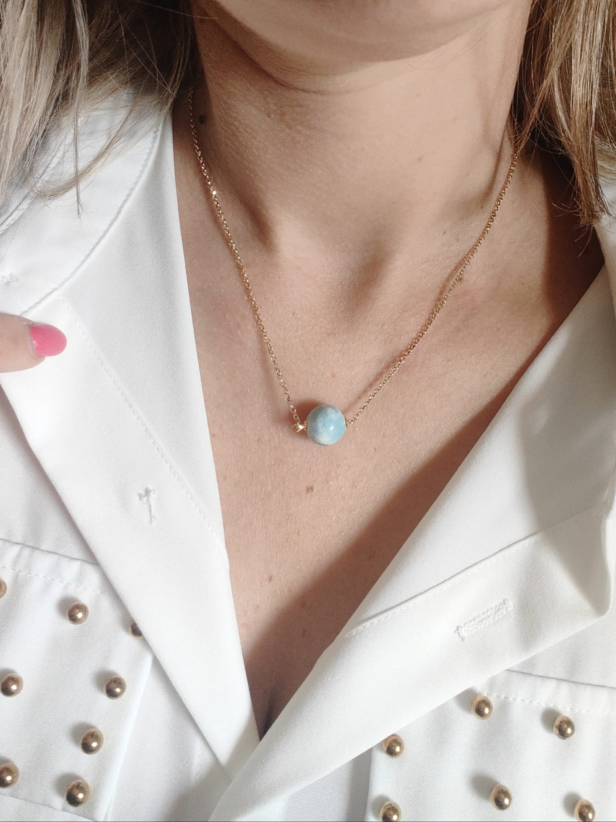 Il larimar è una pietra rara e affascinante, proveniente dai Caraibi e nota per le sue sfumature azzurre che ricordano l’acqua cristallina del mare. Considerata una gemma legata alla serenità, alla calma interiore e all’energia positiva, il larimar rende ogni gioiello non solo elegante, ma anche portatore di un significato profondo. Questo girocollo larimar è quindi perfetto sia per chi cerca un accessorio raffinato, sia per chi desidera indossare un simbolo di armonia naturale.