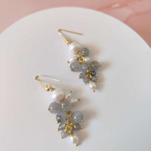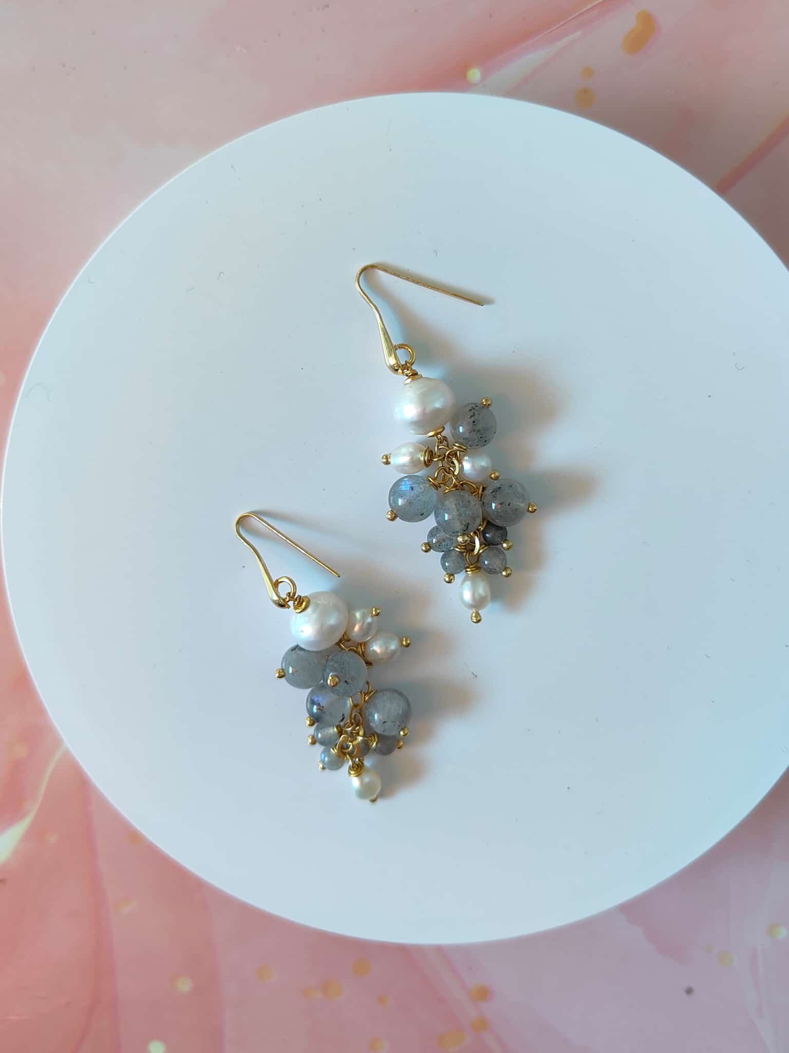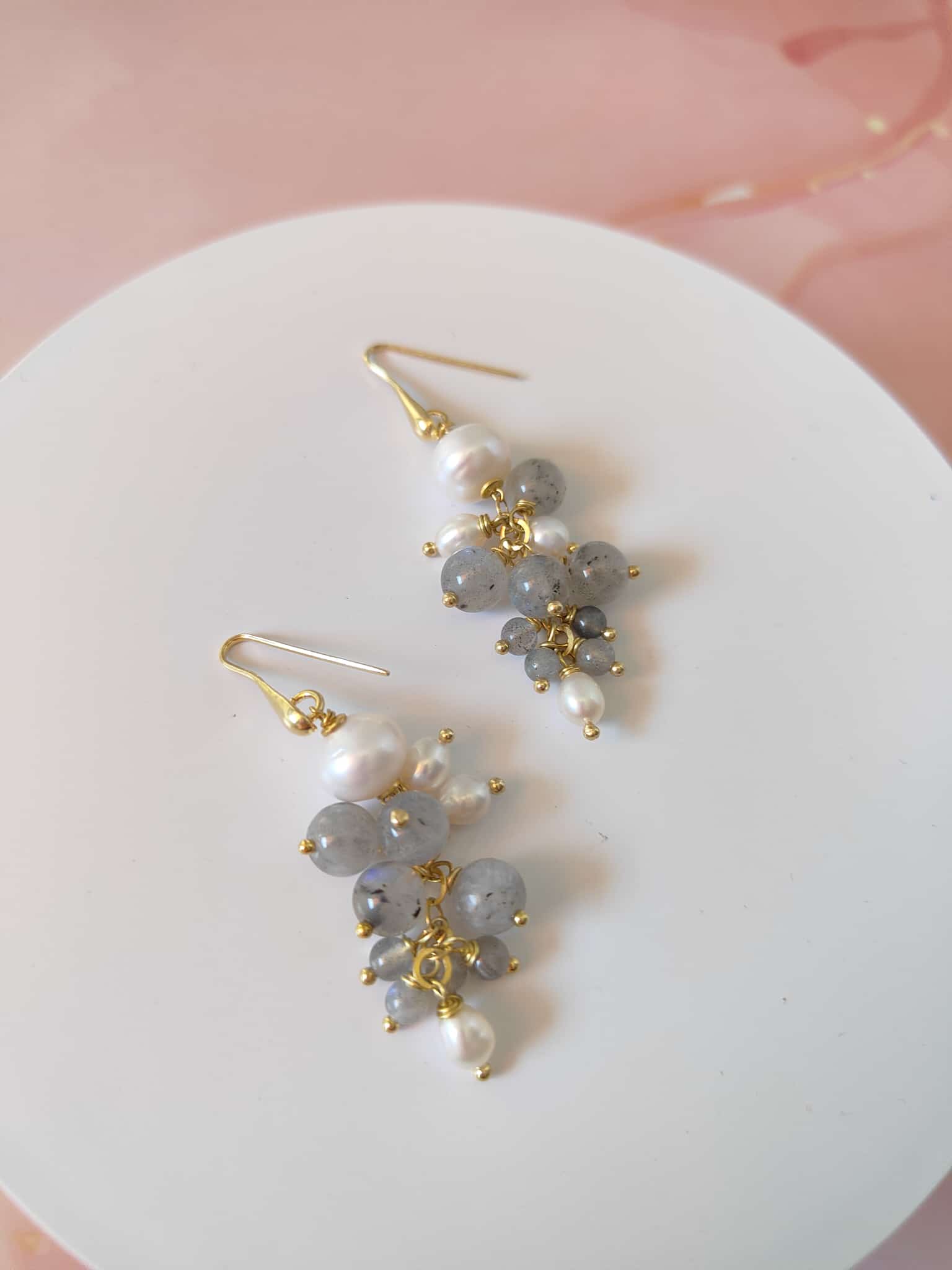 Orecchini coordinati in labradorite e perle