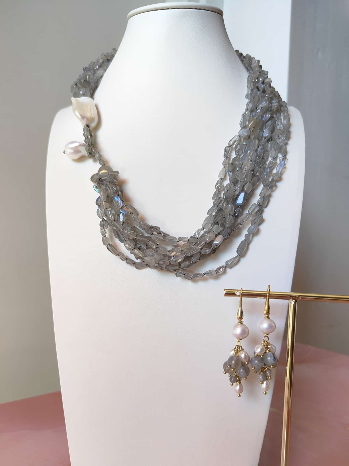 Eleganza naturale di labradorite e perle