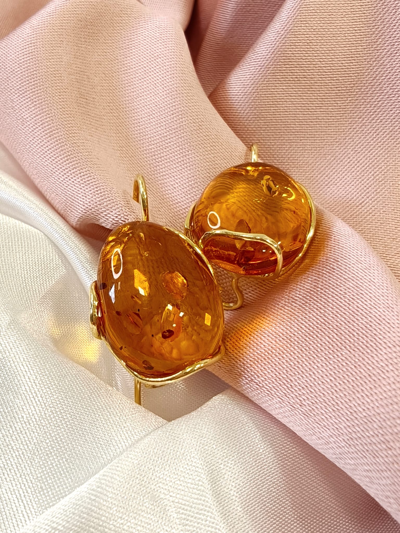 Questi orecchini sono un pezzo unico, fedele alle immagini: l’esemplare mostrato è esattamente quello che verrà spedito. Le inclusioni, le leggere variazioni cromatiche e le irregolarità dell’ambra non sono da considerarsi difetti, ma elementi che raccontano la storia naturale della pietra e il valore della lavorazione artigianale.