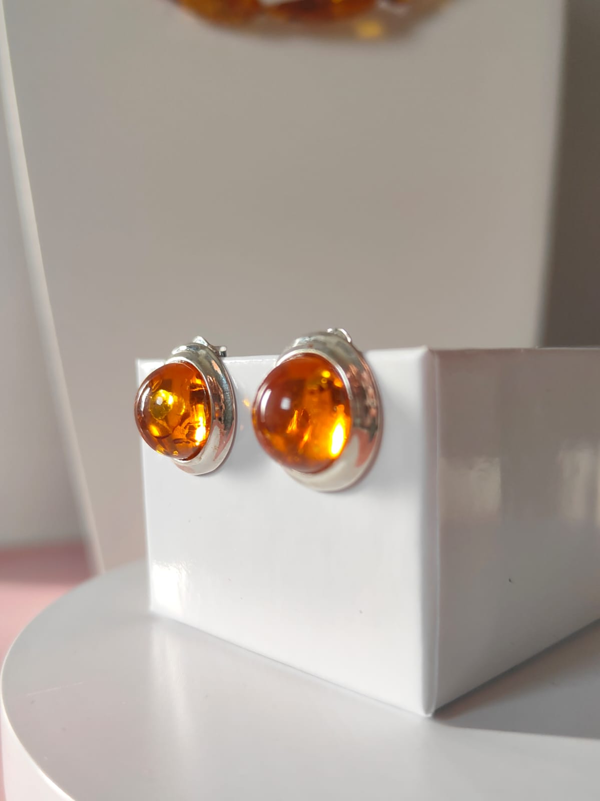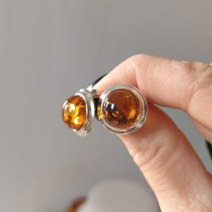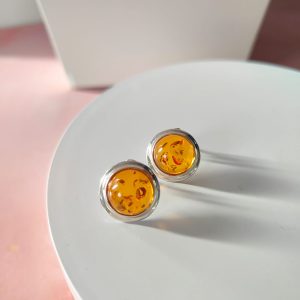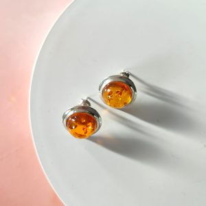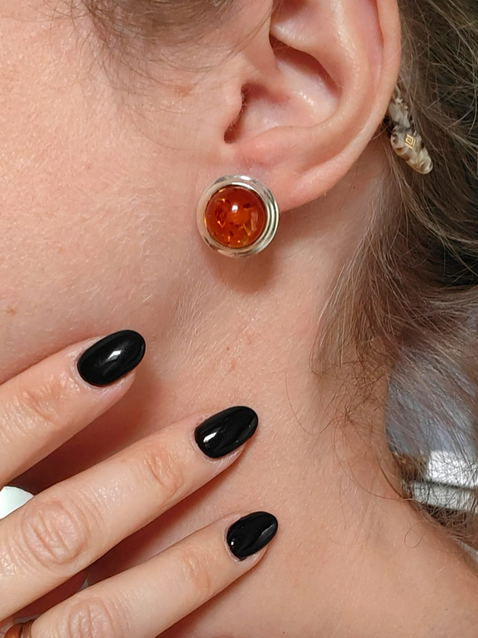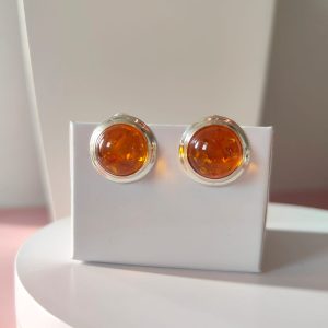 La luce calda e intensa dell’ambra baltica naturale trova la sua massima espressione in questi orecchini ambra da lobo, una creazione artigianale che unisce eleganza senza tempo e materiali di grande qualità. Il design è essenziale ma ricco di carattere: due cabochon rotondi in ambra baltica racchiusi in una montatura in argento 925, lavorata in modo da valorizzare la trasparenza e le sfumature uniche della pietra. Ogni orecchino cattura la luce e la riflette con piccoli bagliori interni, grazie alle inclusioni naturali che rendono l’ambra un materiale vivo, caldo e affascinante.