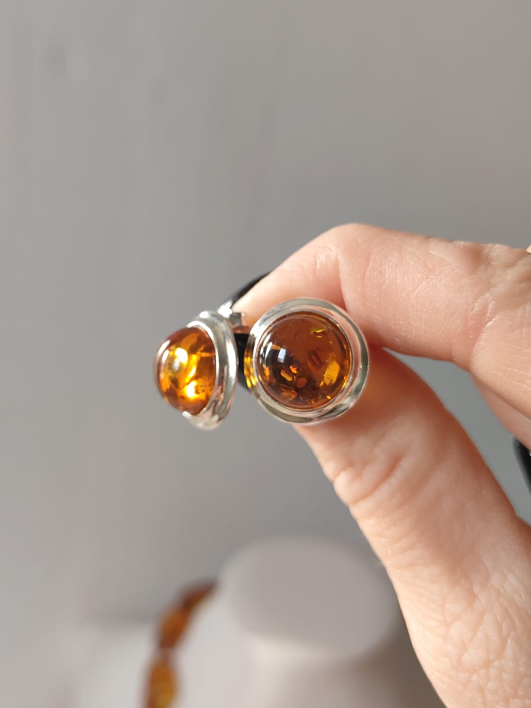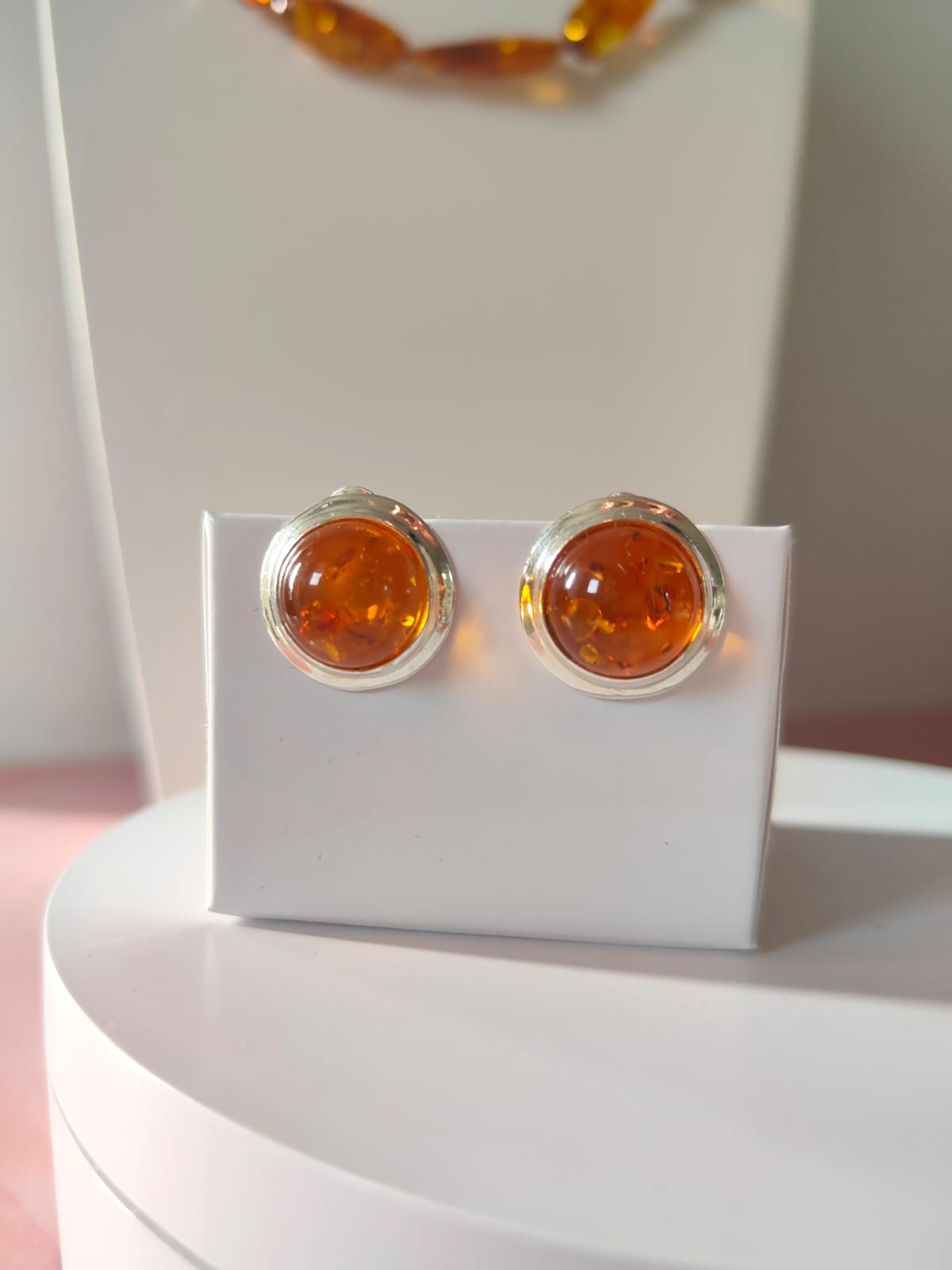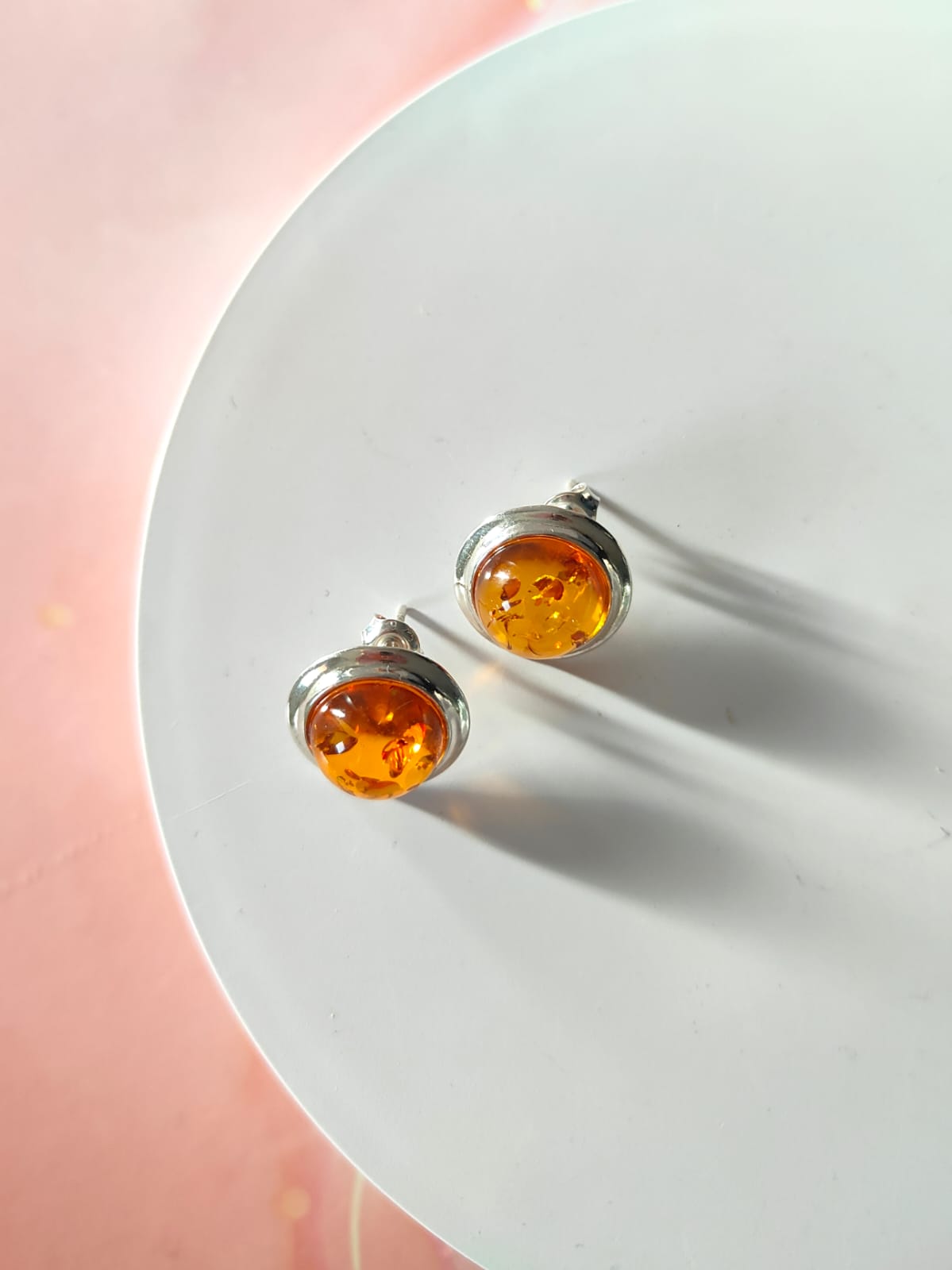 La luce calda e intensa dell’ambra baltica naturale trova la sua massima espressione in questi orecchini ambra da lobo, una creazione artigianale che unisce eleganza senza tempo e materiali di grande qualità. Il design è essenziale ma ricco di carattere: due cabochon rotondi in ambra baltica racchiusi in una montatura in argento 925, lavorata in modo da valorizzare la trasparenza e le sfumature uniche della pietra. Ogni orecchino cattura la luce e la riflette con piccoli bagliori interni, grazie alle inclusioni naturali che rendono l’ambra un materiale vivo, caldo e affascinante.