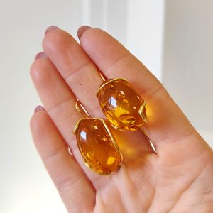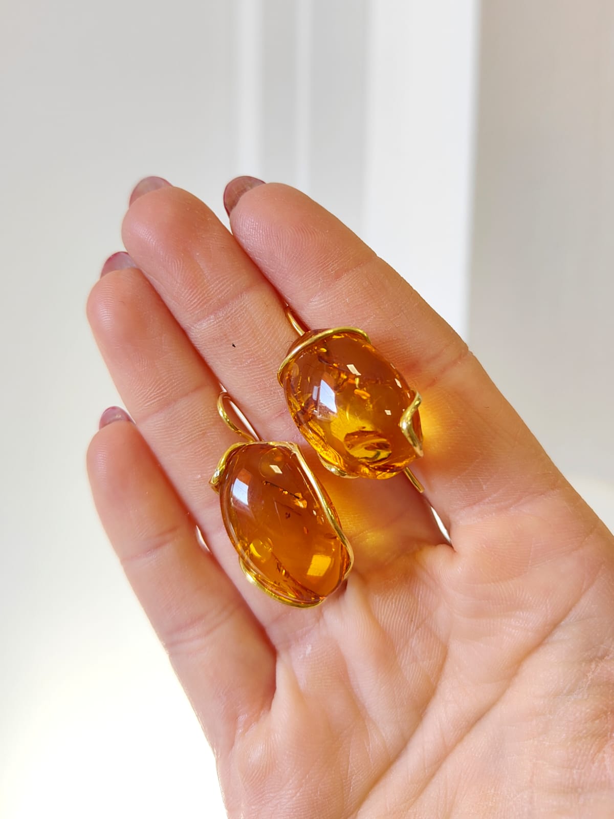 Gli orecchini ambra dorata sono un invito a indossare la luce. Realizzati con autentica ambra baltica naturale, catturano riflessi caldi e profondi che sembrano custodire i segreti del tempo. Ogni pietra presenta inclusioni organiche tipiche dell’ambra, dettagli che rendono il gioiello irripetibile e ricco di storia. La montatura in argento 925 placcato oro è stata modellata artigianalmente per seguire la forma irregolare della pietra, creando un abbraccio elegante che non ne copre la bellezza ma anzi la valorizza.