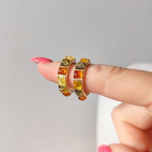 Il dettaglio più affascinante è dato dalle tre varianti di ambra utilizzate: la verde, misteriosa e intensa; la cognac, dal colore caldo e profondo; e la gialla, solare e brillante. Insieme, creano un equilibrio cromatico che richiama i colori della natura, del sole e della terra, trasformando i gioielli in piccoli frammenti di luce.