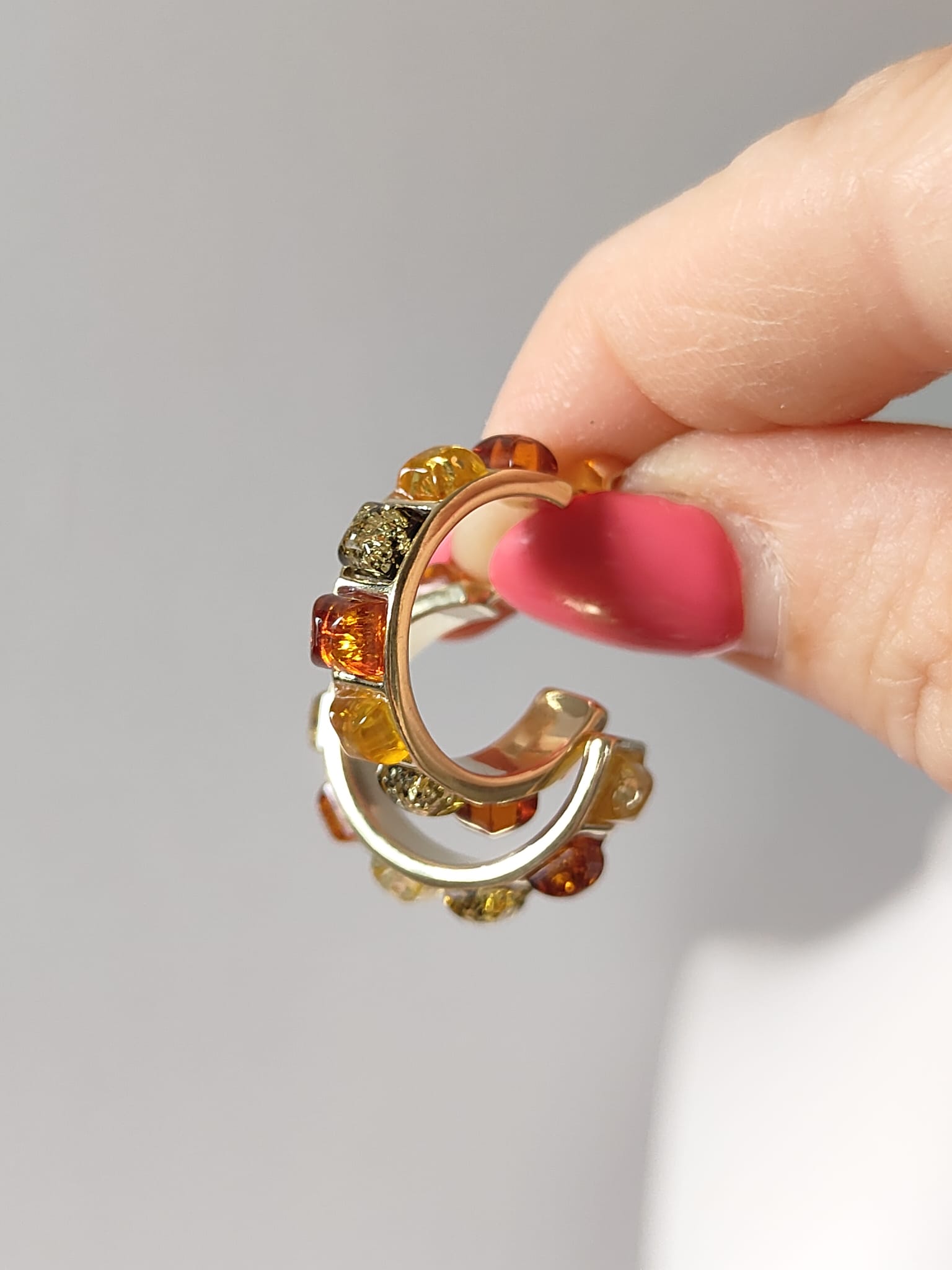 Gli orecchini ambra multicolore sono un gioiello di rara eleganza, pensato per chi cerca un accessorio esclusivo capace di fondere naturalezza e raffinatezza. Realizzati in argento 925 placcato oro, presentano una struttura a cerchio che dona armonia al design e valorizza la luce delle pietre incastonate. Questo esemplare unico porta con sé tutta la magia e il fascino dell’ambra, una gemma che da secoli incanta per i suoi riflessi caldi e luminosi.