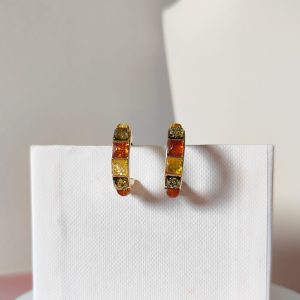 La placcatura in oro conferisce ulteriore pregio e fa risaltare i toni naturali dell’ambra, rendendo questi orecchini adatti sia alle occasioni speciali sia a un utilizzo quotidiano elegante. La chiusura a perno assicura stabilità e comfort, permettendo di indossarli con leggerezza e sicurezza.