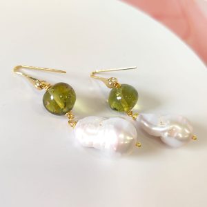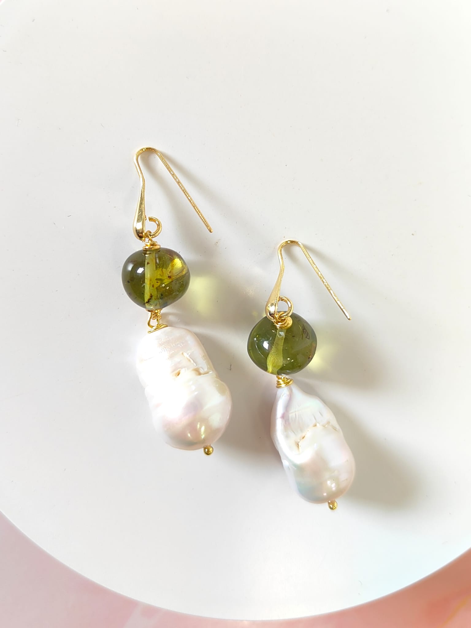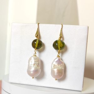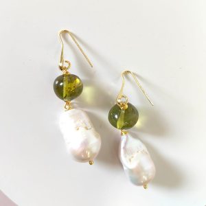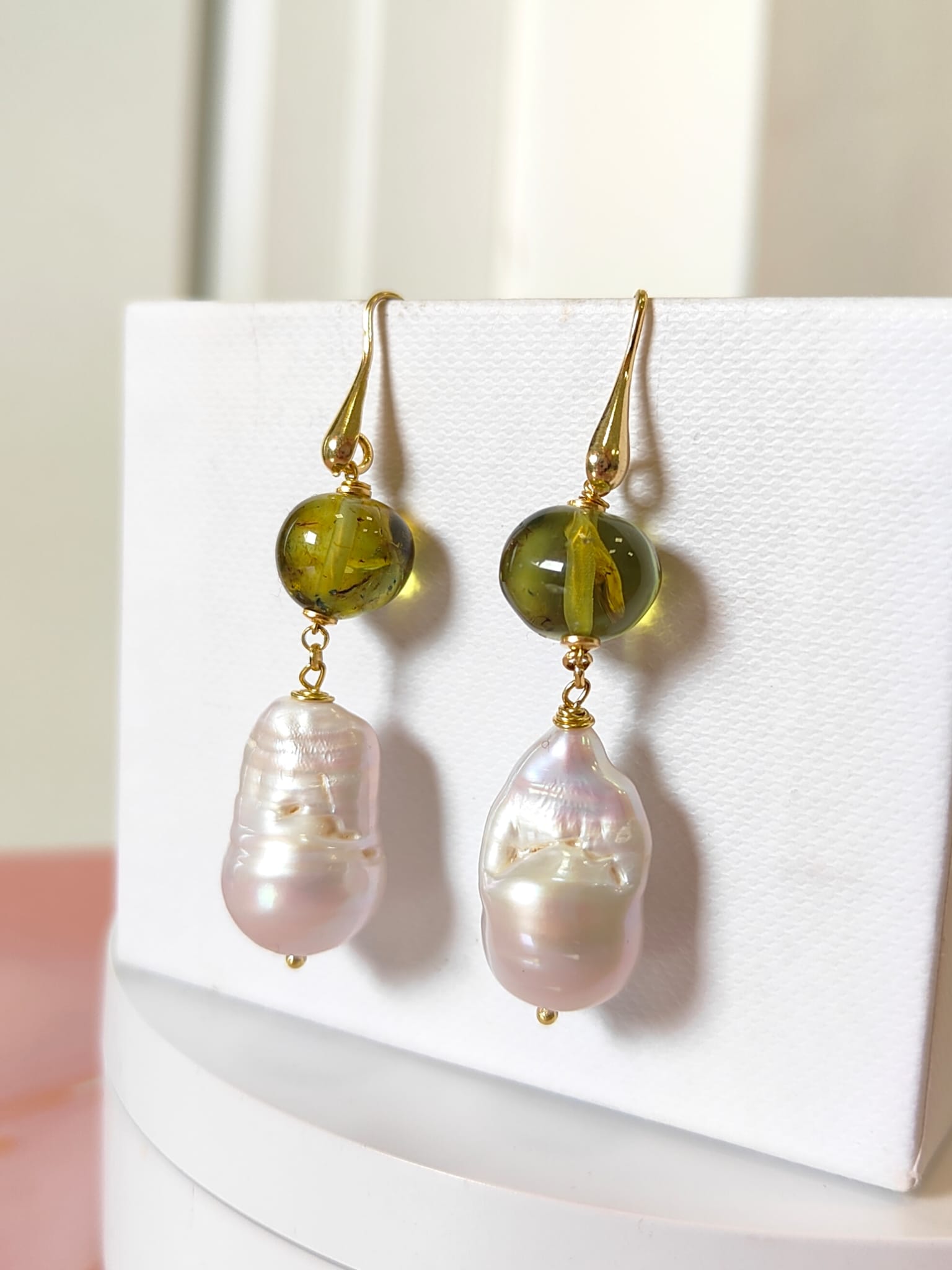 Questi orecchini ambra verde perla combinano la luce calda della perla barocca con la trasparenza magnetica dell’ambra verde, creando un gioiello dal fascino naturale e ricercato. La loro linea è delicata ma d’impatto, studiata per valorizzare ogni movimento e riflettere la luce con raffinatezza. Le perle barocche, selezionate singolarmente, mostrano le caratteristiche irregolarità tipiche delle perle naturali, offrendo un’eleganza organica e autentica che rende ogni pezzo unico nel suo genere. L’ambra verde, intensa e luminosa, aggiunge profondità cromatica e un tocco di carattere, creando un contrasto armonioso con la morbidezza della perla.