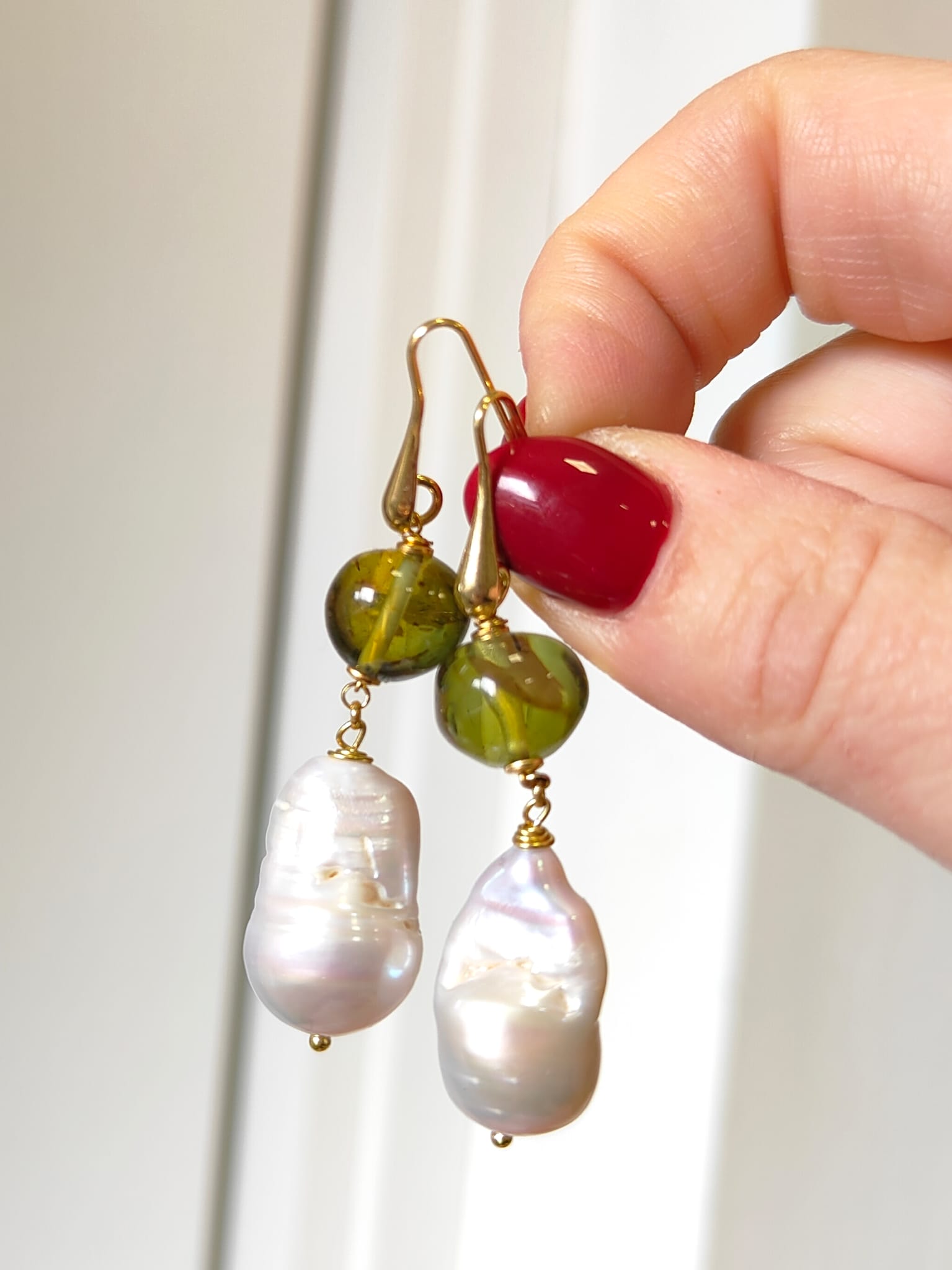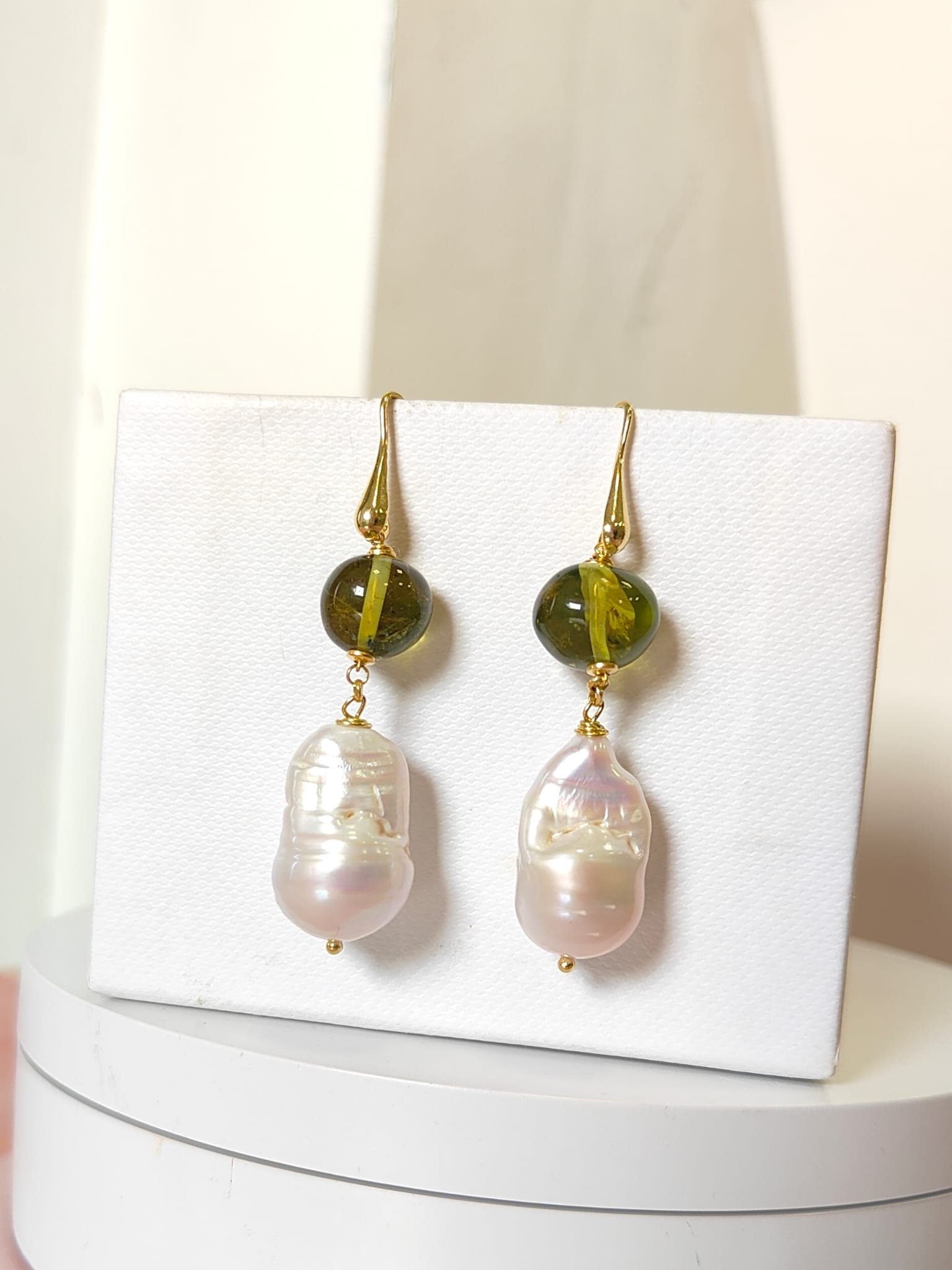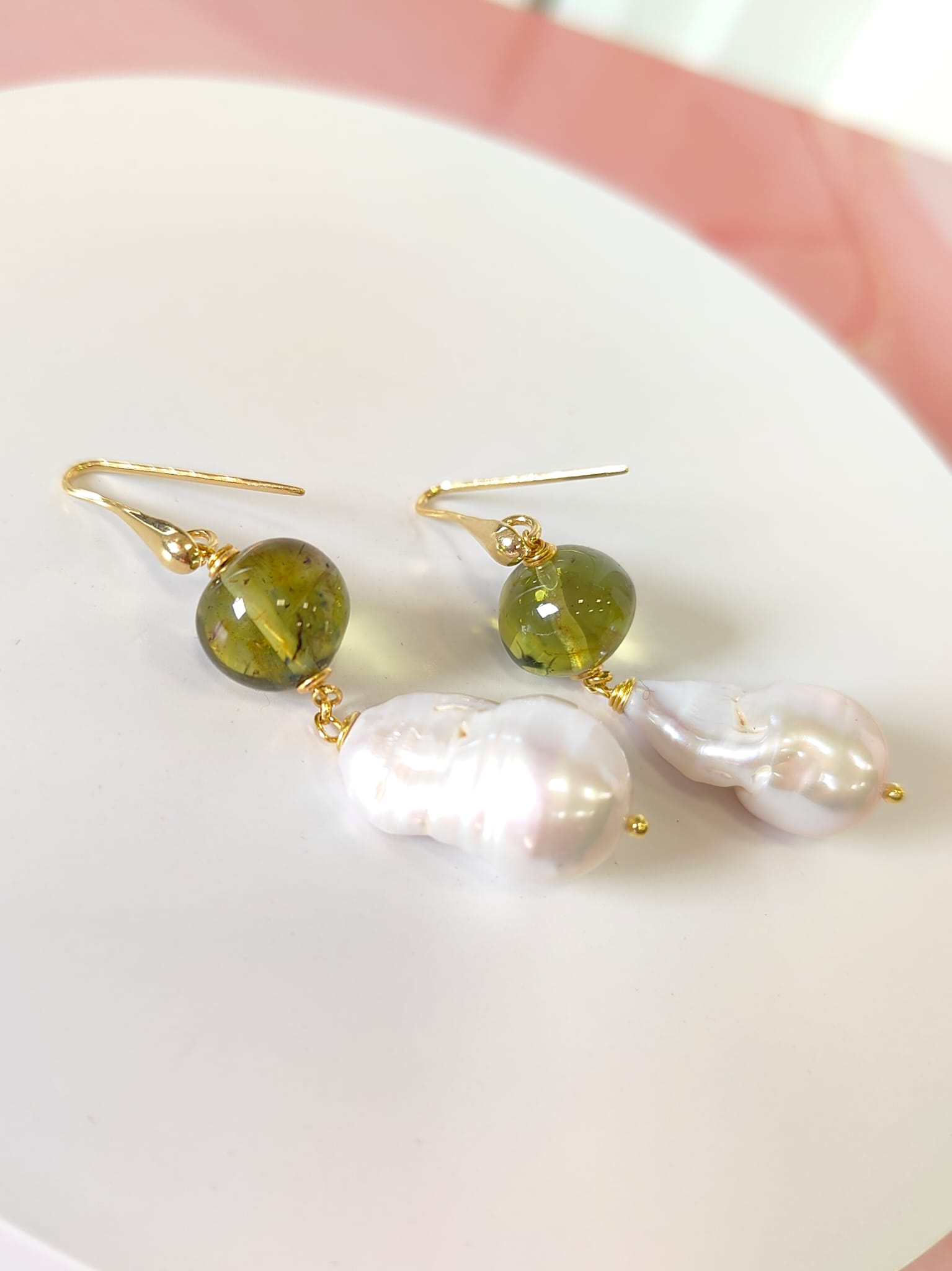 Questi orecchini ambra verde perla combinano la luce calda della perla barocca con la trasparenza magnetica dell’ambra verde, creando un gioiello dal fascino naturale e ricercato. La loro linea è delicata ma d’impatto, studiata per valorizzare ogni movimento e riflettere la luce con raffinatezza. Le perle barocche, selezionate singolarmente, mostrano le caratteristiche irregolarità tipiche delle perle naturali, offrendo un’eleganza organica e autentica che rende ogni pezzo unico nel suo genere. L’ambra verde, intensa e luminosa, aggiunge profondità cromatica e un tocco di carattere, creando un contrasto armonioso con la morbidezza della perla.
