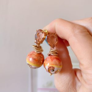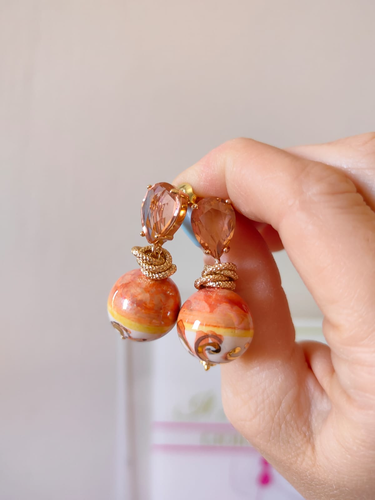 Orecchini arancio ceramica dallo stile solare e raffinato, perfetti per chi ama i colori caldi e il fascino dell’artigianato siciliano. Una combinazione elegante di luce, materia e tradizione che dona al viso un tocco radioso e vivace.