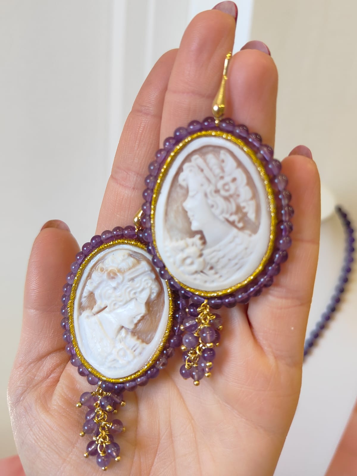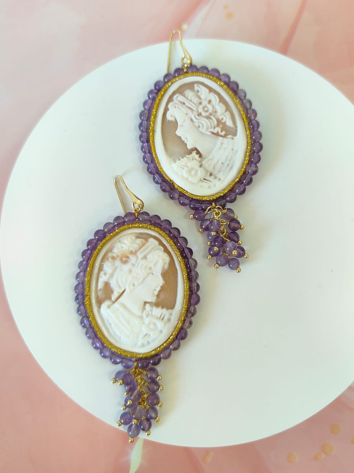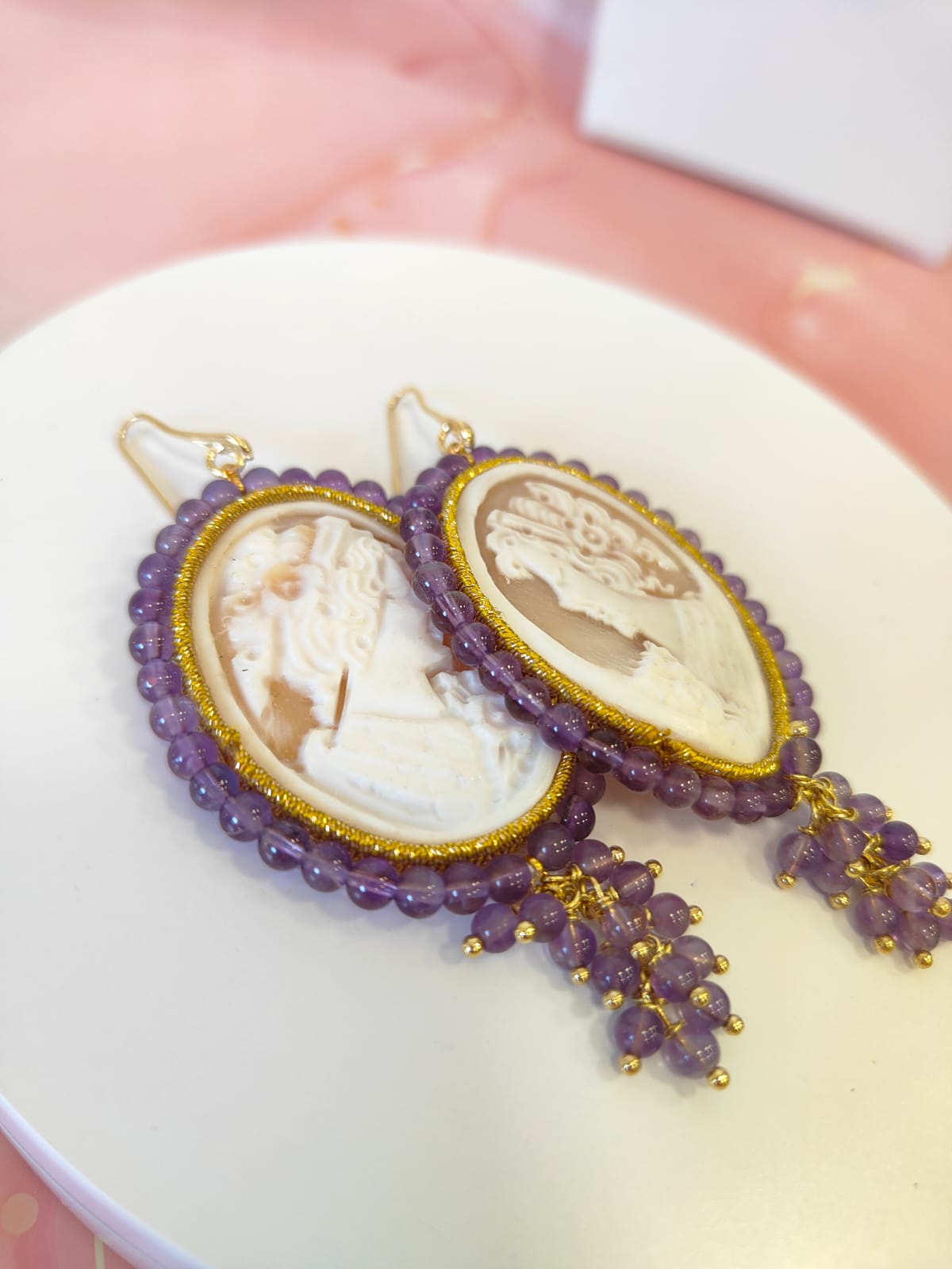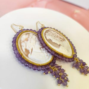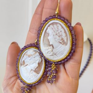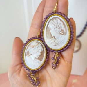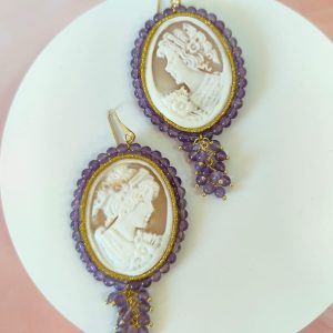 Orecchini Cammeo E Ametista Incisi A Mano