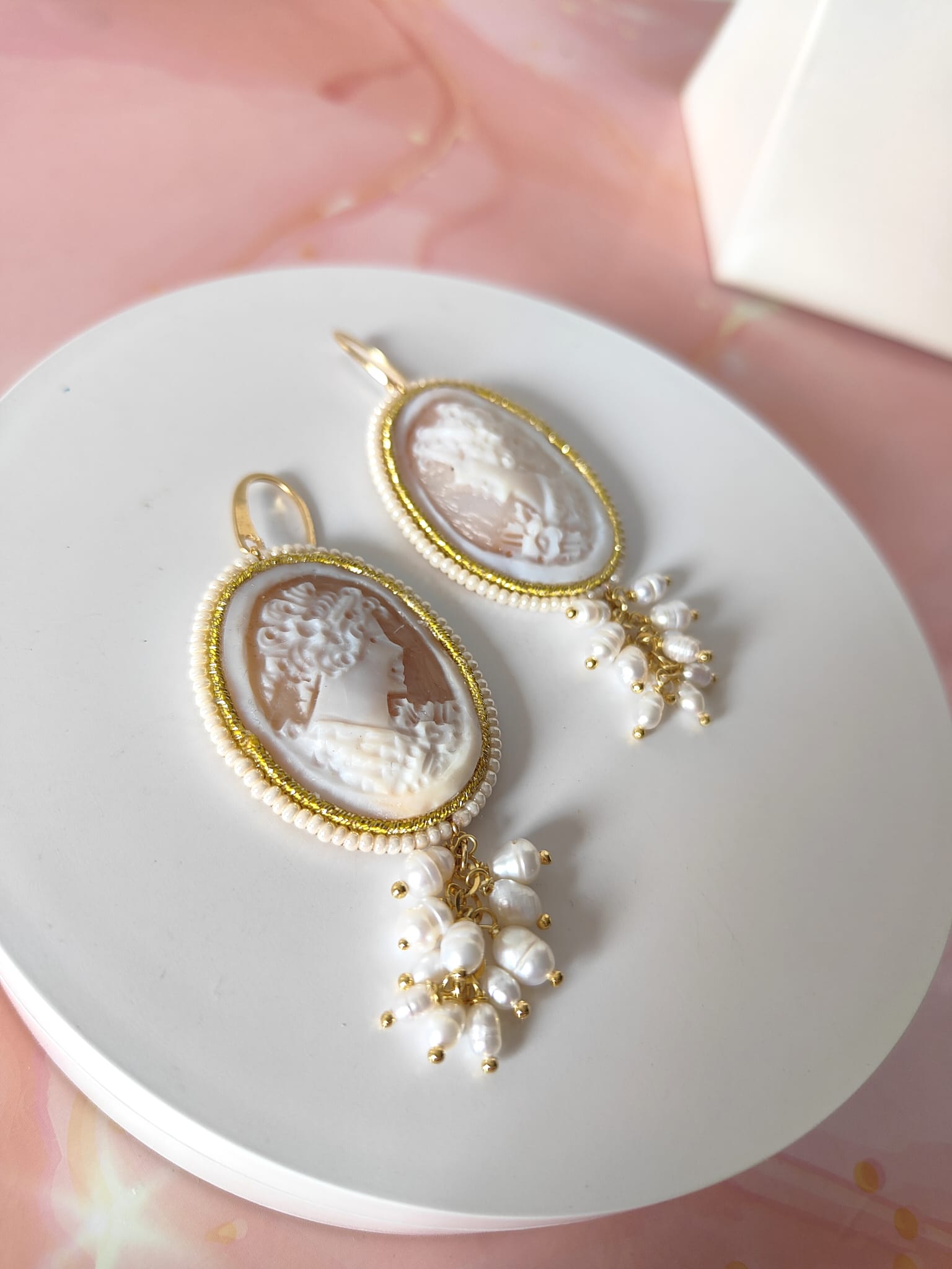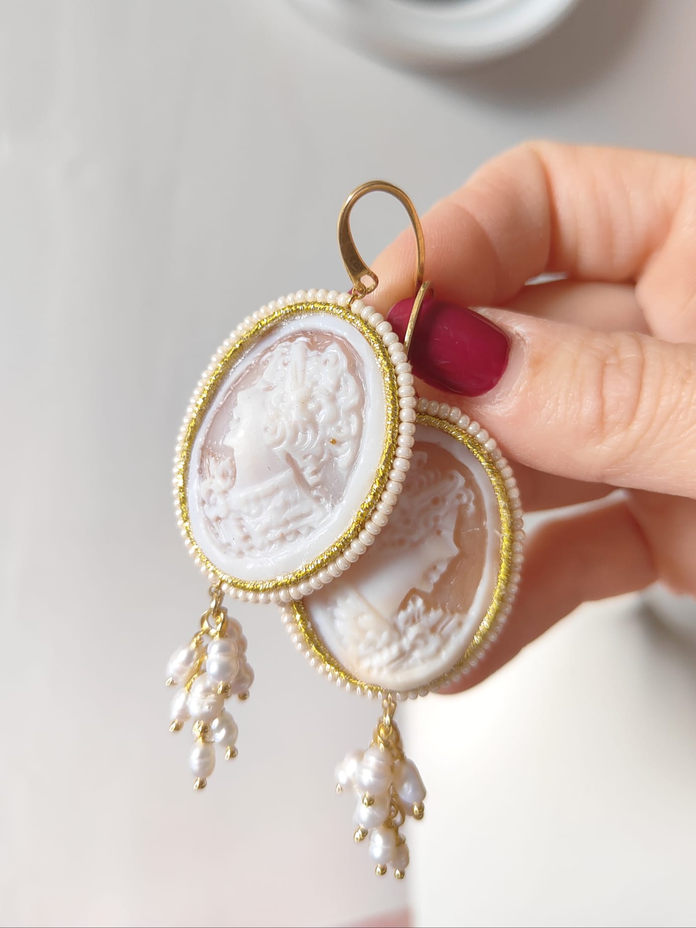 Ogni coppia di orecchini cammeo e perle barocche nasce da mani esperte, in un processo totalmente artigianale. Dalla selezione delle perle all’incisione del cammeo, ogni passaggio è curato nei minimi dettagli per offrire un gioiello che incarna eleganza e autenticità.
