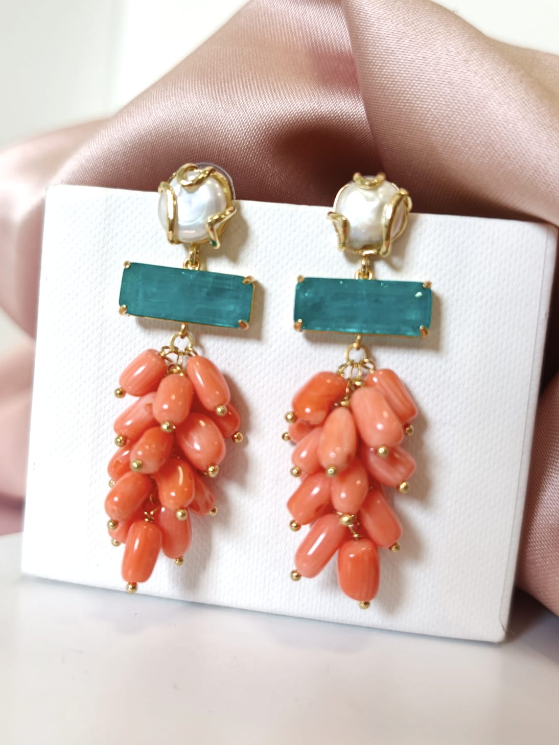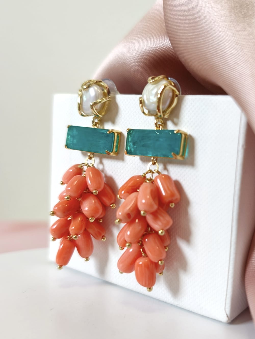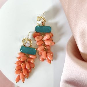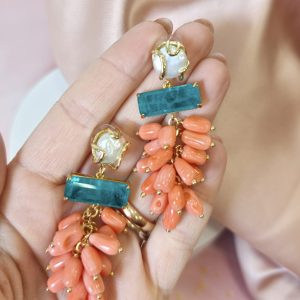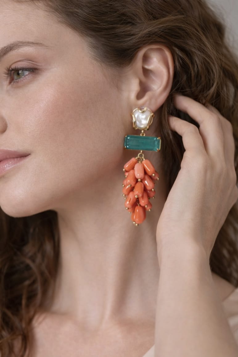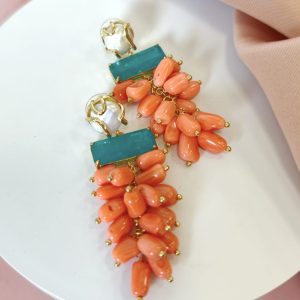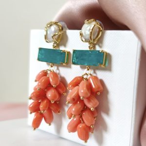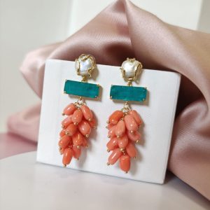 Orecchini Corallo Bamboo Eleganti Con Perla E Quarzo