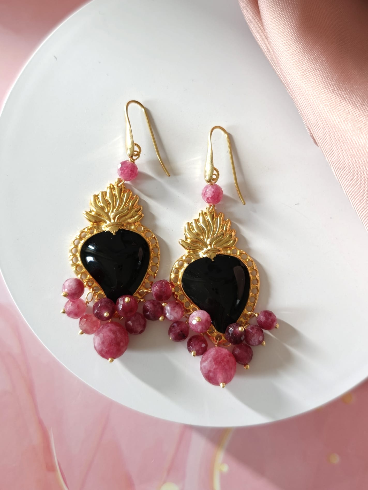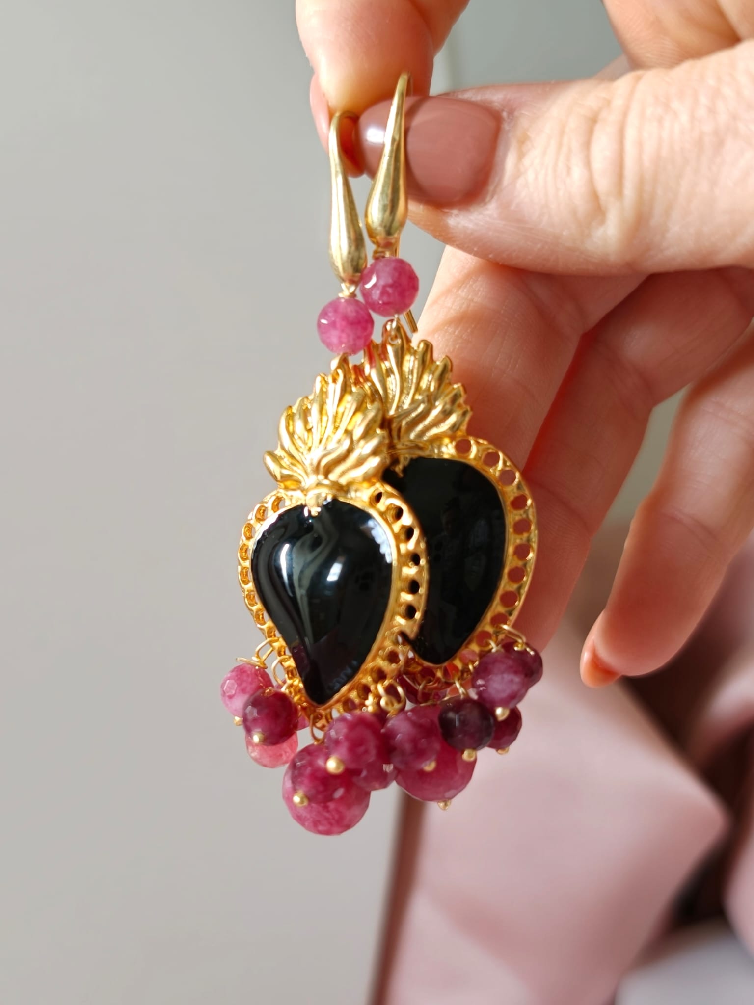 Gli orecchini cuore sacro e tormalina nascono come un gioiello dal forte valore simbolico, capace di unire tradizione iconografica e sensibilità contemporanea. Questo pezzo unico, fedele alle immagini, è pensato per chi desidera indossare un accessorio carico di significato, elegante ma deciso, luminoso ma profondo.