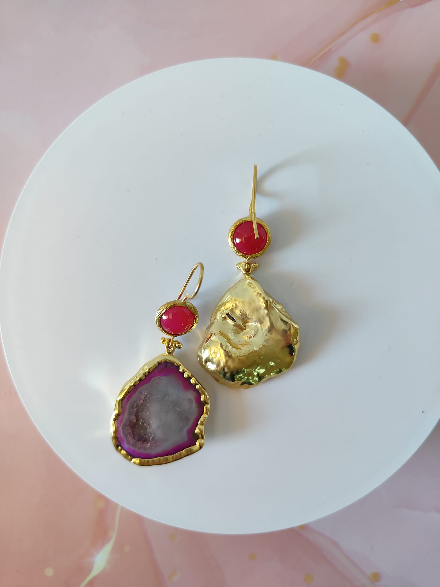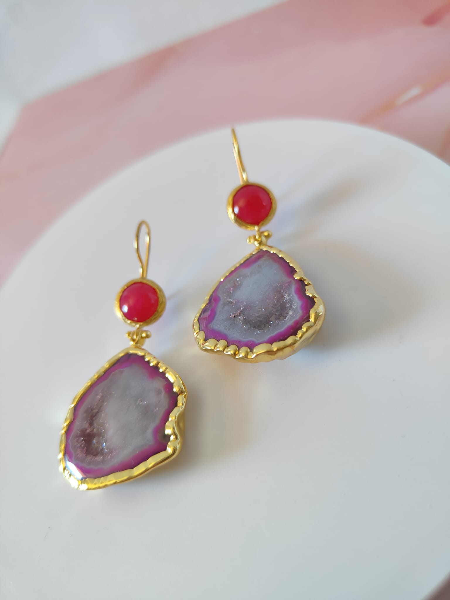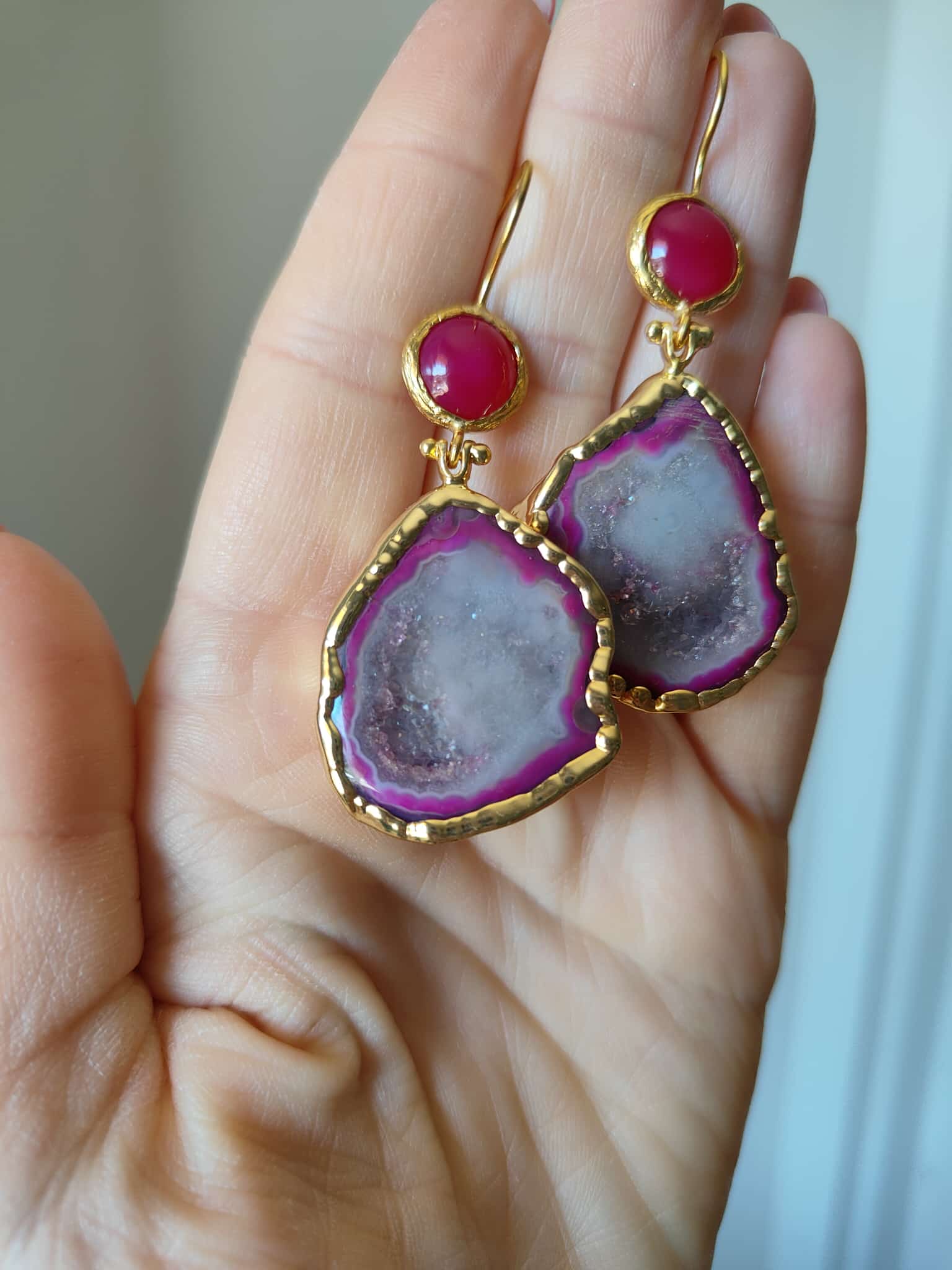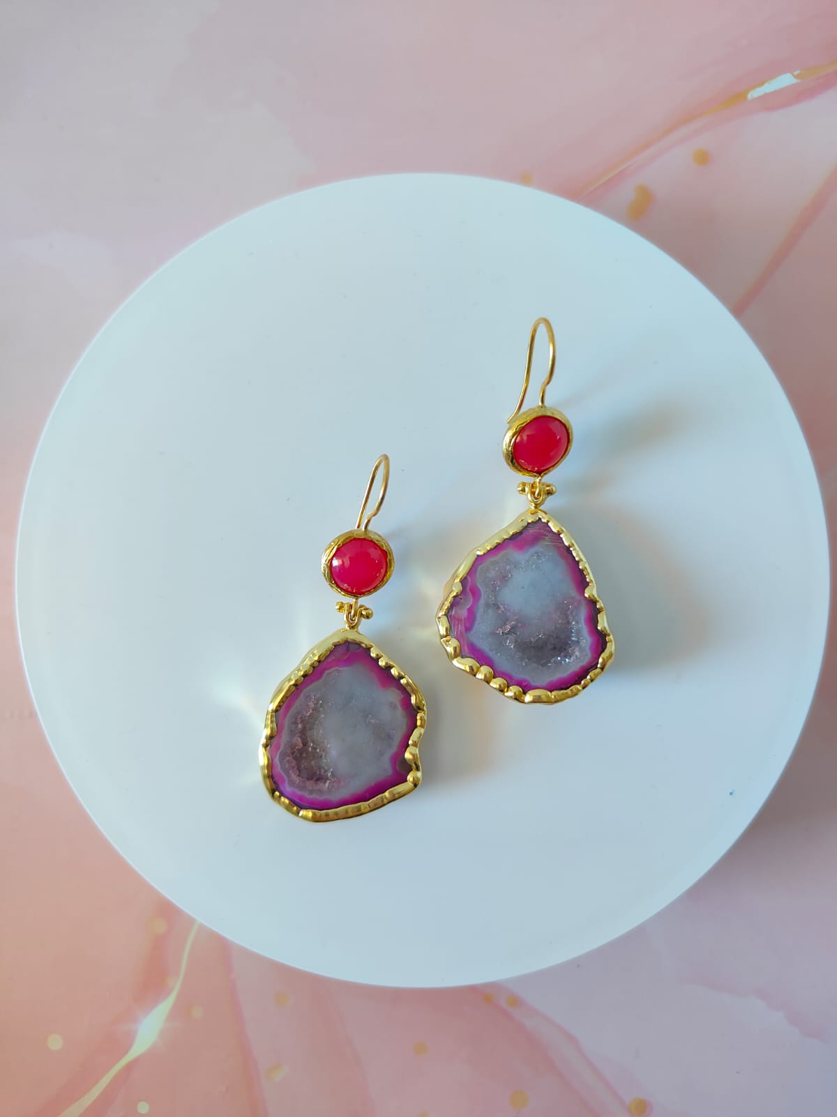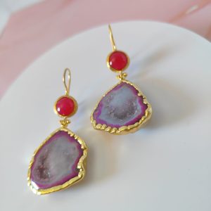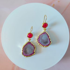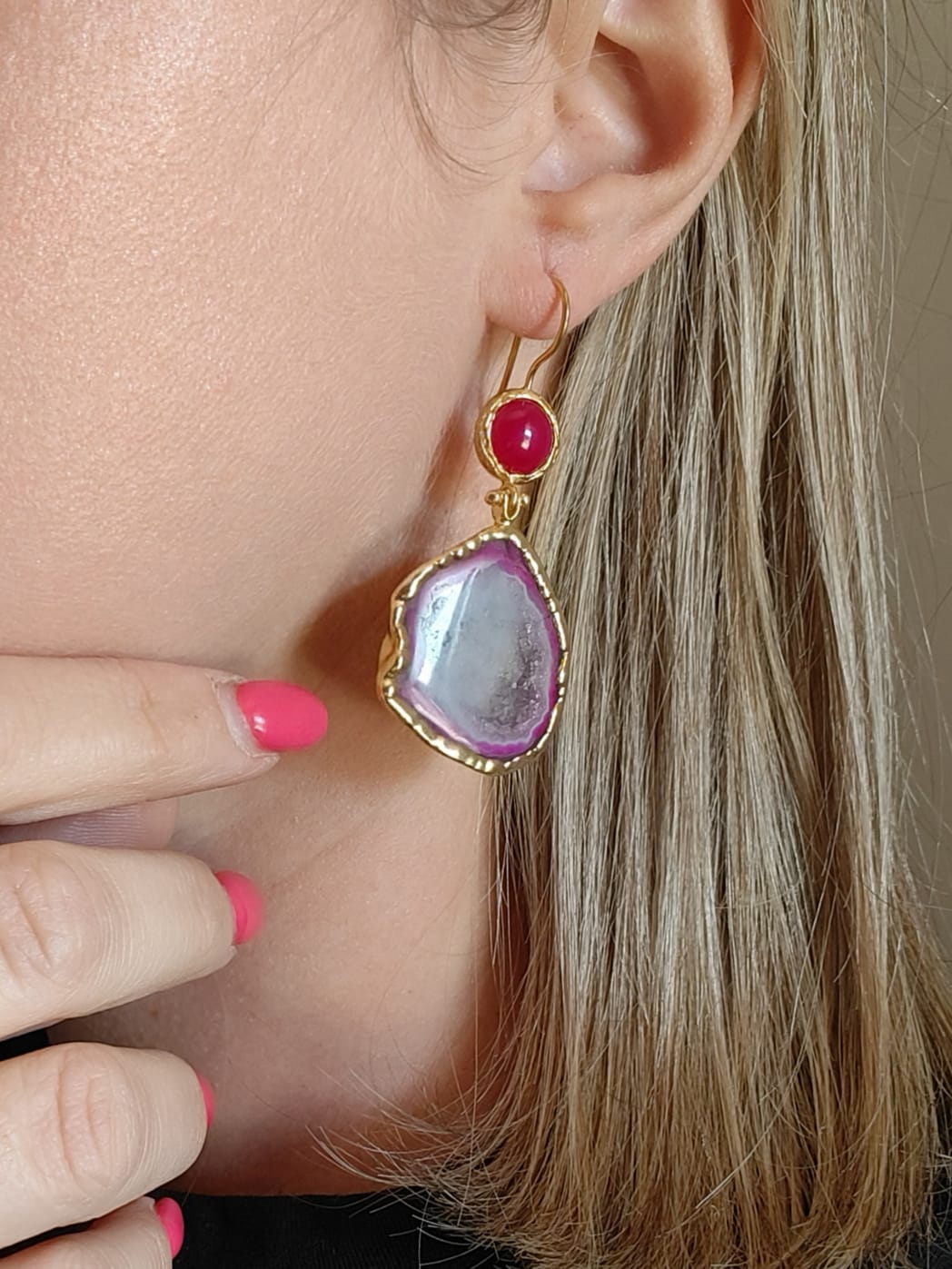 Caratteristiche tecniche orecchini drusa e agata fucsia: