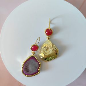 Gli orecchini drusa e agata fucsia rappresentano l’incontro perfetto tra natura e arte. Realizzati interamente a mano, sono un pezzo unico che cattura l’essenza della femminilità attraverso il contrasto di texture e colori. Ogni coppia racconta una storia irripetibile fatta di luce, movimento e armonia.