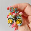 Il perno a farfalla in ottone dorato conferisce luminosità e stabilità, rendendo questi orecchini comodi da indossare ma anche preziosi nel dettaglio estetico. I fichi d’india in ceramica sono modellati e dipinti a mano, con frutti dai colori vivaci che richiamano i paesaggi assolati e autentici della Sicilia. Ogni pennellata è frutto di maestria artigianale, rendendo questo gioiello non solo un accessorio, ma una piccola opera d’arte.