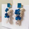 La composizione a grappolo crea un effetto scenografico ma comunque armonioso. Le perle rotonde e a goccia si alternano alle sfere di labradorite in diverse dimensioni, così gli orecchini risultano pieni e dinamici. Inoltre, la montatura in argento 925 placcato oro regala una luce calda che valorizza le pietre senza appesantire il design. Ogni elemento è fissato singolarmente, perciò i grappoli si muovono con grazia seguendo i lineamenti del viso.