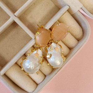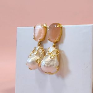 Il delicato rosa della pietra illumina il viso con dolcezza, mentre la perla barocca riflette la luce in modo unico e sempre diverso. Questa combinazione rende il gioiello estremamente versatile, perfetto sia per occasioni speciali sia per arricchire uno stile quotidiano con un dettaglio ricercato.