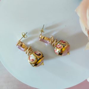 Gli orecchini rosa ceramica sono montati su un perno a farfalla dorato in ottone anallergico, sicuro e confortevole anche per pelli sensibili. Con una lunghezza di circa 4 cm, questi orecchini risultano leggeri e piacevoli da indossare tutto il giorno, ideali per cerimonie, serate romantiche o look estivi.
