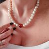 Le perle barocche, scelte per le loro forme organiche e irregolari, creano una texture visiva unica. Ogni perla riflette la luce in modo diverso, con sfumature madreperlacee che rendono la collana preziosa e sofisticata. L’asimmetria naturale delle perle è parte integrante del fascino del pezzo, contribuendo a un’estetica fluida e artistica.