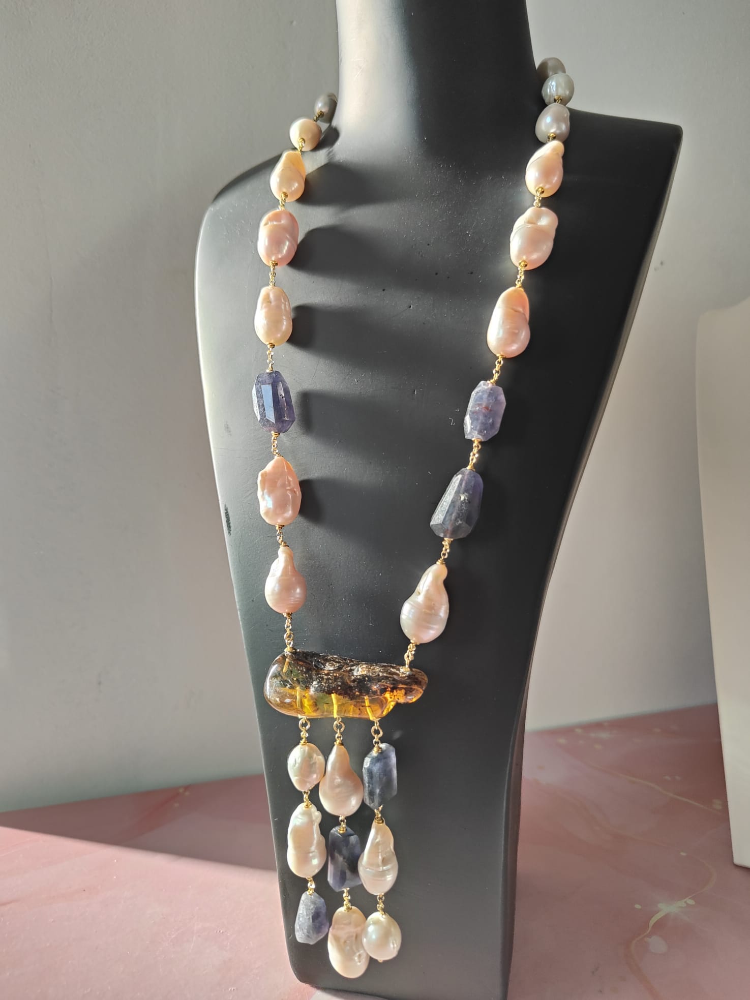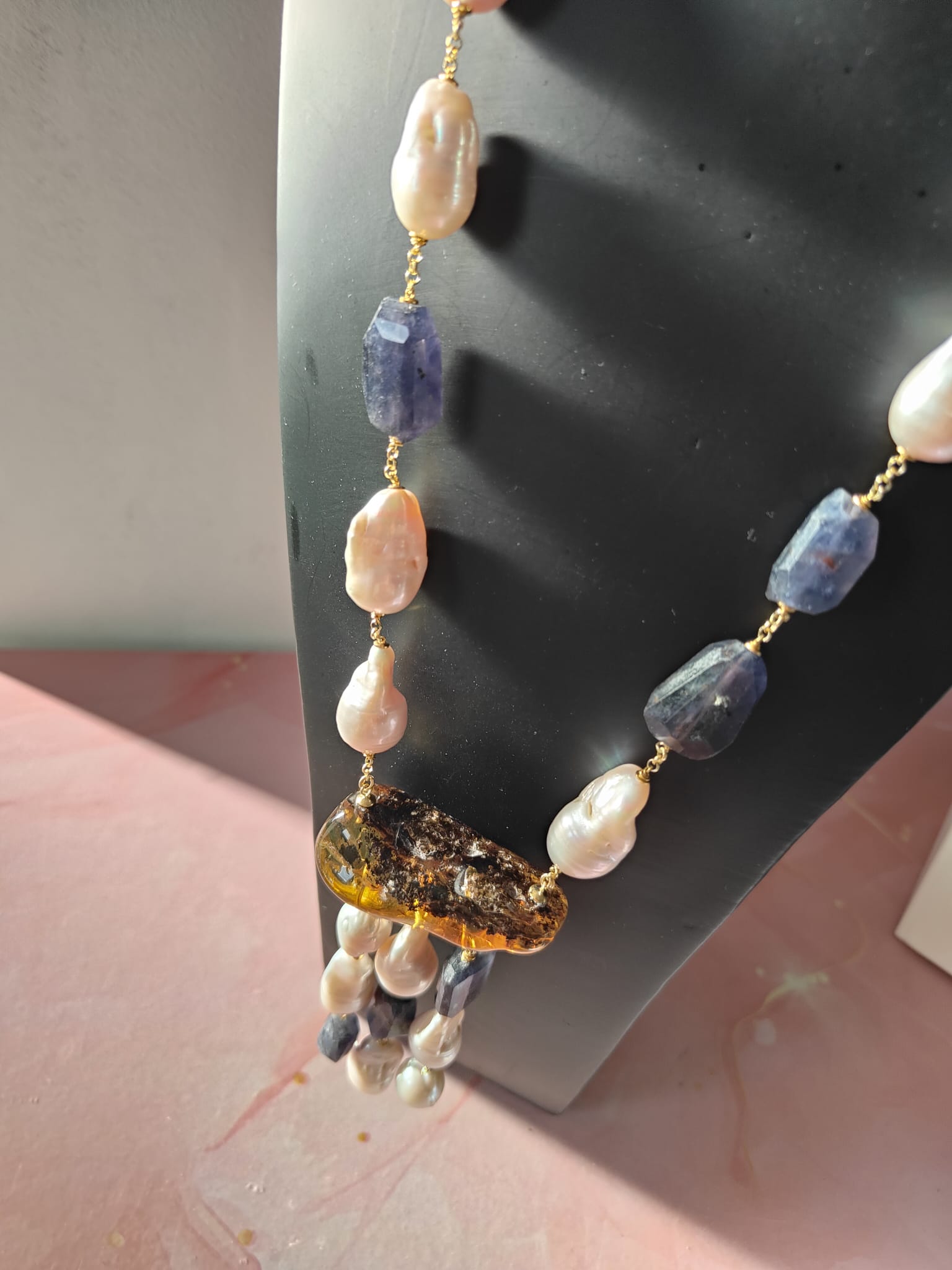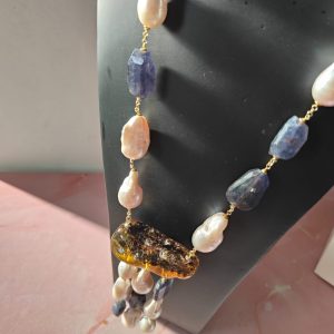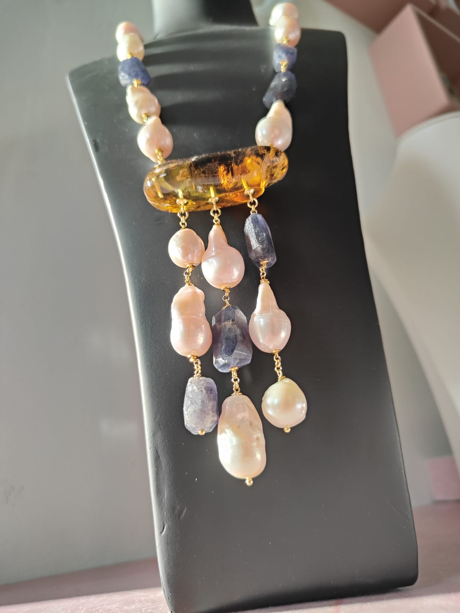 Collana Perle Iolite Ambra In Una Creazione Luminosa E Unica