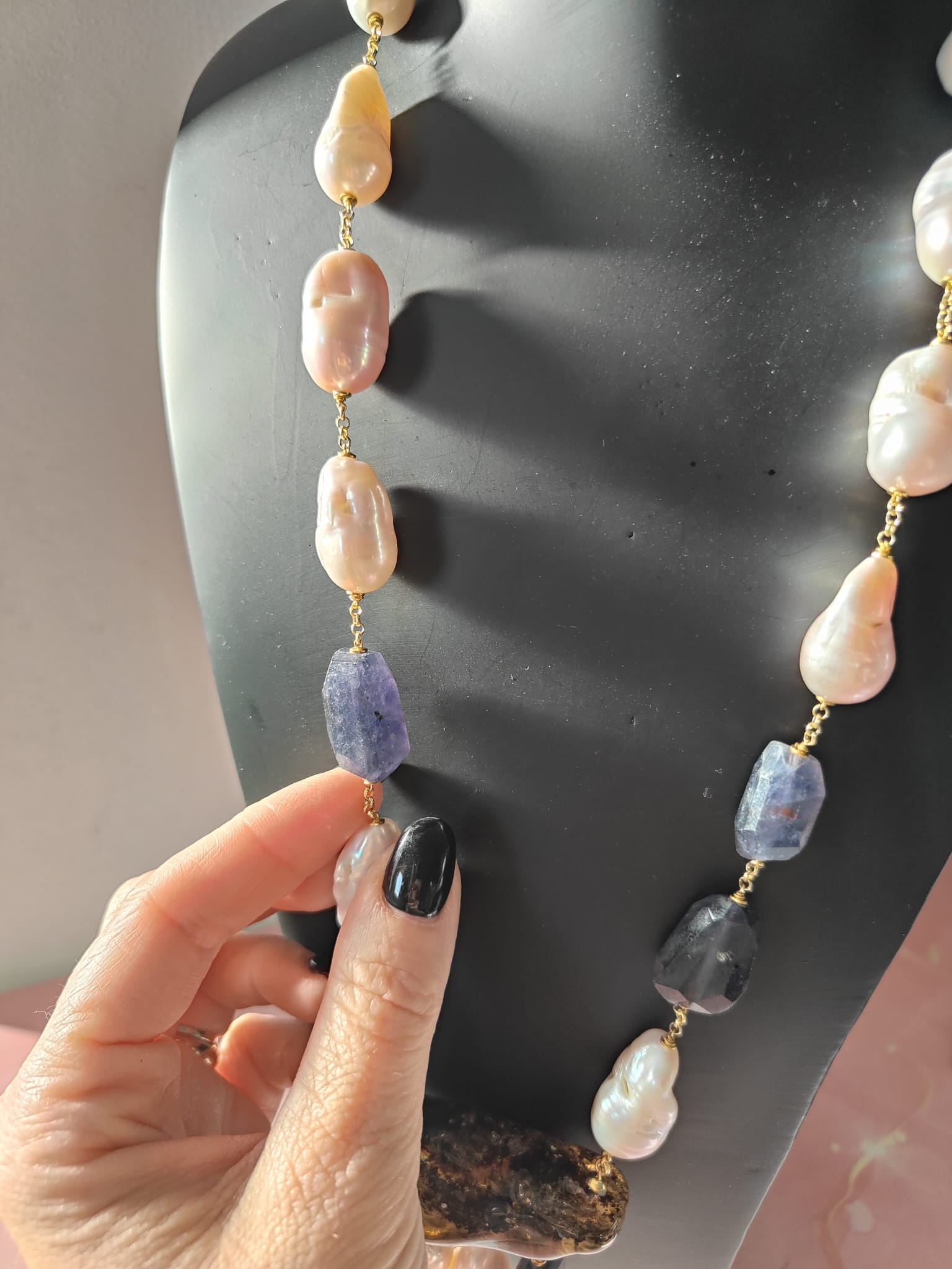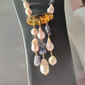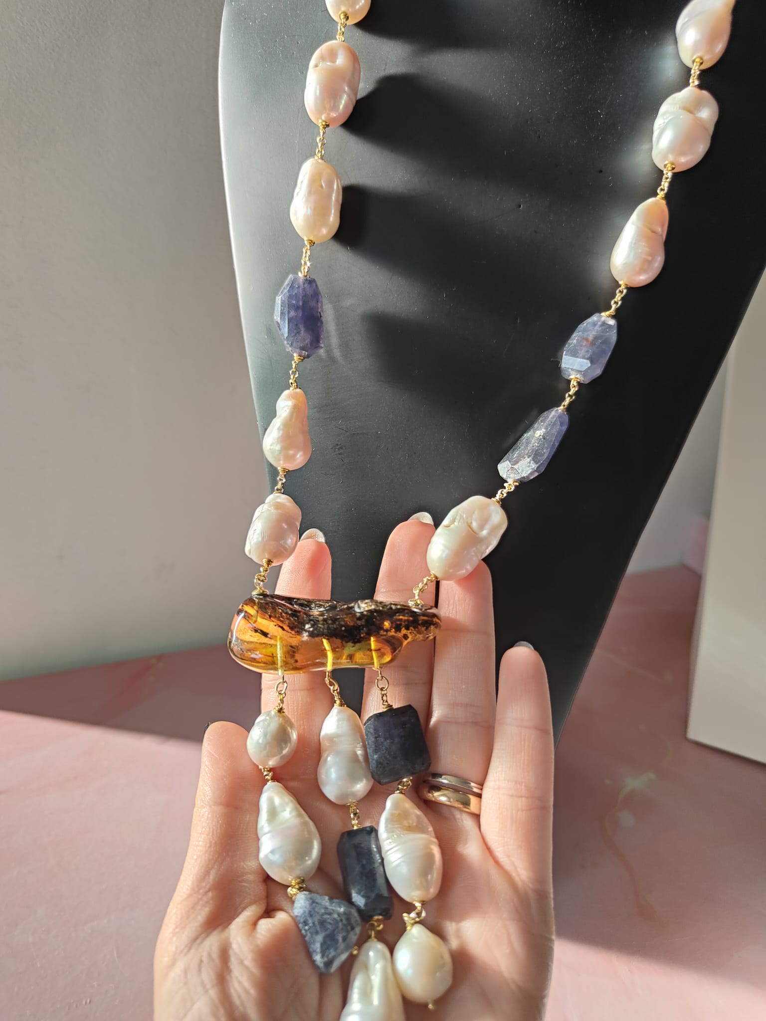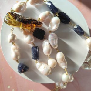 Collana Perle Iolite Ambra In Una Creazione Luminosa E Unica