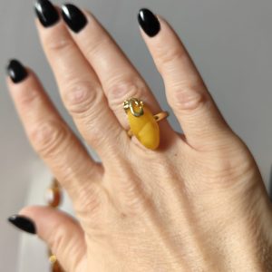 Anello Ambra Baltica Dorato – Anello Regolabile In Argento Dorato